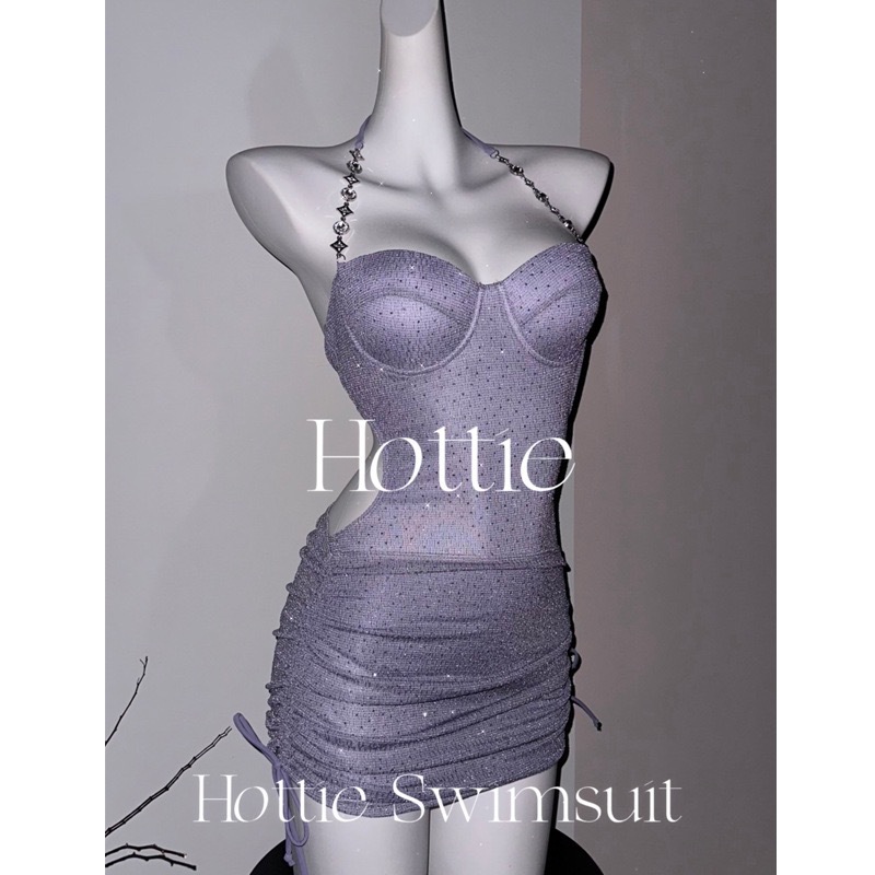 반짝이는 라인스톤 하이엔드 원피스 수영복 투피스 힙 커버 스커트 언더와이어 푸쉬업 섹시 백리스 수영복 4167스토어 가기