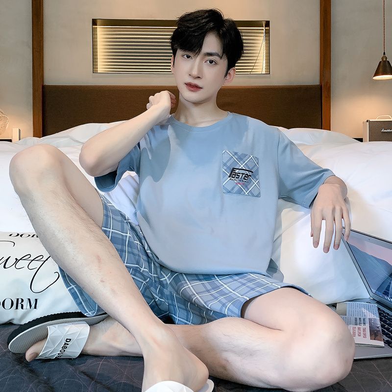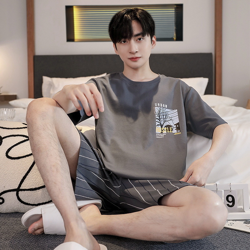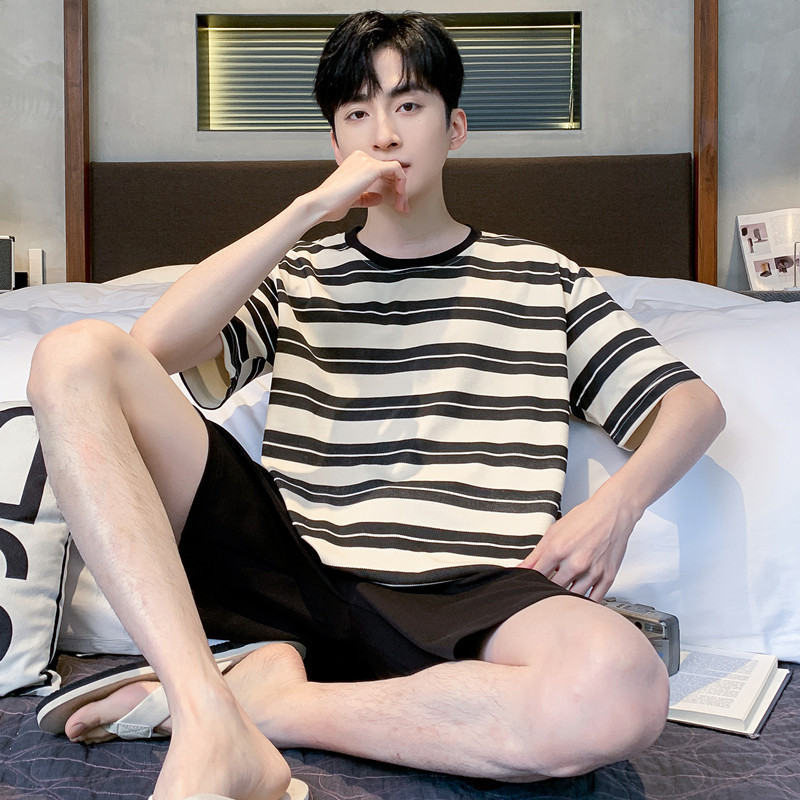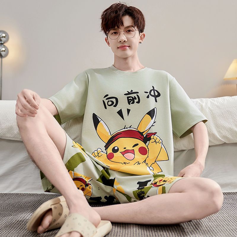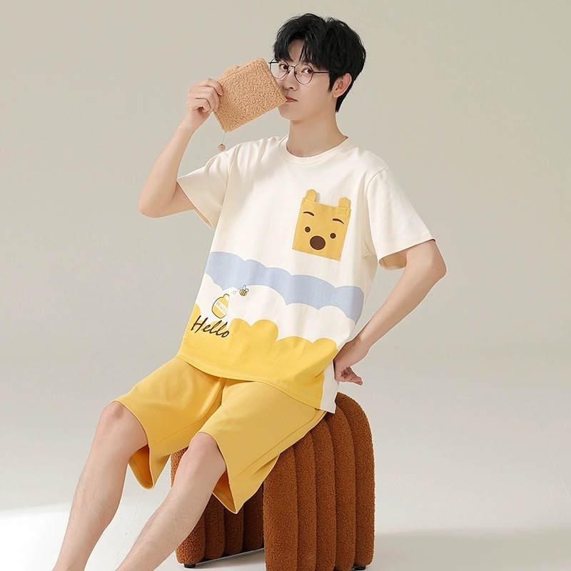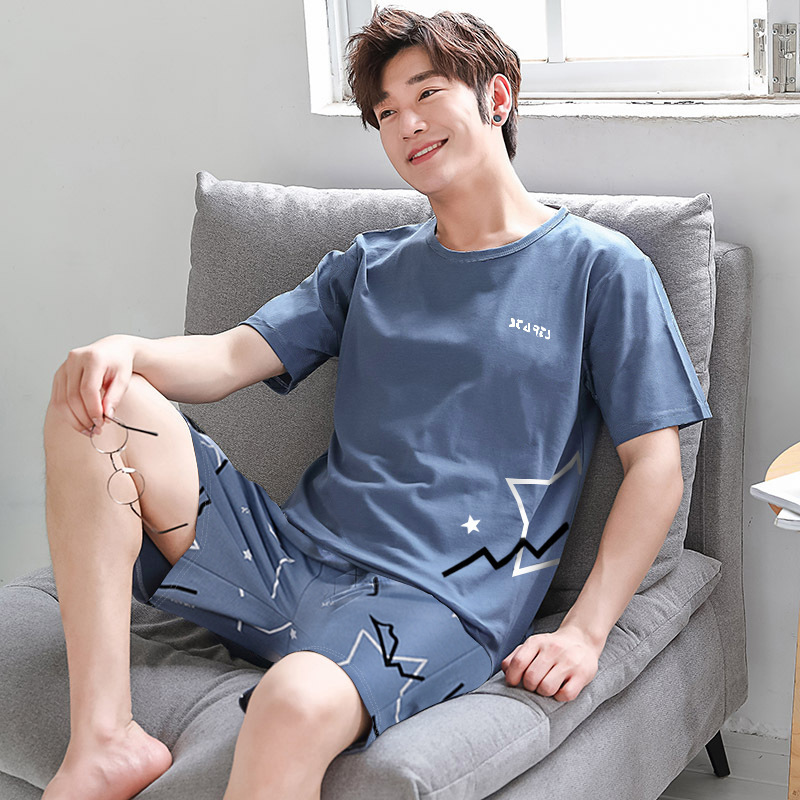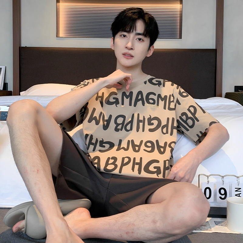 국경 새 도착 잠옷 남자 여름 반팔 세트 한국식 느슨한 플러스 사이즈 만화 캐주얼 아웃웨어 홈 옷