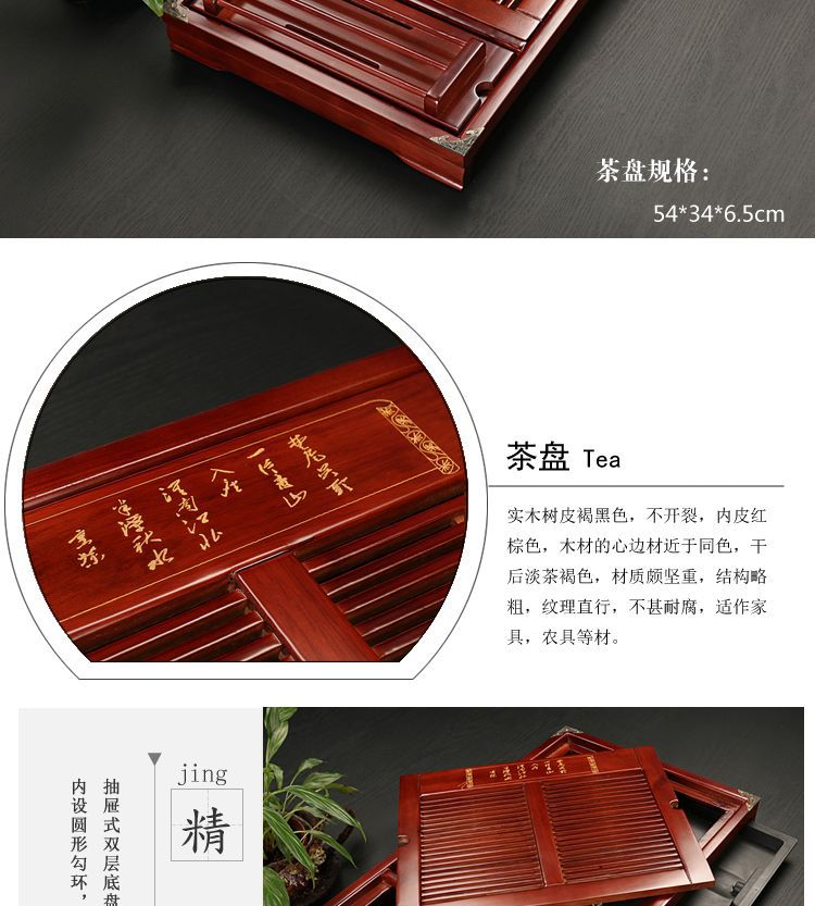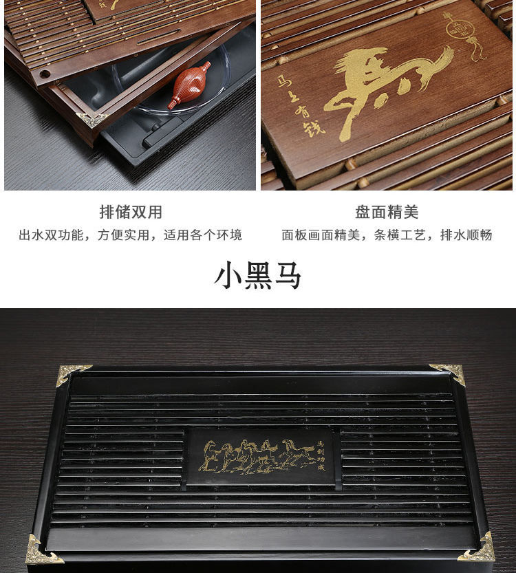 차 트레이 가정용 단단한 나무 작은 차 테이블 차 테이블 서랍 형 배수 쿵푸 차 세트 트레이 직사각형 배수 차 중국 스타일