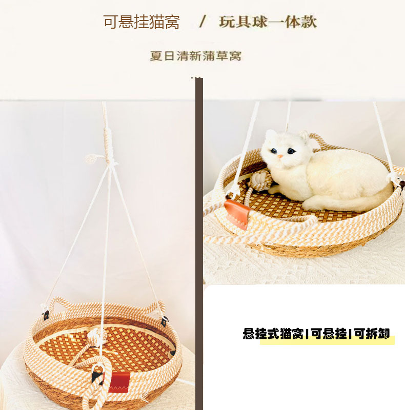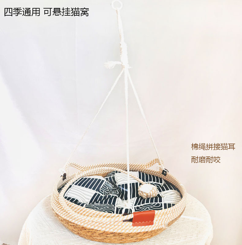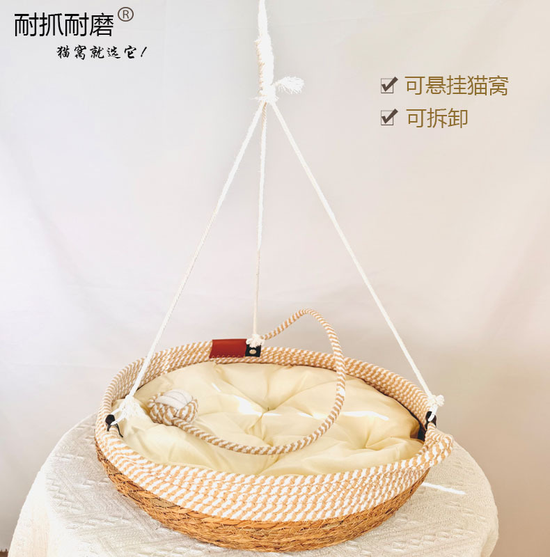 사계절 사용 가능한 만능 밀짚으로 짠 겨울 따뜻한 고양이 둥지, 밀짚으로 짠 고양이 용품, 사계절 사용 가능한 초대형 애완동물 둥지, 재고 있음