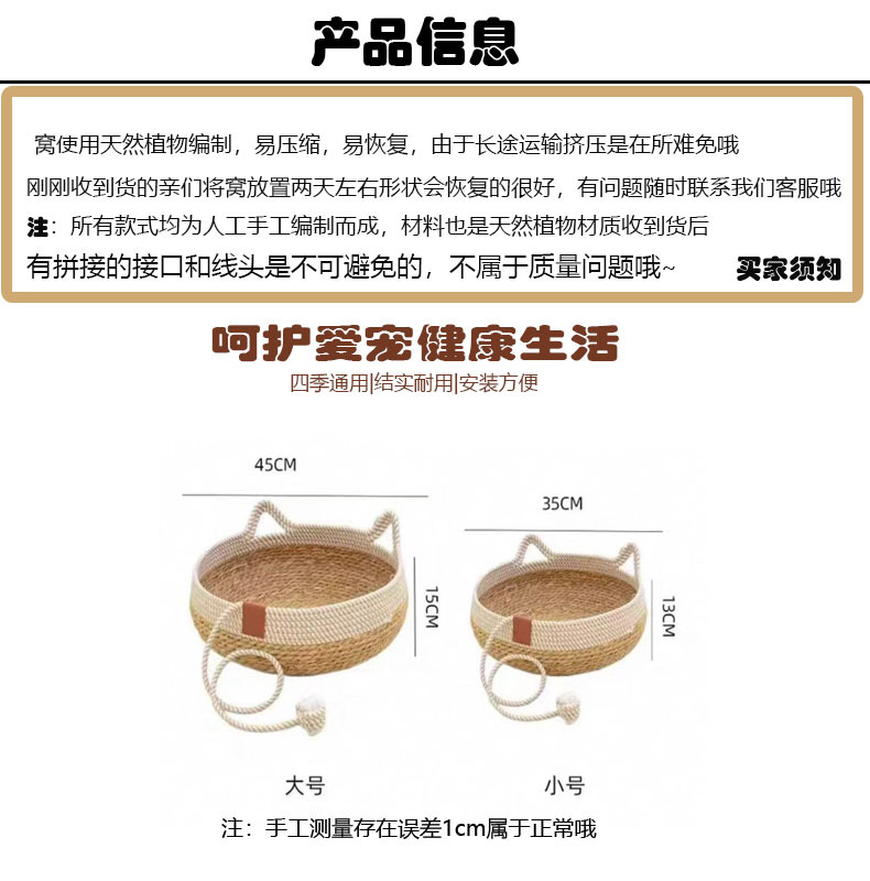 사계절 사용 가능한 만능 밀짚으로 짠 겨울 따뜻한 고양이 둥지, 밀짚으로 짠 고양이 용품, 사계절 사용 가능한 초대형 애완동물 둥지, 재고 있음스토어 가기