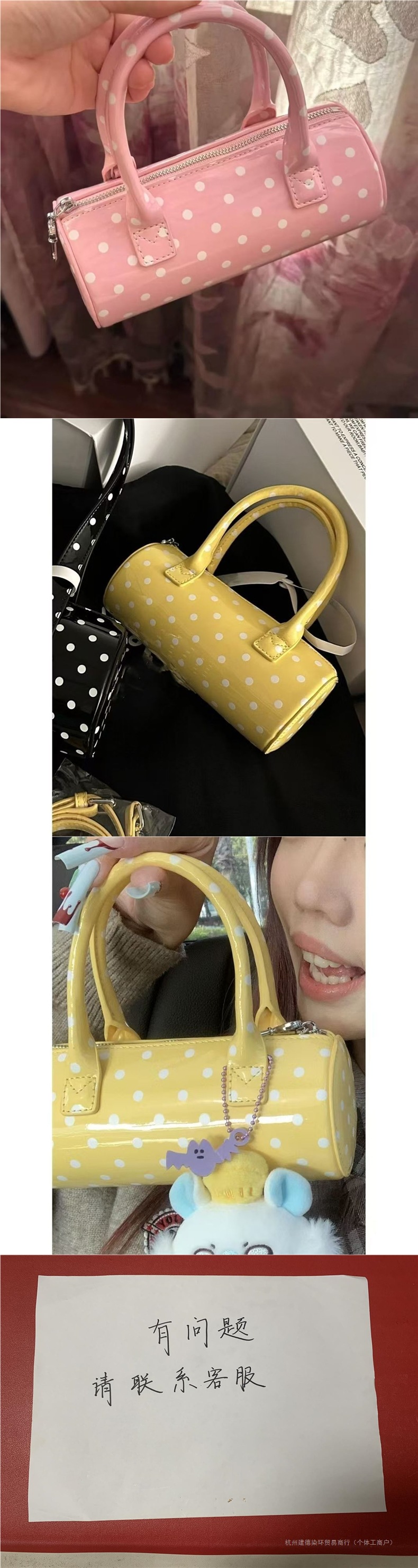 여름 도파민 웨이브 도트 핸드백 여성의 2025 새로운 도착 귀여운 밀레니엄 스파이스 어깨 크로스 바디 백 원통형 가방스토어 가기