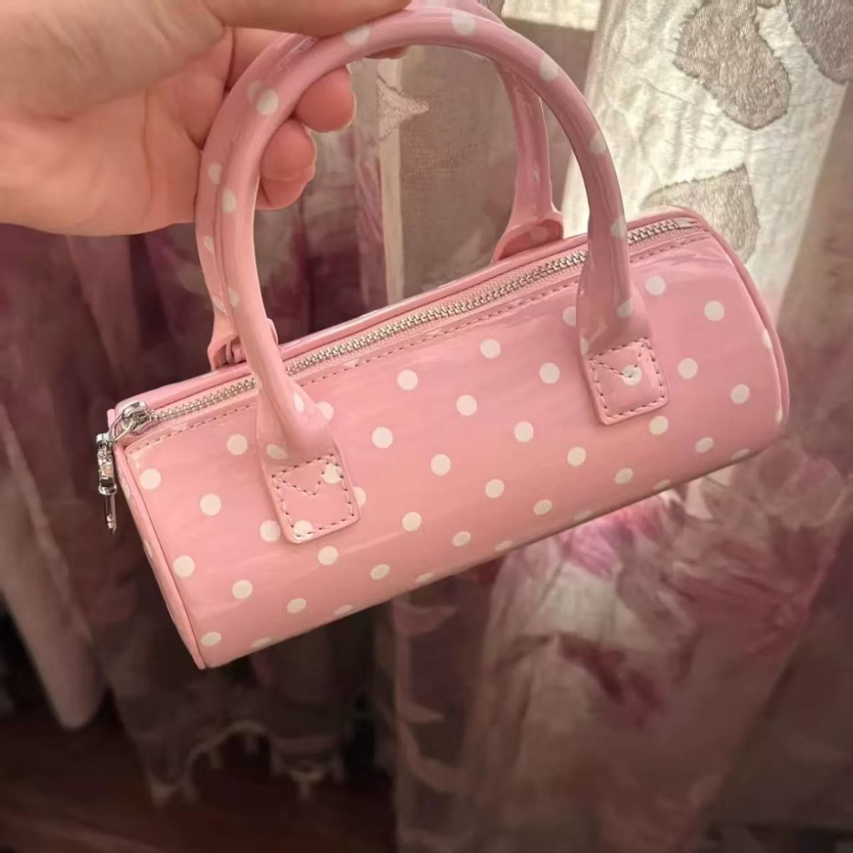 여름 도파민 웨이브 도트 핸드백 여성의 2025 새로운 도착 귀여운 밀레니엄 스파이스 어깨 크로스 바디 백 원통형 가방