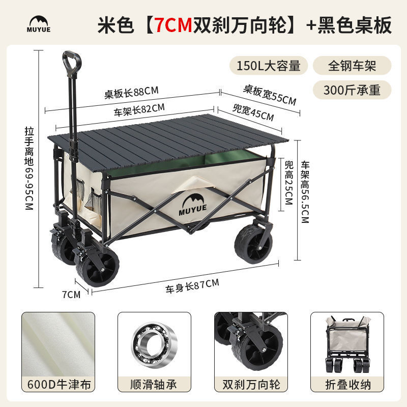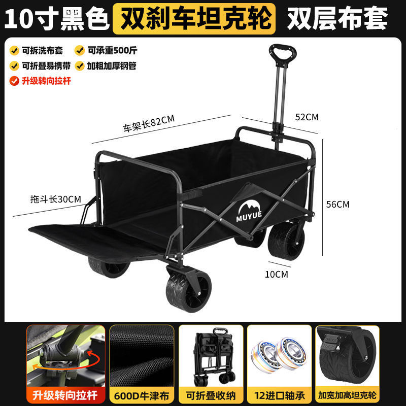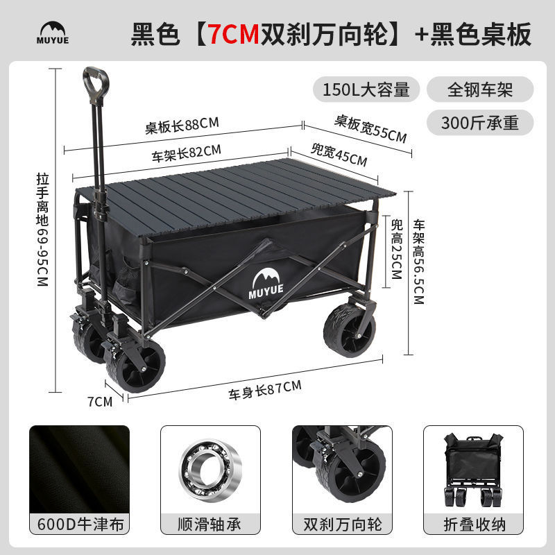 • 블랙 [이중 두꺼운 옥스포드 천] - 대형 / 8inch 오프로드 휠 / 더블 브레이크 / 티핑 버킷 스타일 + 블랙 테이블