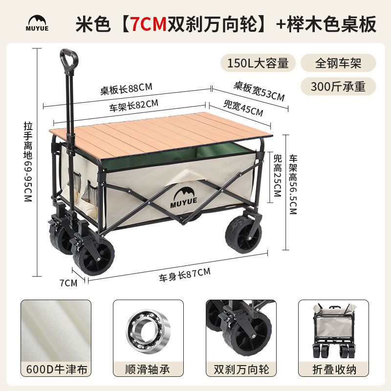 • 블랙 [이중 두꺼운 옥스포드 천] - 대형 / 8inch 오프로드 휠 / 더블 브레이크 / 티핑 버킷 스타일 + 나뭇결 테이블