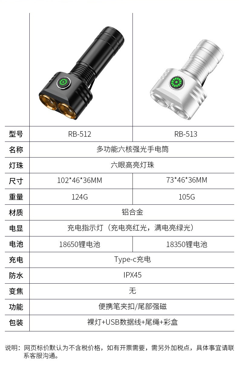 국경 간 6LED 손전등 휴대용 강한 빛 작업 빛 펜 홀더 오래 지속되는 배터리 수명 흰색 레이저 손전등 가정용 조명