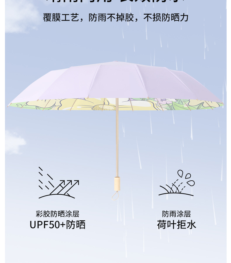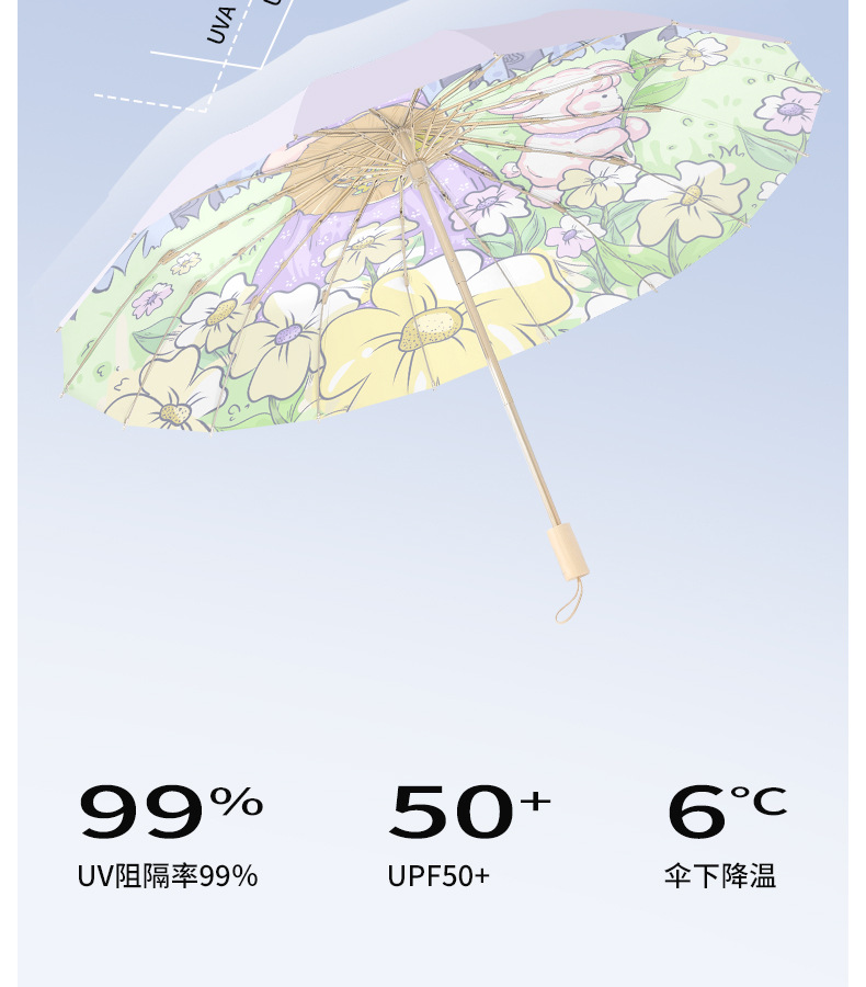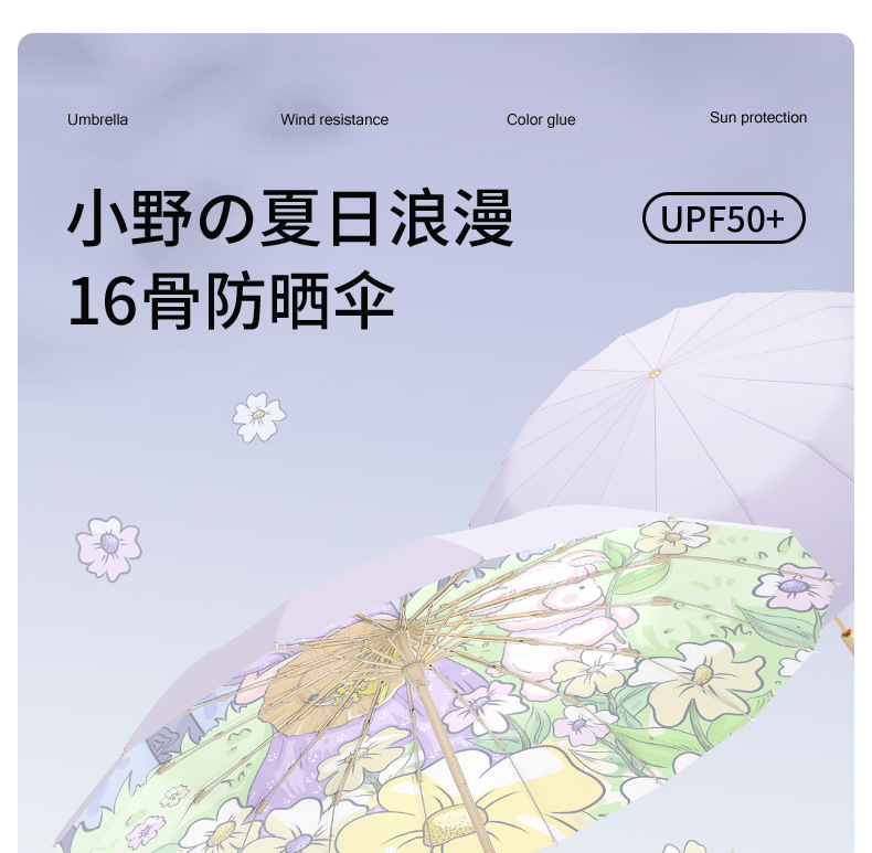 Ji Zulian 오리지널 16본 태양 우산, 자외선 차단, 여성용 접이식, 강력하고 바람과 비에 강한 이중 목적 파라솔