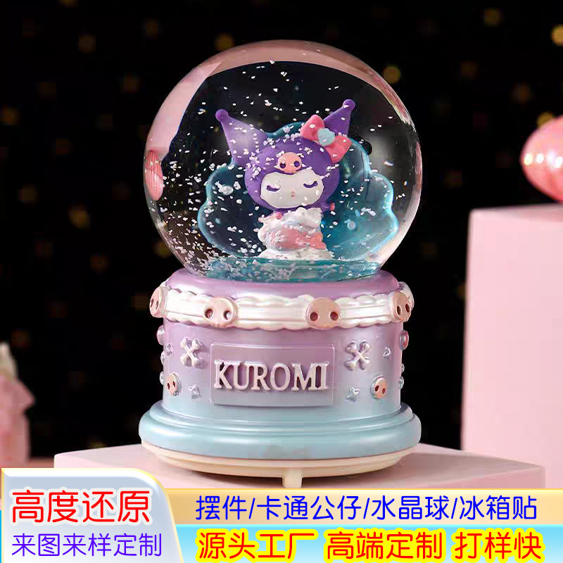 크리스탈 공 사용자 정의 애니메이션 Kuromi 수지 장식품 선물 회전 물 공 데스크탑 장식 동상 장식품 국경 간스토어 가기