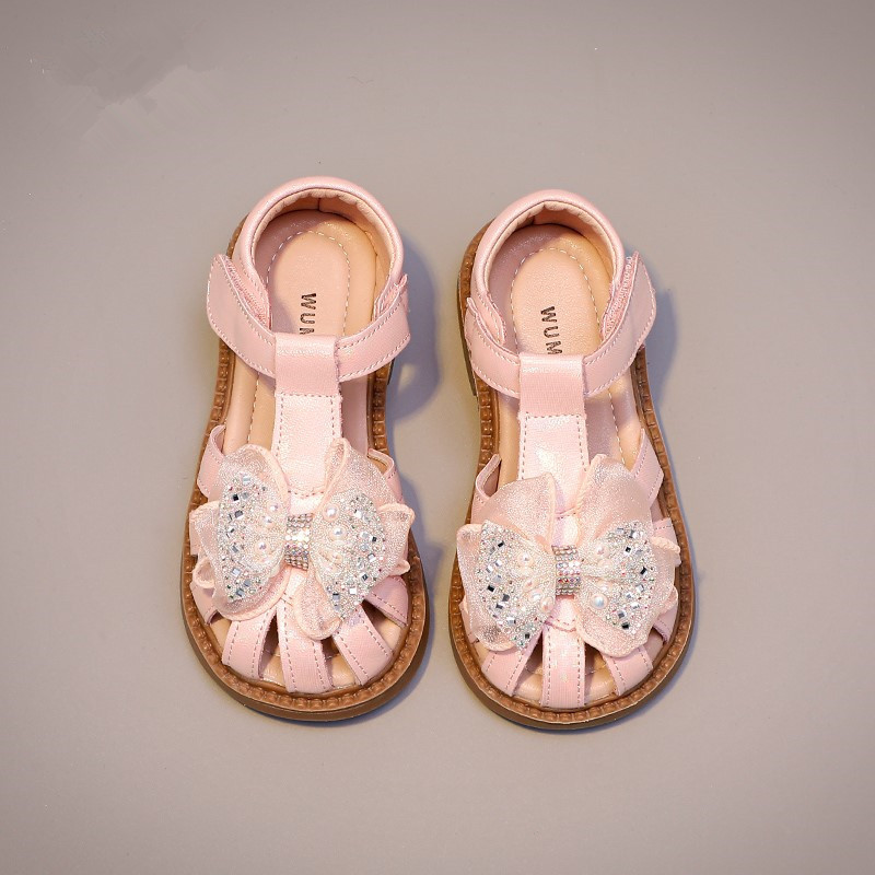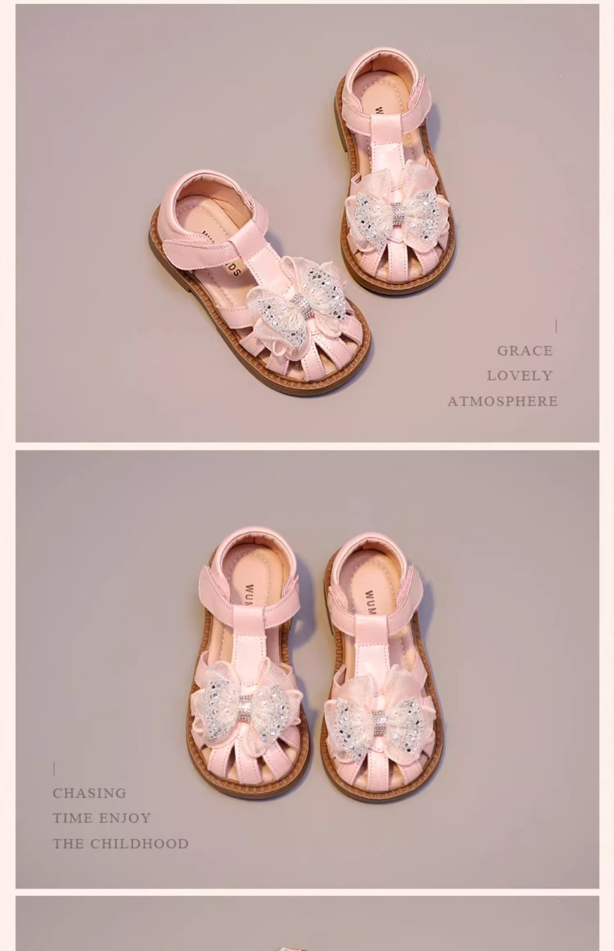 소녀 신발 어린이 크리스탈 샌들 2025 새로운 여름 아기 소녀 소프트 단독 미끄럼 방지 서양식 공주 신발스토어 가기