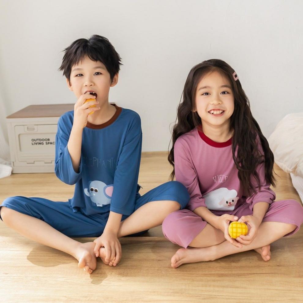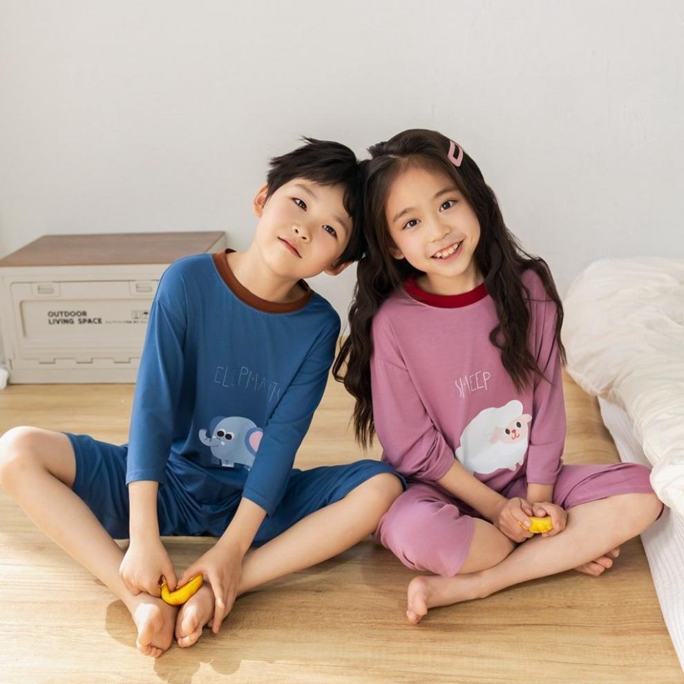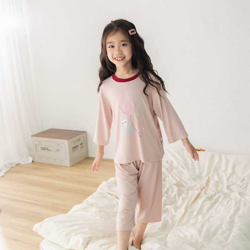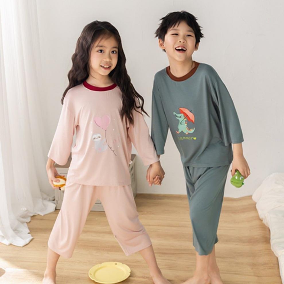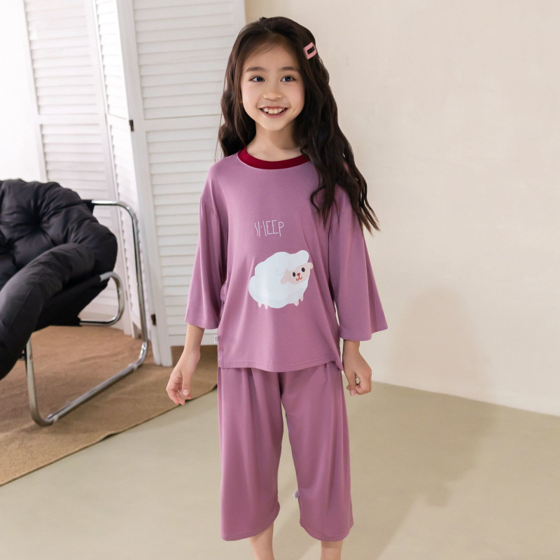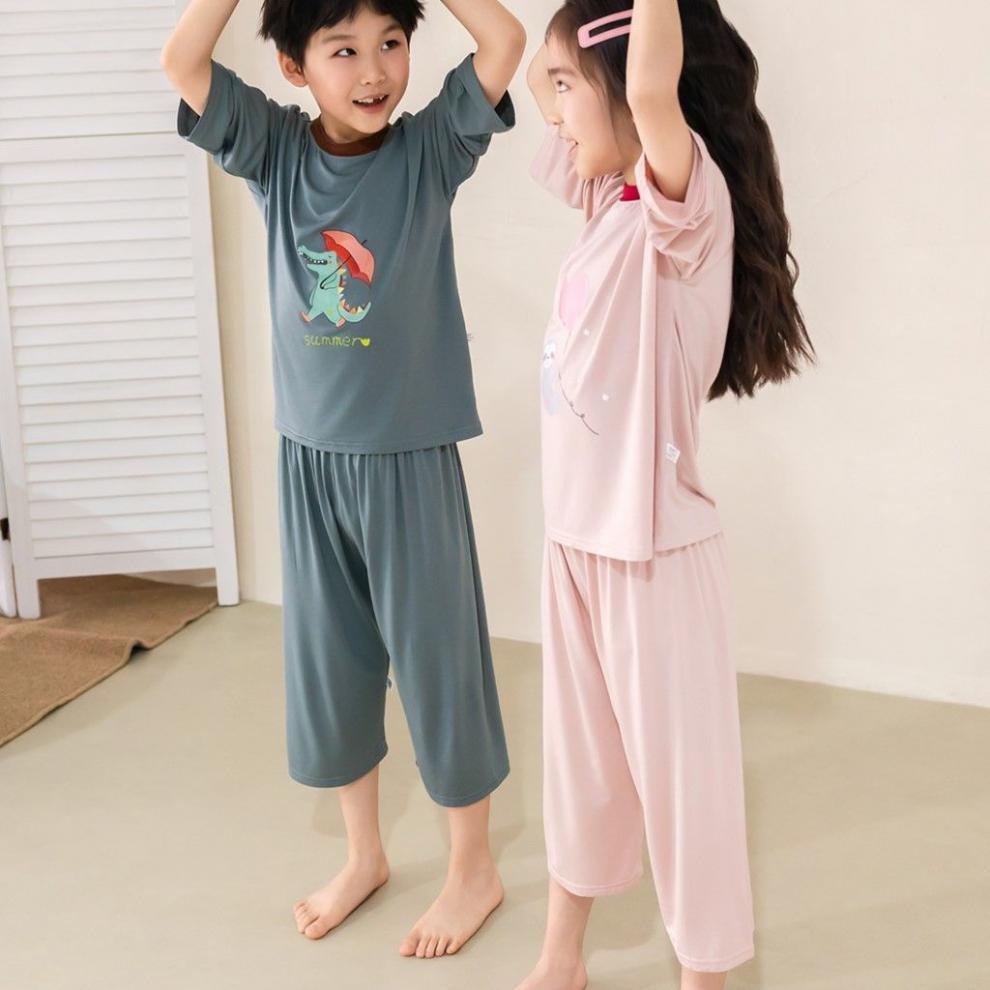 어린이 소녀 소년 모달 새 가정 의류 세트 반팔 7 점 잠옷 여름 얇은 에어컨 옷스토어 가기