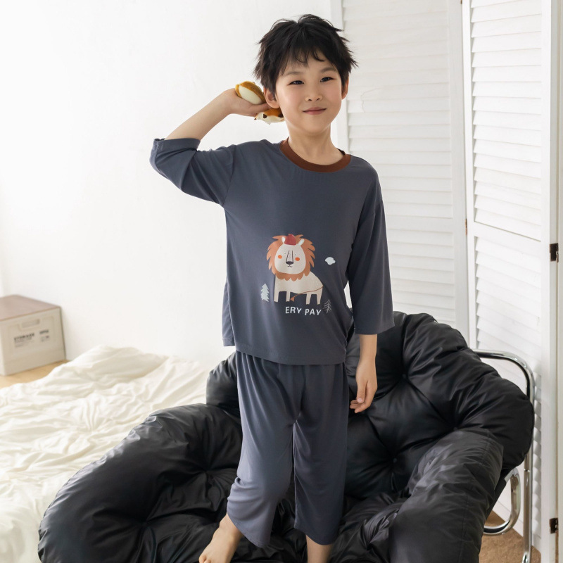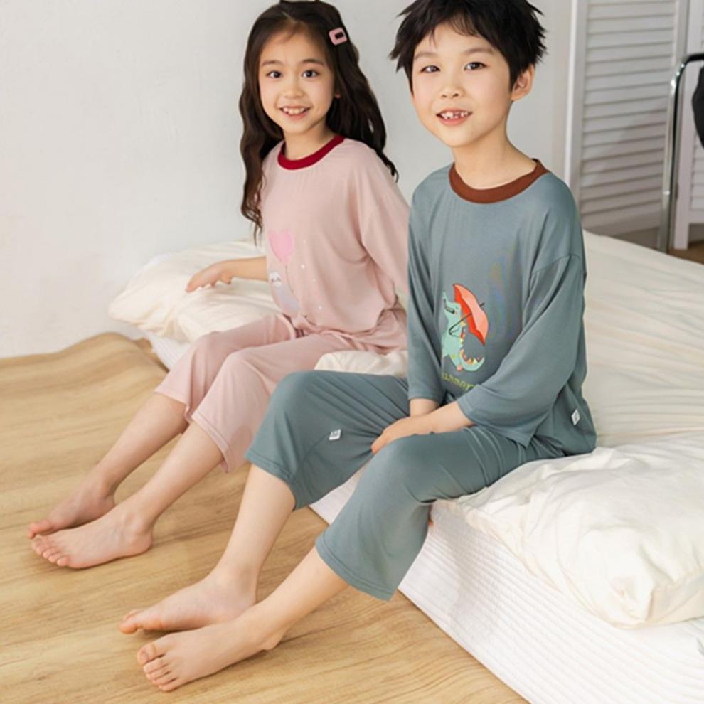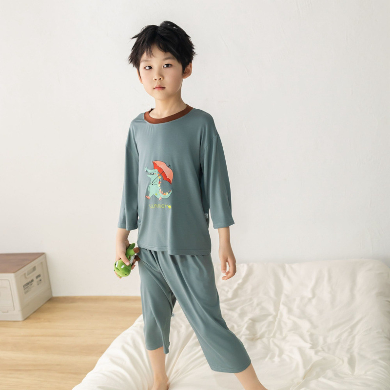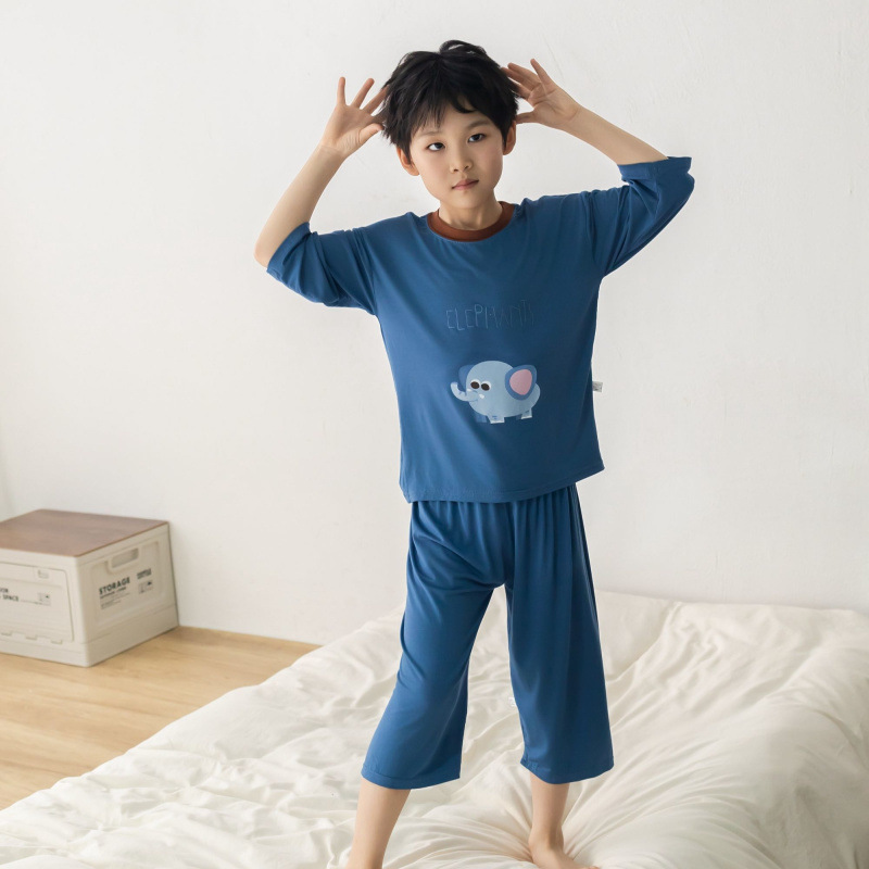 어린이 소녀 소년 모달 새 가정 의류 세트 반팔 7 점 잠옷 여름 얇은 에어컨 옷