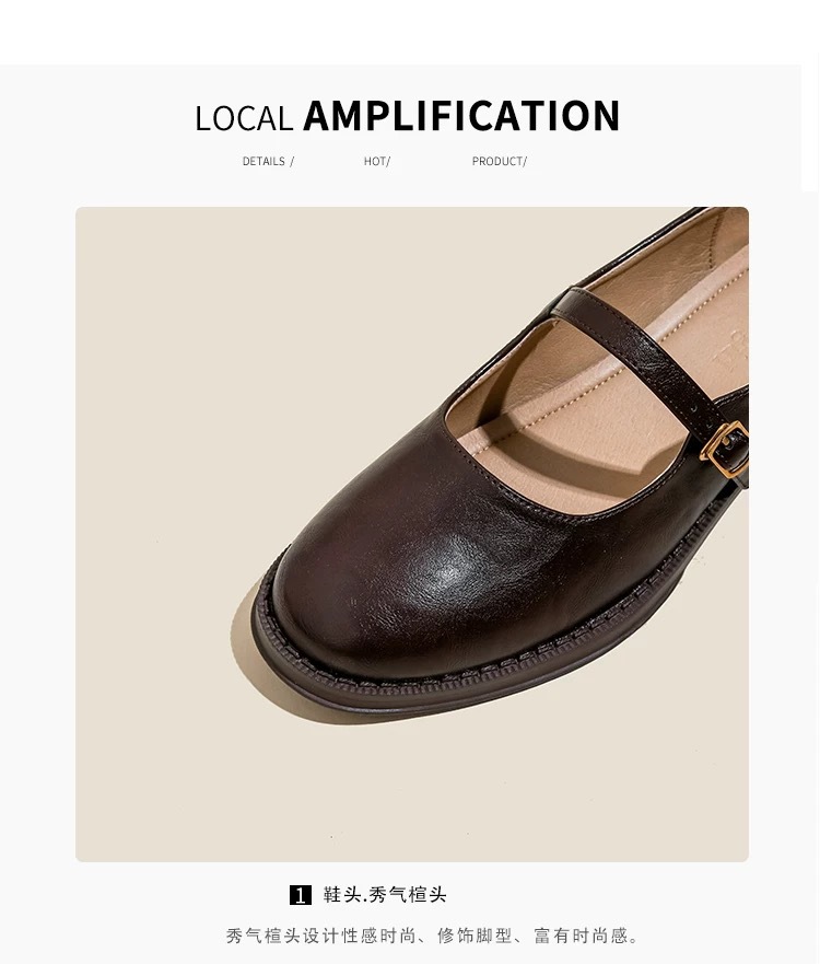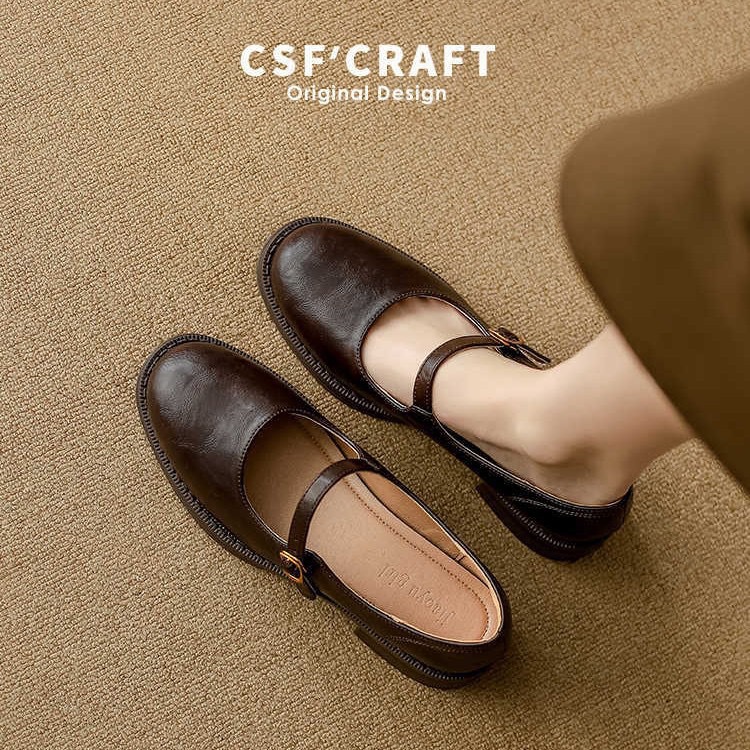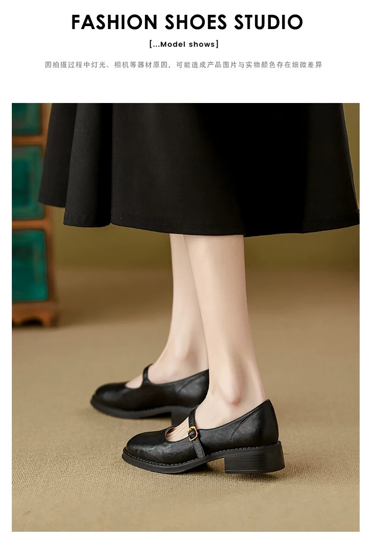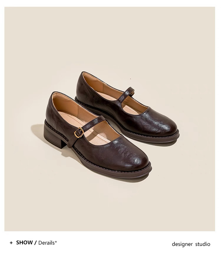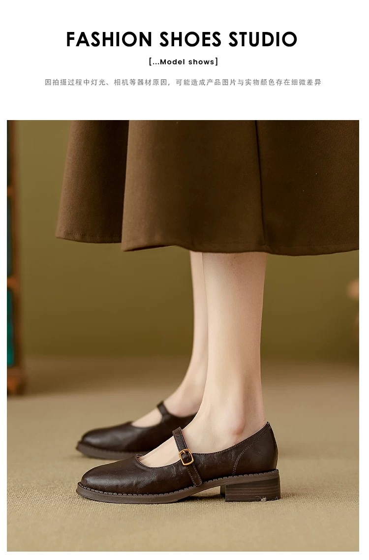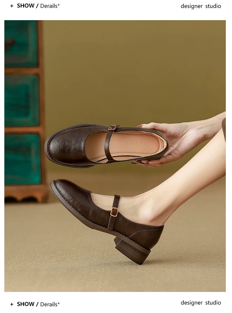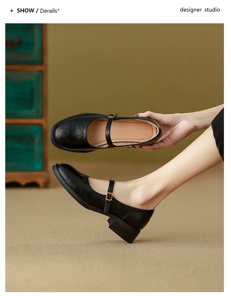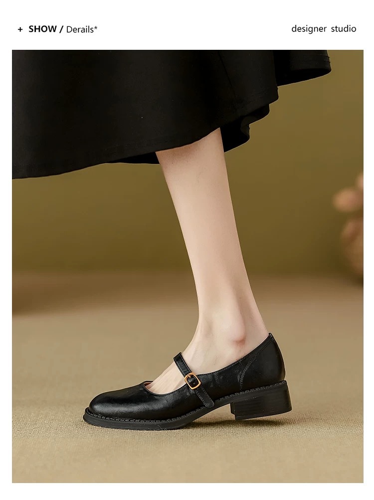 양가죽 버전 ~ 수제 부드러운 바닥 메리 제인 신발 여성의 2025 새로운 얕은 입 싱글 레이어 신발 두꺼운 힐 버클 작은 가죽 신발스토어 가기