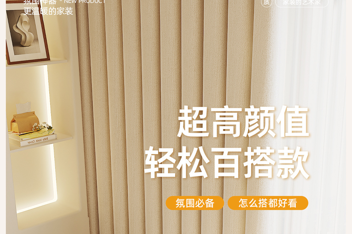 특별한 마스터 양면 커튼, 셔닐 두꺼운 커튼, 차광 고급 프랑스풍 라이트 럭셔리 크림 스타일 거실 커튼스토어 가기