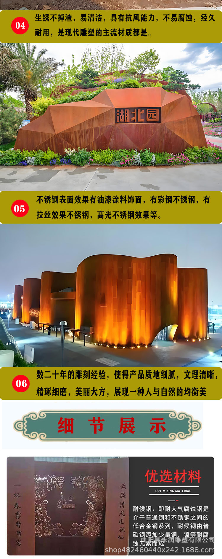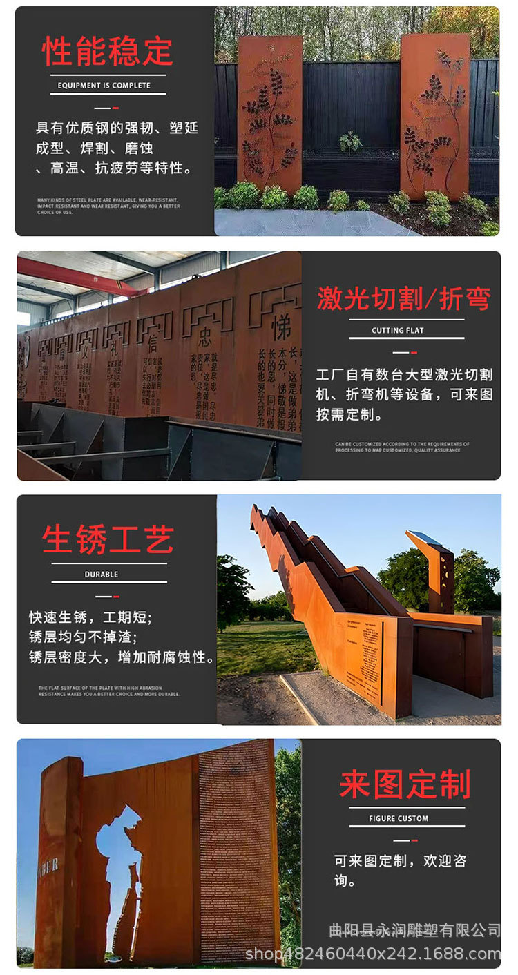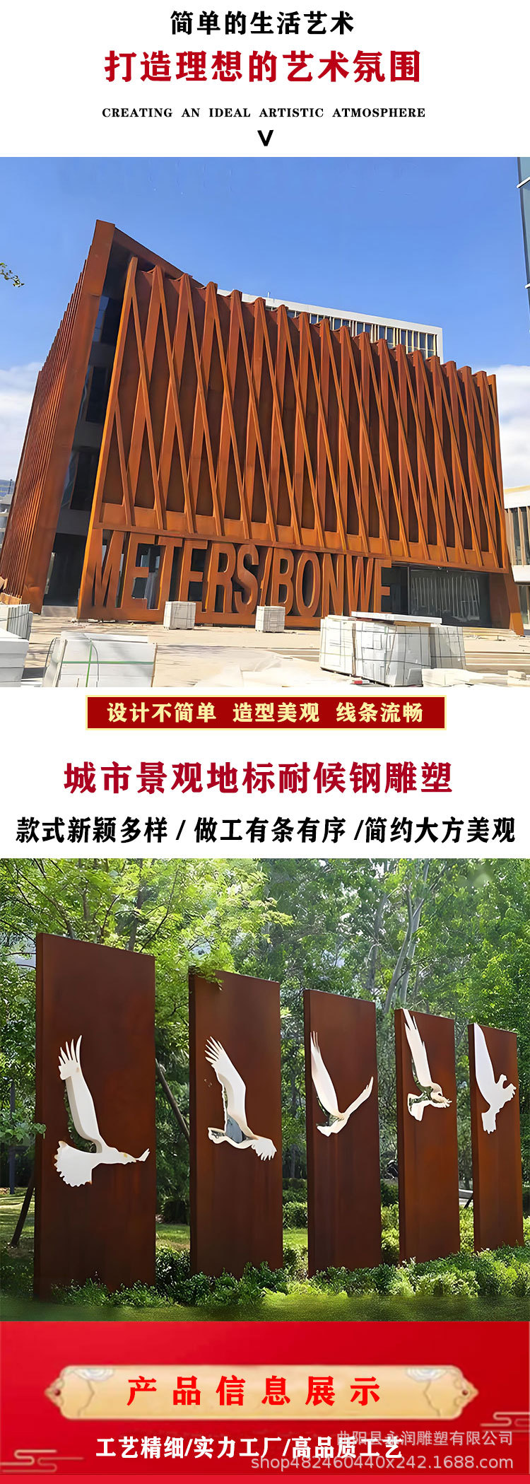 대형 내후성 강철 조각 커튼월 패널, 조경벽 표지판, 중공 조각 꽃 상자, 광장 공원 야외 장식품