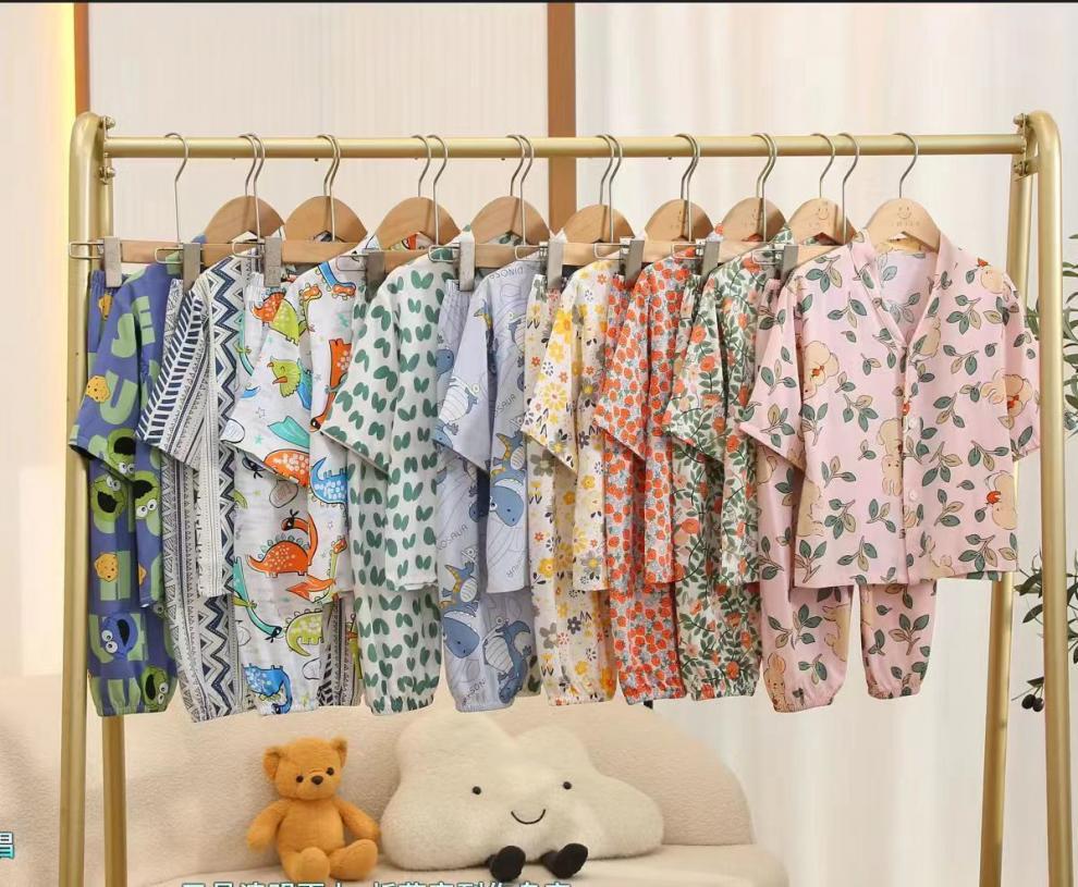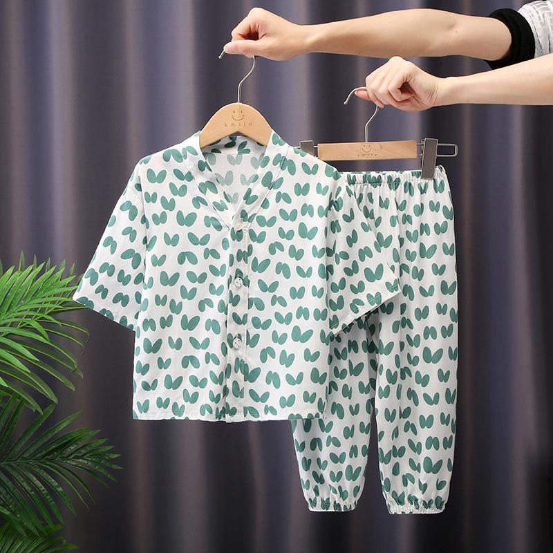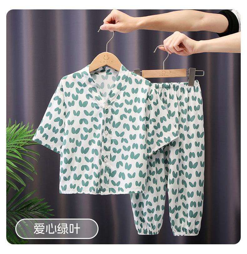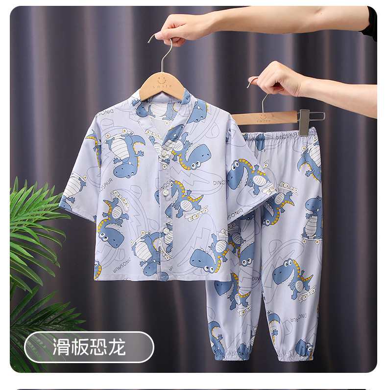 [재구매 1403회] 아동용 잠옷 여름 면 실크 미드 슬리브 만화 가디건 소년 소녀 얇은 중대형 아동용