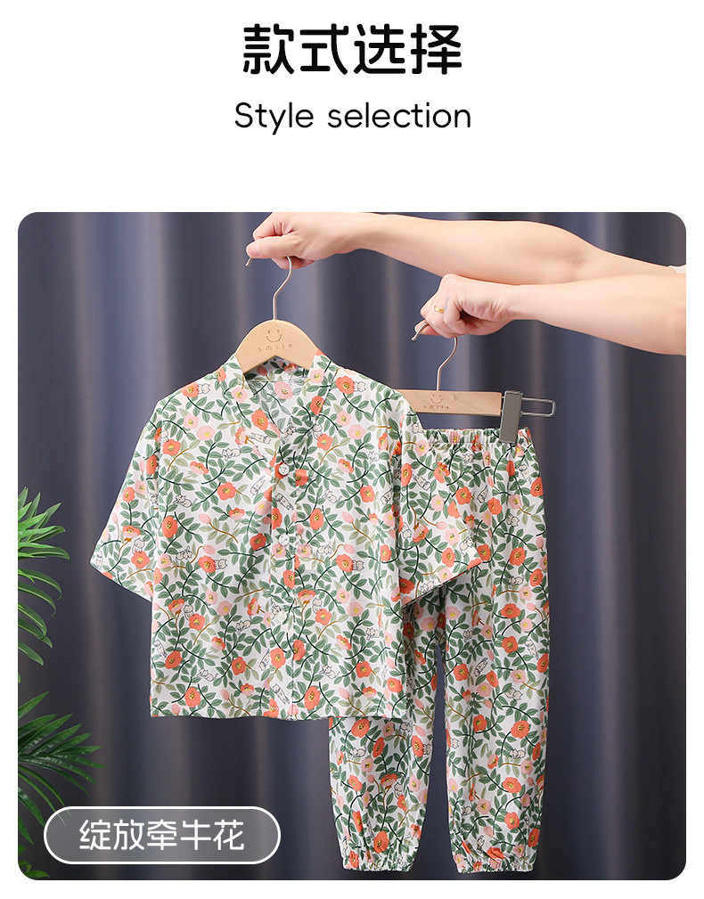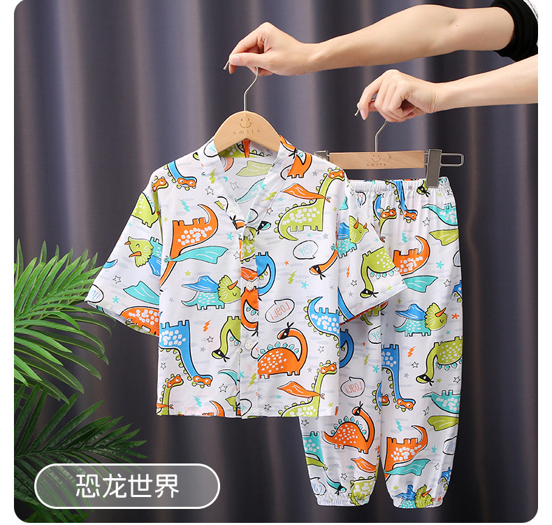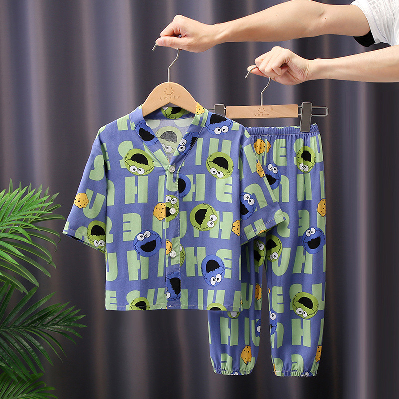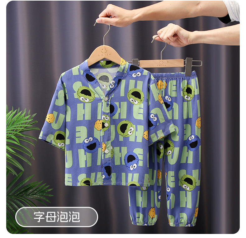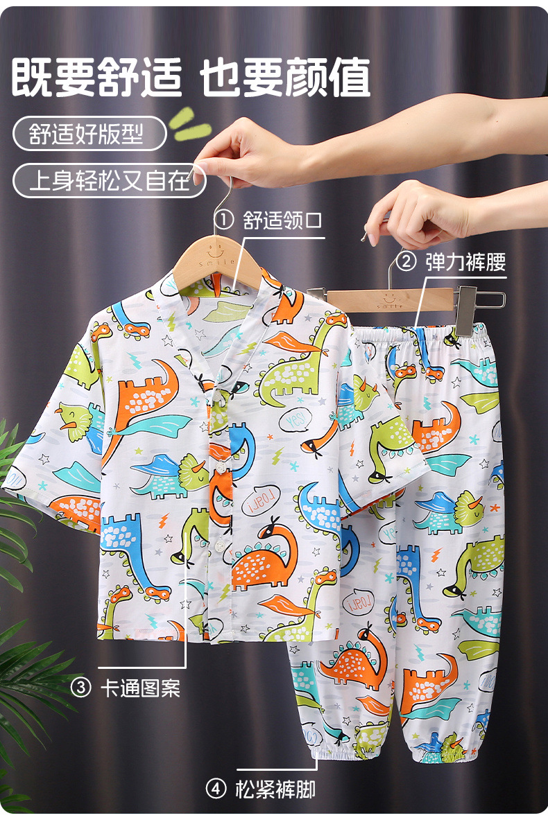 [재구매 1403회] 아동용 잠옷 여름 면 실크 미드 슬리브 만화 가디건 소년 소녀 얇은 중대형 아동용스토어 가기