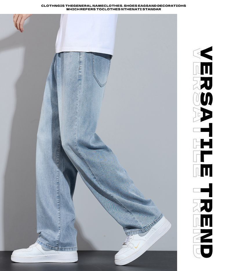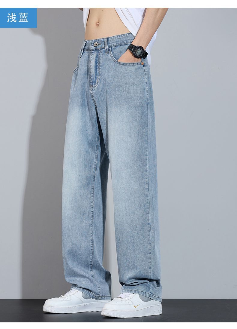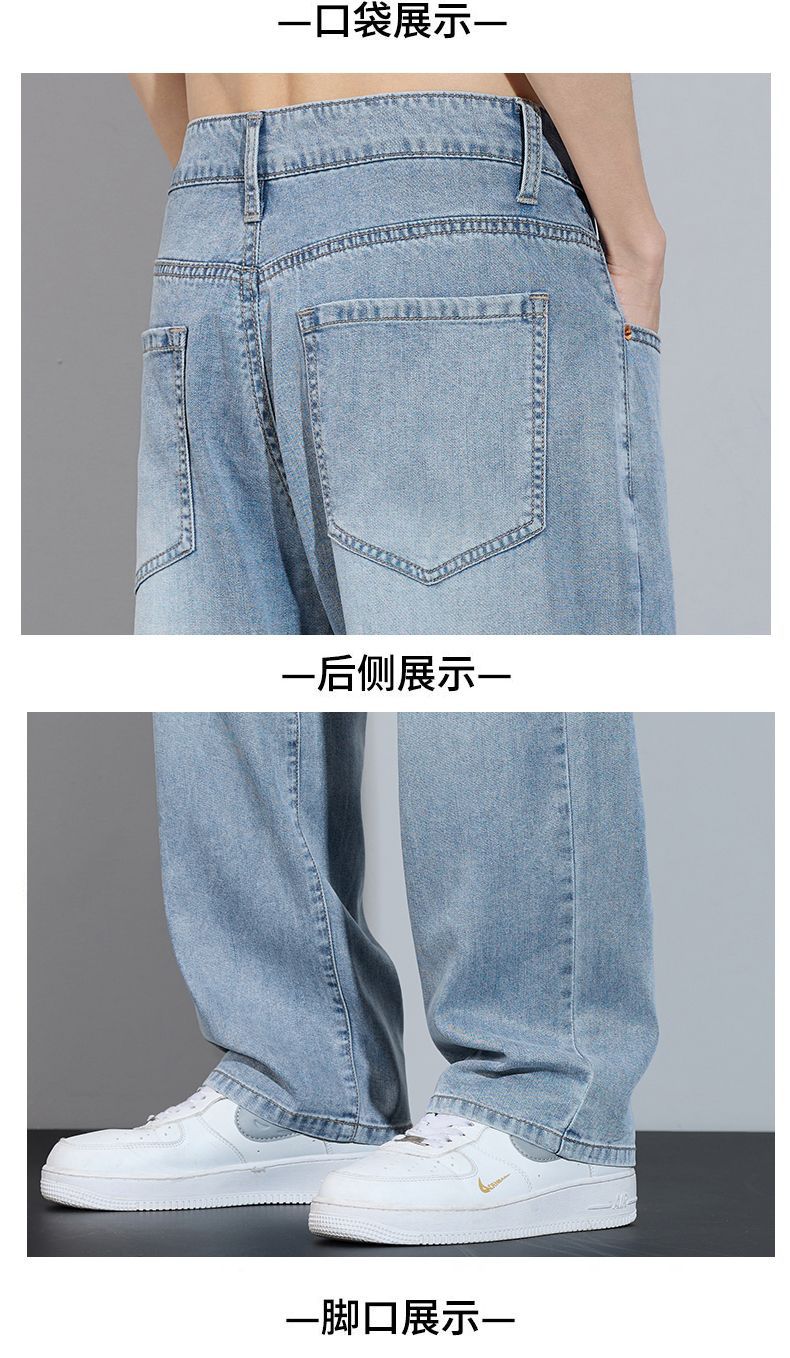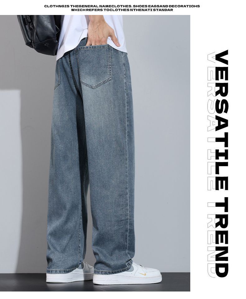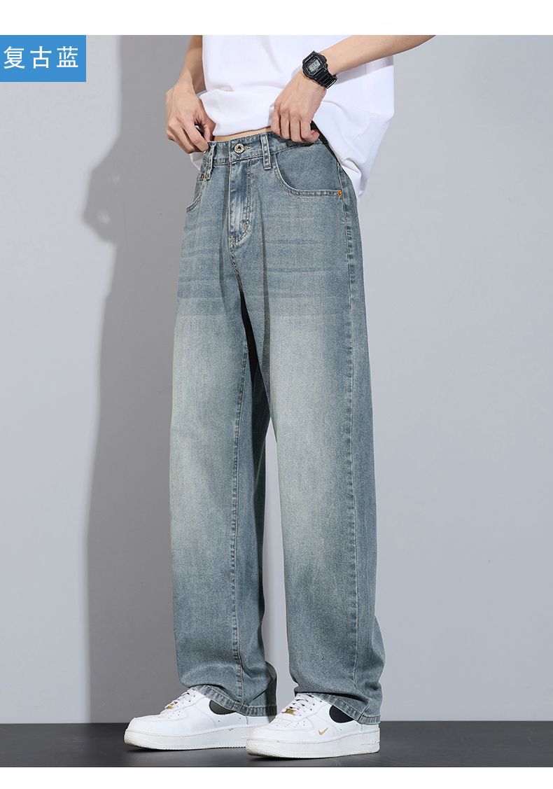 Xintang 봄 여름 라이트 블루 청바지 남성 봄, 가을 미국 복고풍 루즈 스트레이트 캐주얼 긴 바지