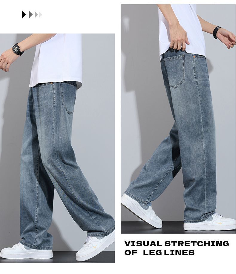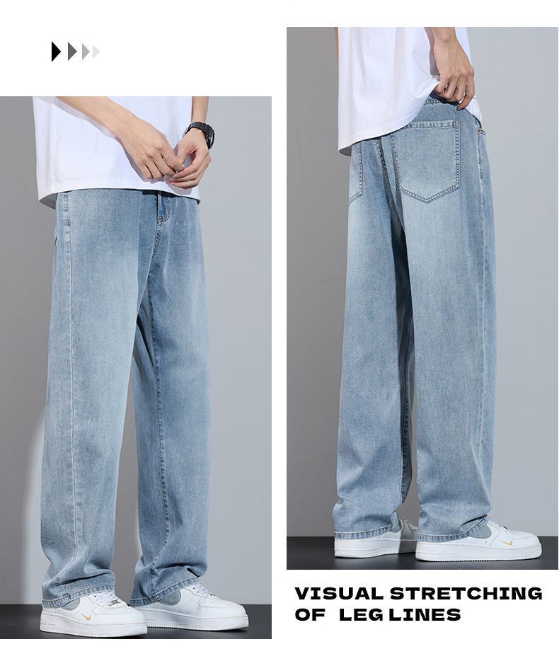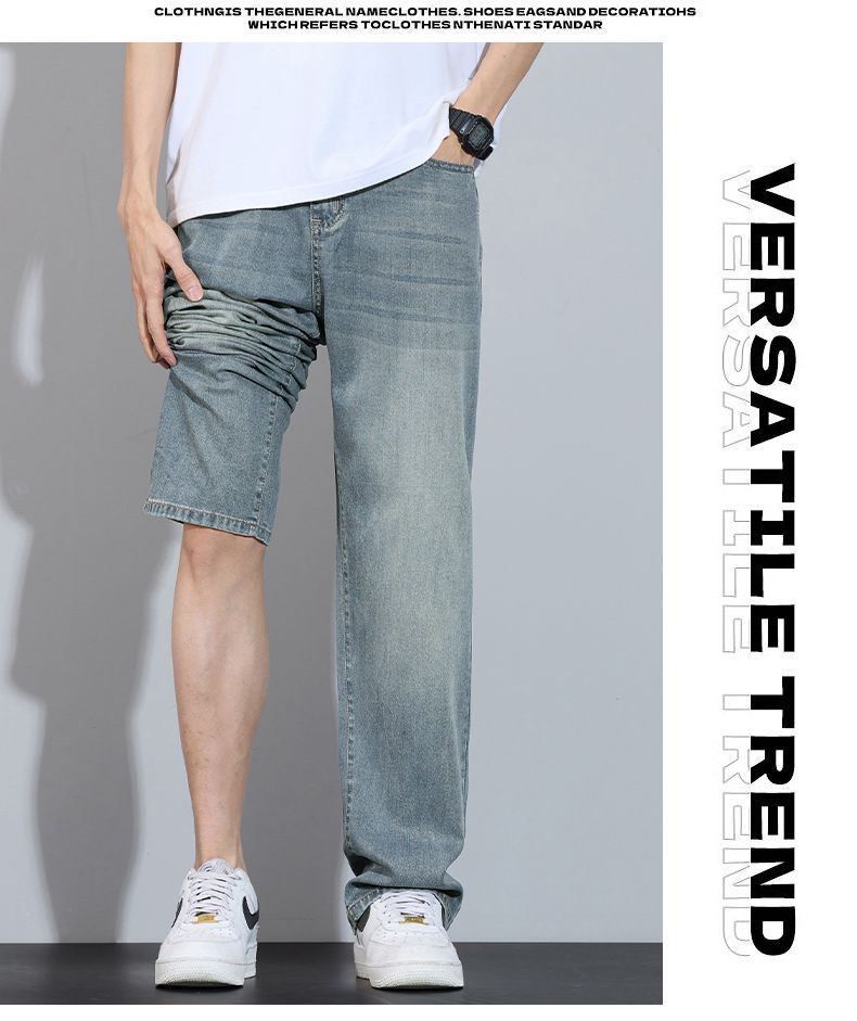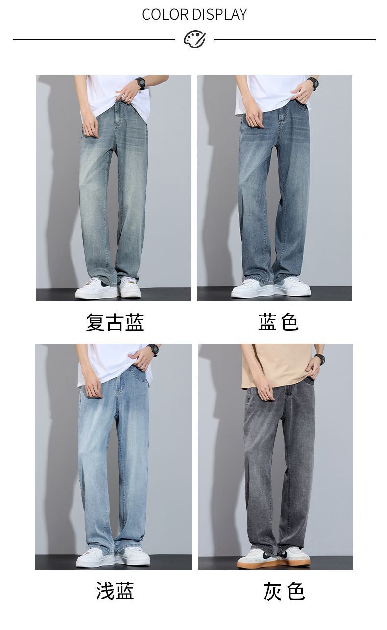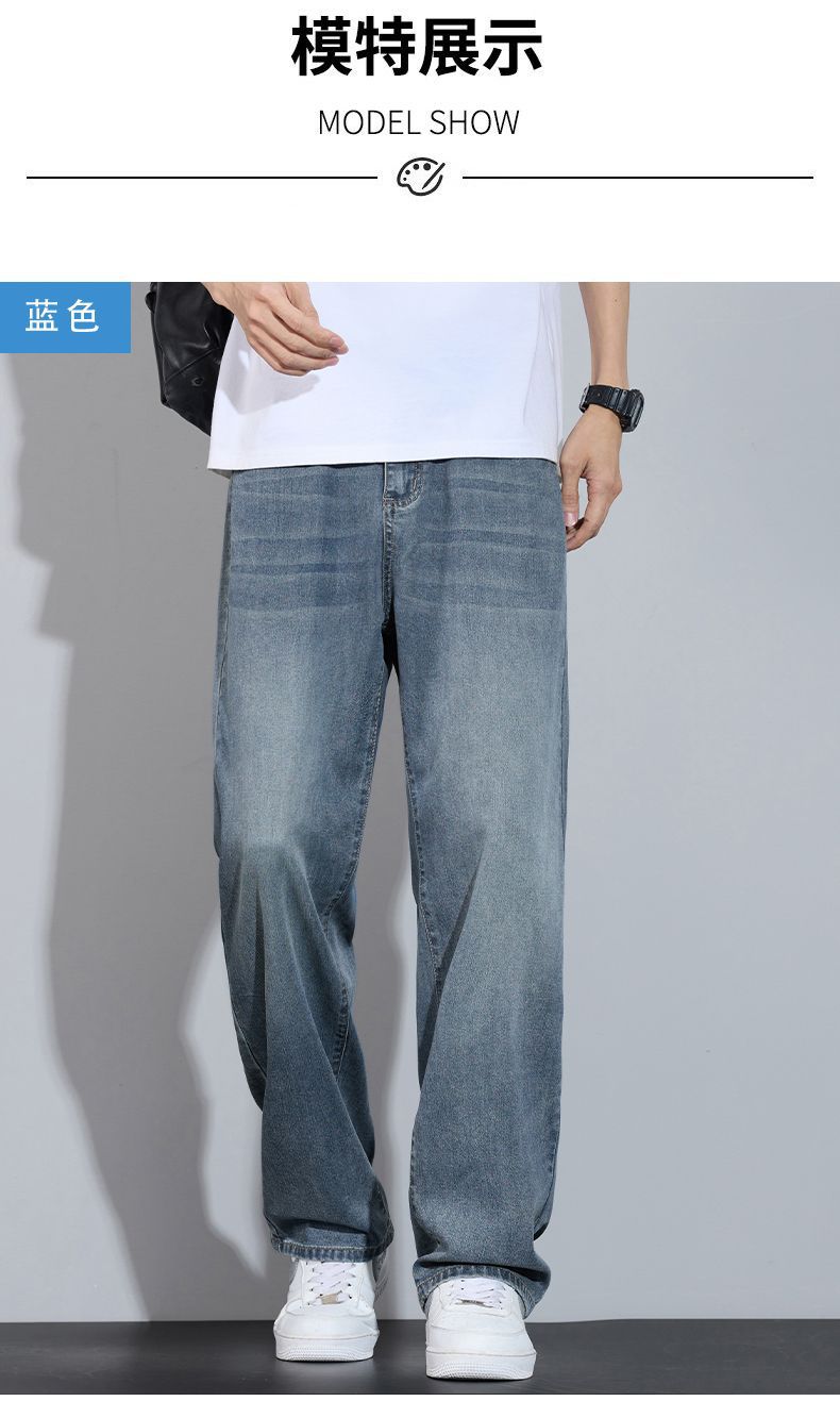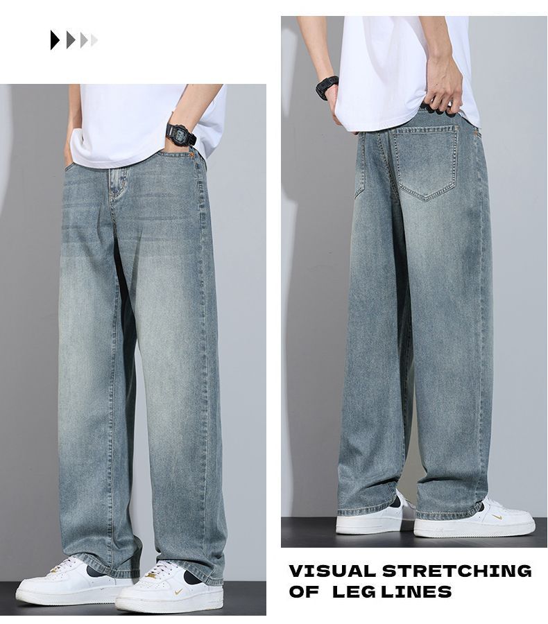 Xintang 봄 여름 라이트 블루 청바지 남성 봄, 가을 미국 복고풍 루즈 스트레이트 캐주얼 긴 바지