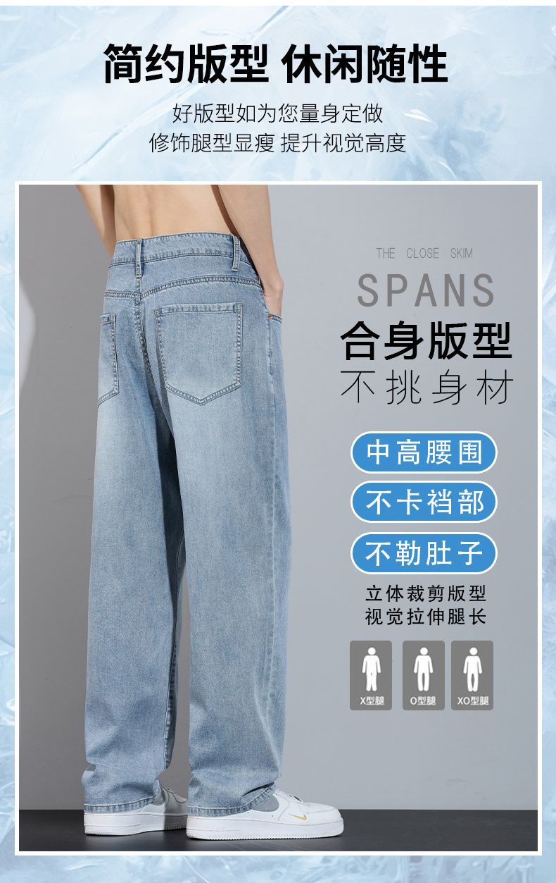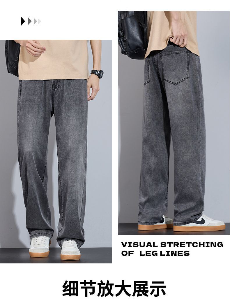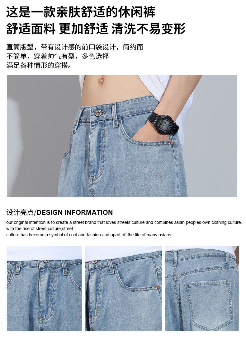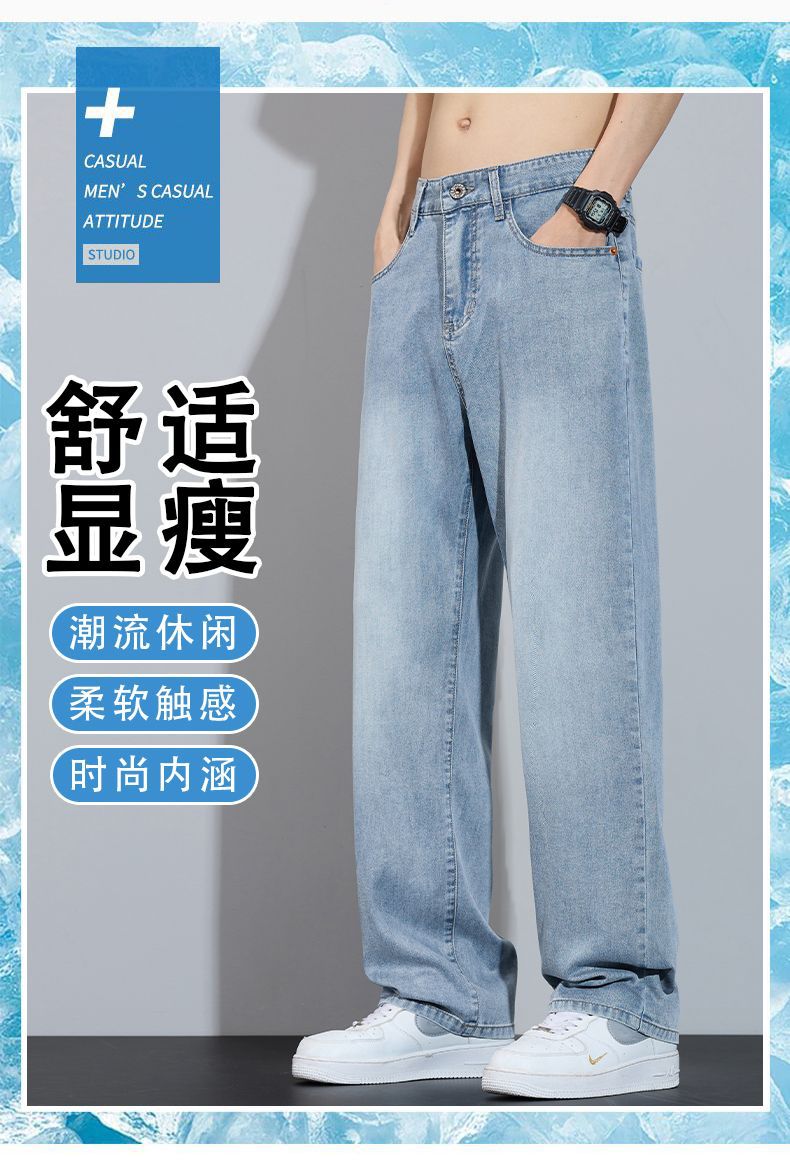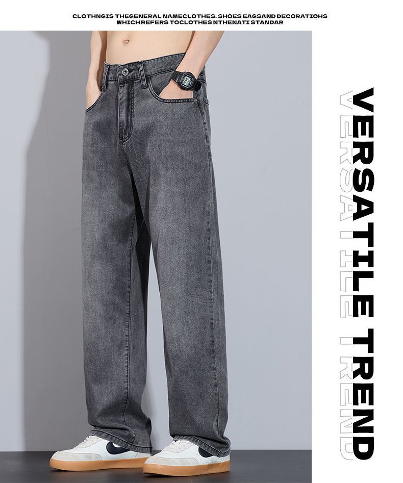 Xintang 봄 여름 라이트 블루 청바지 남성 봄, 가을 미국 복고풍 루즈 스트레이트 캐주얼 긴 바지