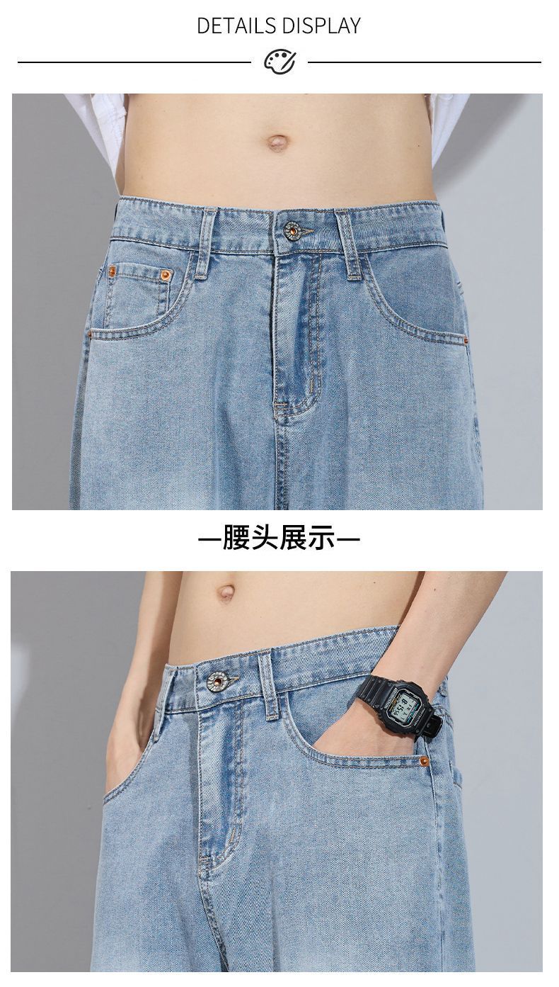 Xintang 봄 여름 라이트 블루 청바지 남성 봄, 가을 미국 복고풍 루즈 스트레이트 캐주얼 긴 바지스토어 가기