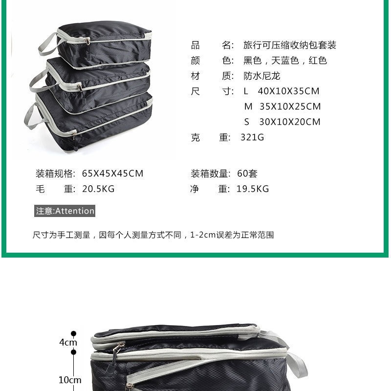 나일론 압축 3종 세트 수납 가방 여행용 휴대용 의류 및 속옷 정리 가방 메쉬 대용량 수납 가방스토어 가기