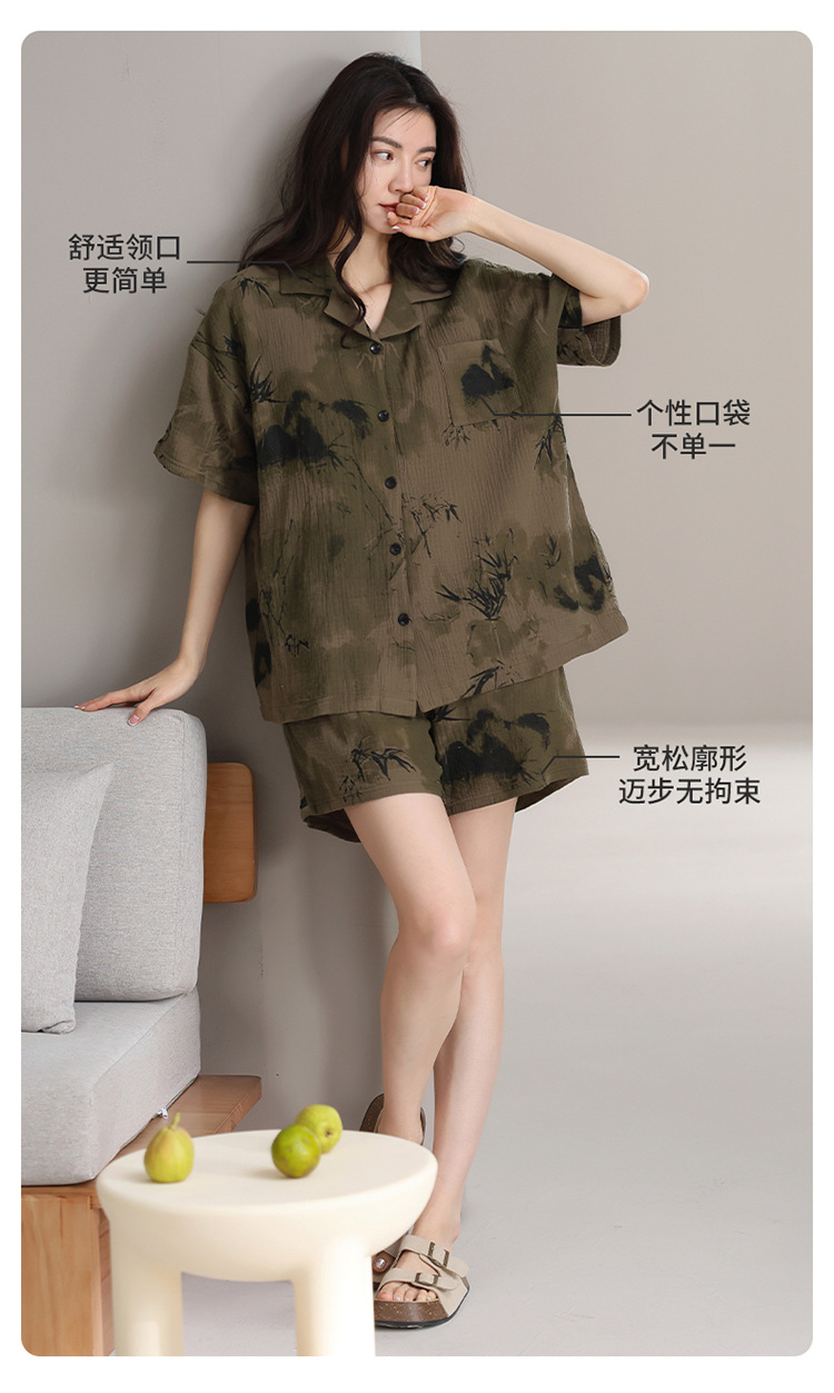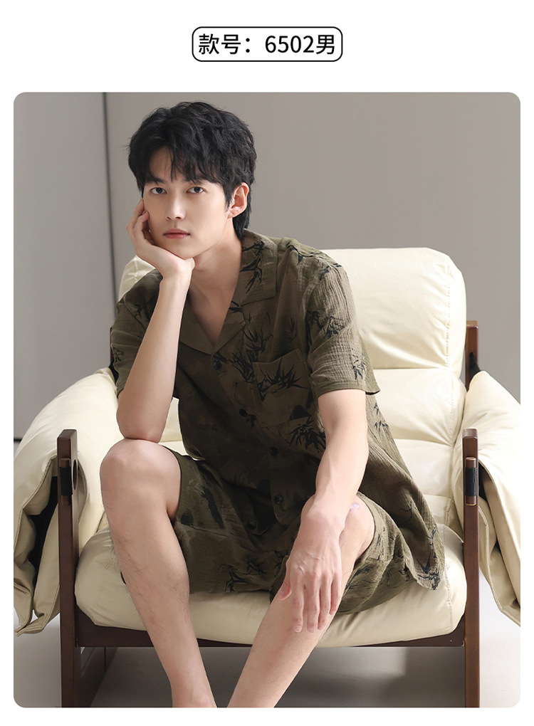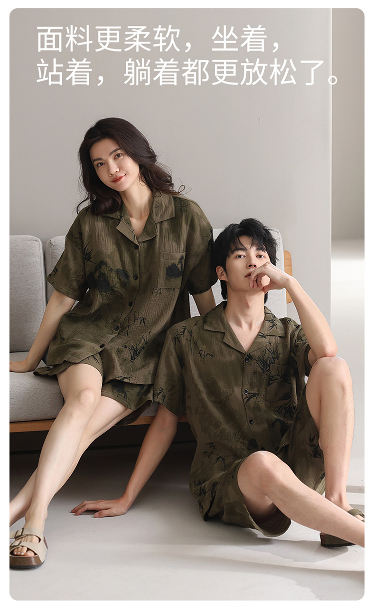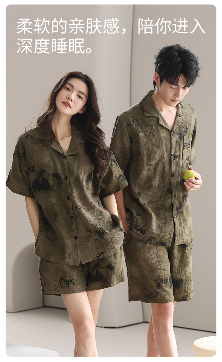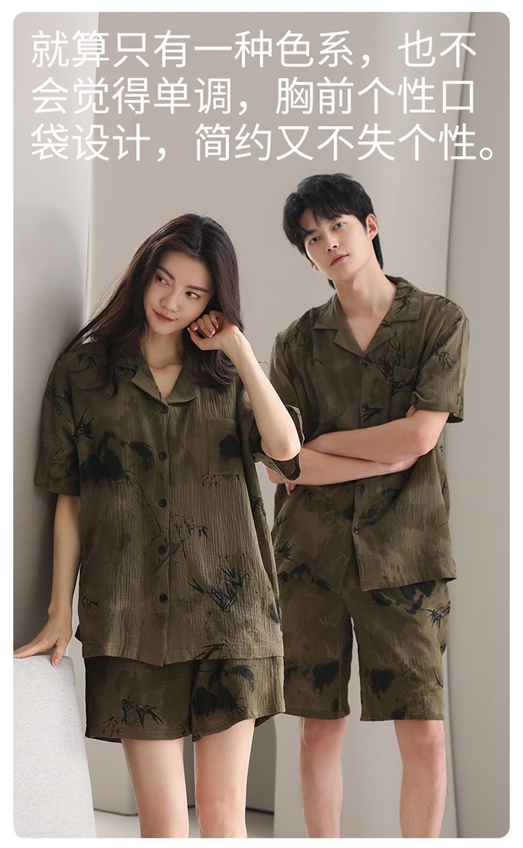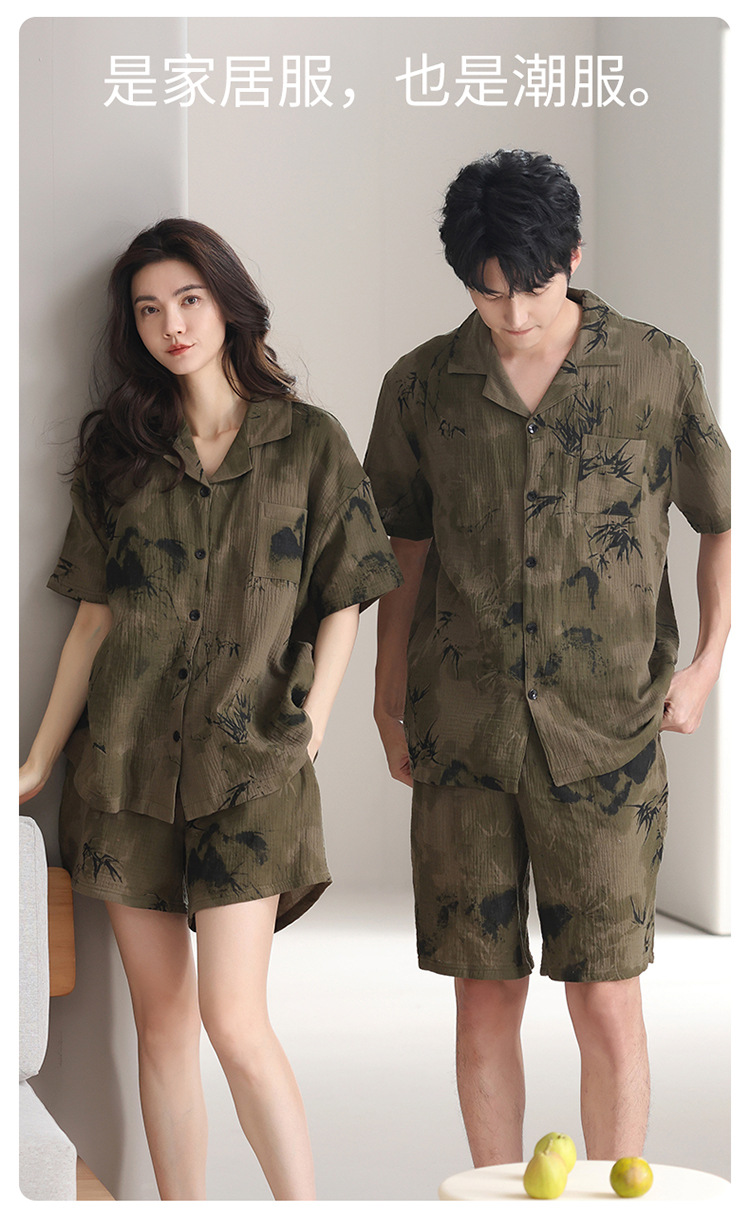 가슴 패드가있는 여름 순수 코튼 거즈 커플 잠옷 남성과 여성 반팔 반바지 카디건 얇은 고급 여름 정장스토어 가기