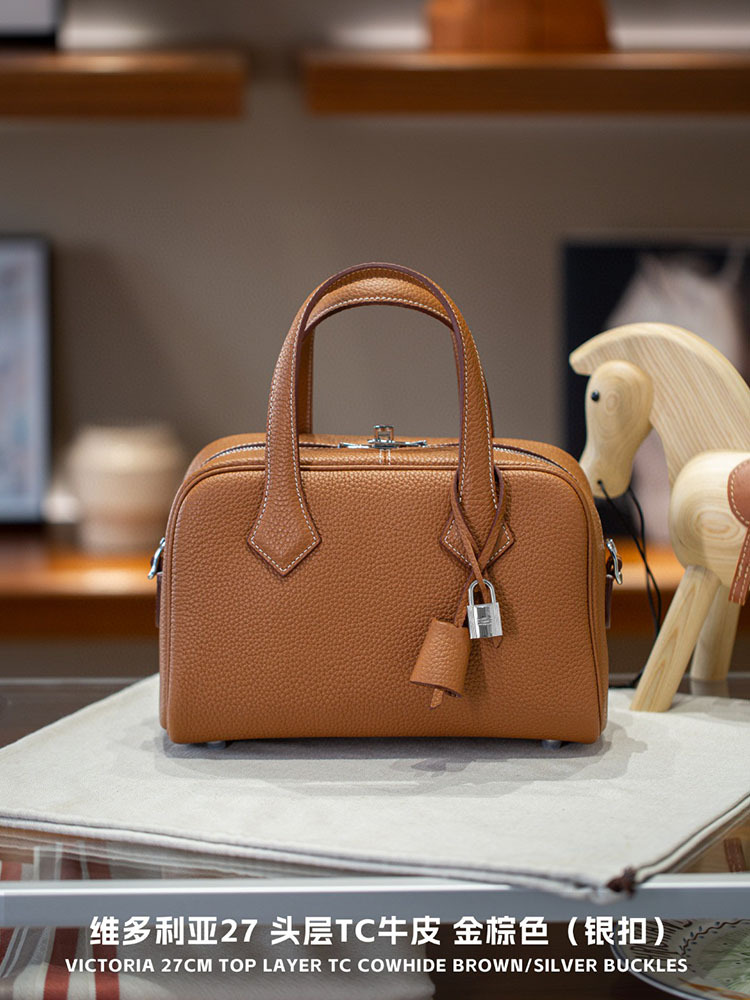 2025 새로운 탑 레이어 TC 가죽 빅토리아 27 볼링 베개 가방 토트 백 어깨 메신저 백스토어 가기