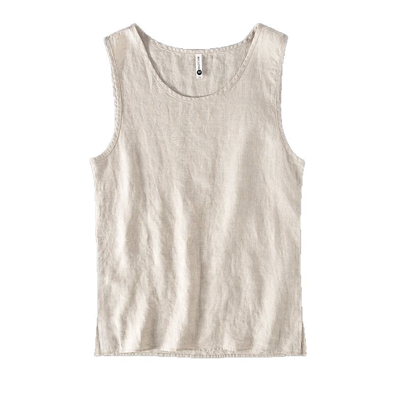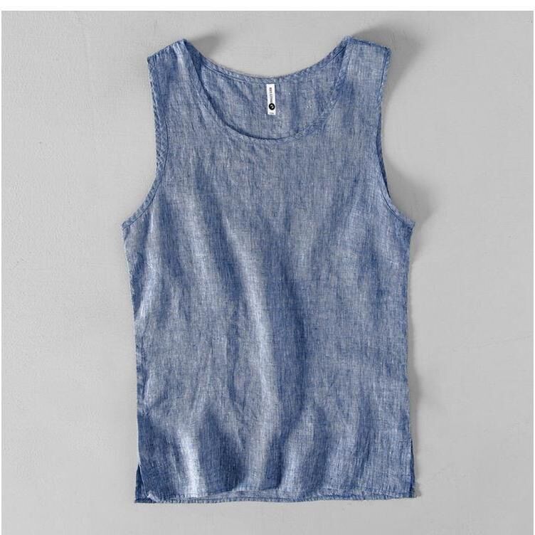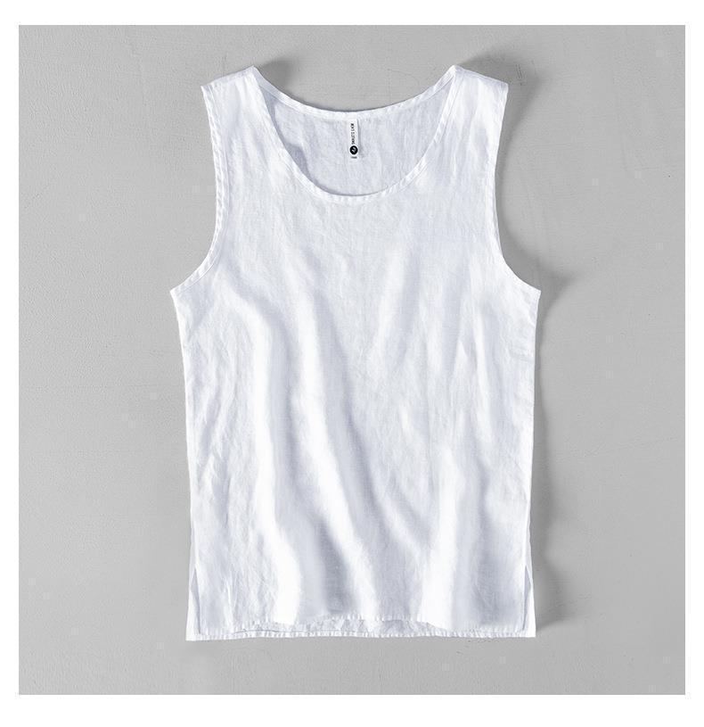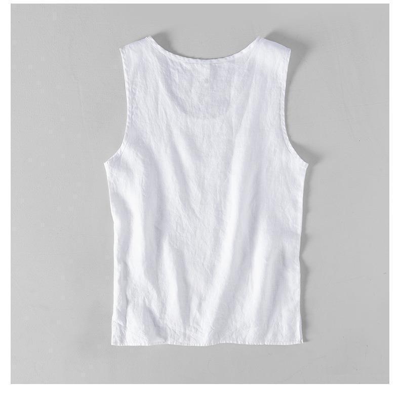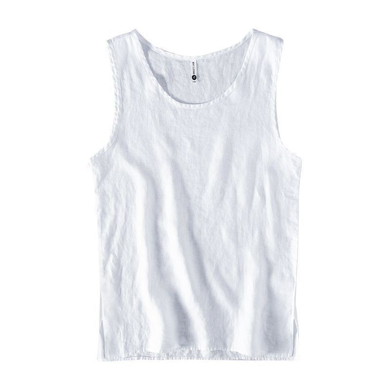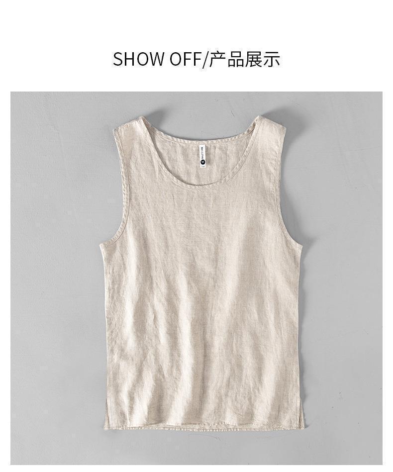 일본식 심플 코튼 린넨 조끼 남성 여름 통기성 얇은 양복 조끼 대형 루즈 비치 린넨 민소매 티셔츠 트렌디스토어 가기