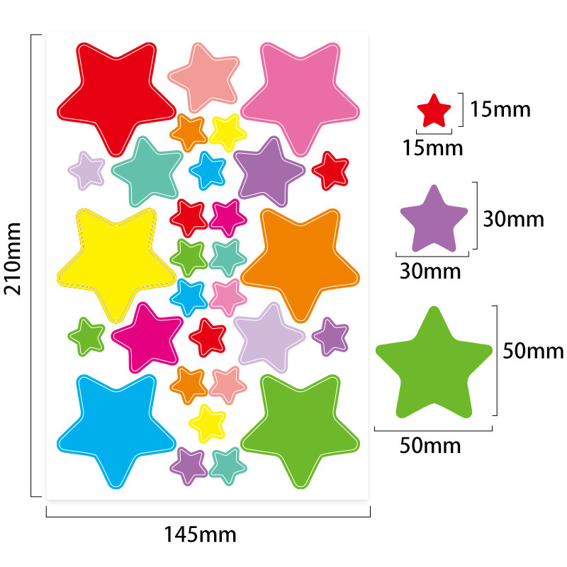 • 다양한 사이즈의 별 모양 스티커 (28개/장)