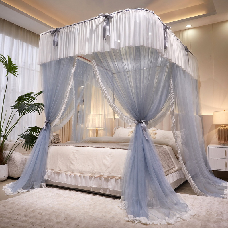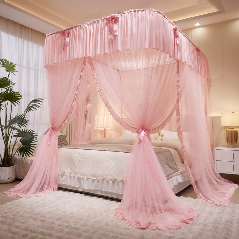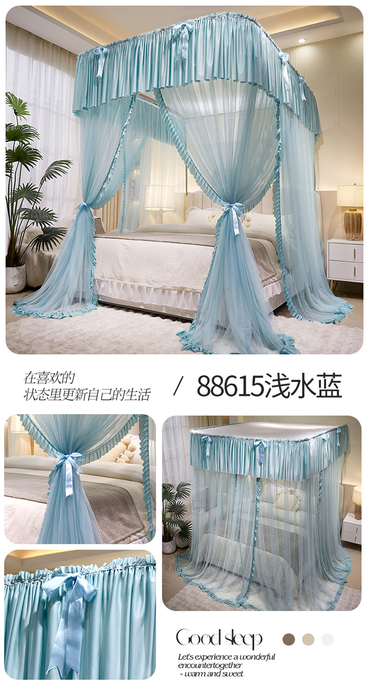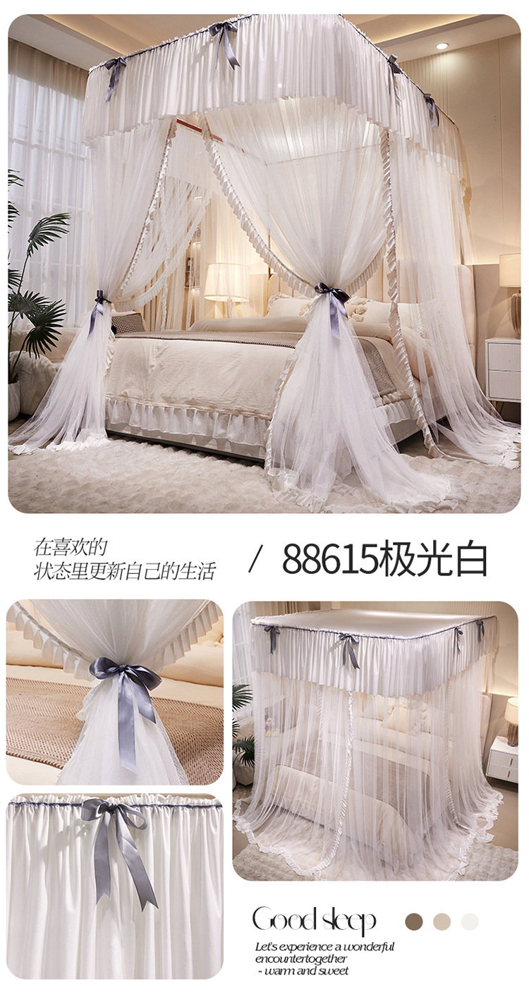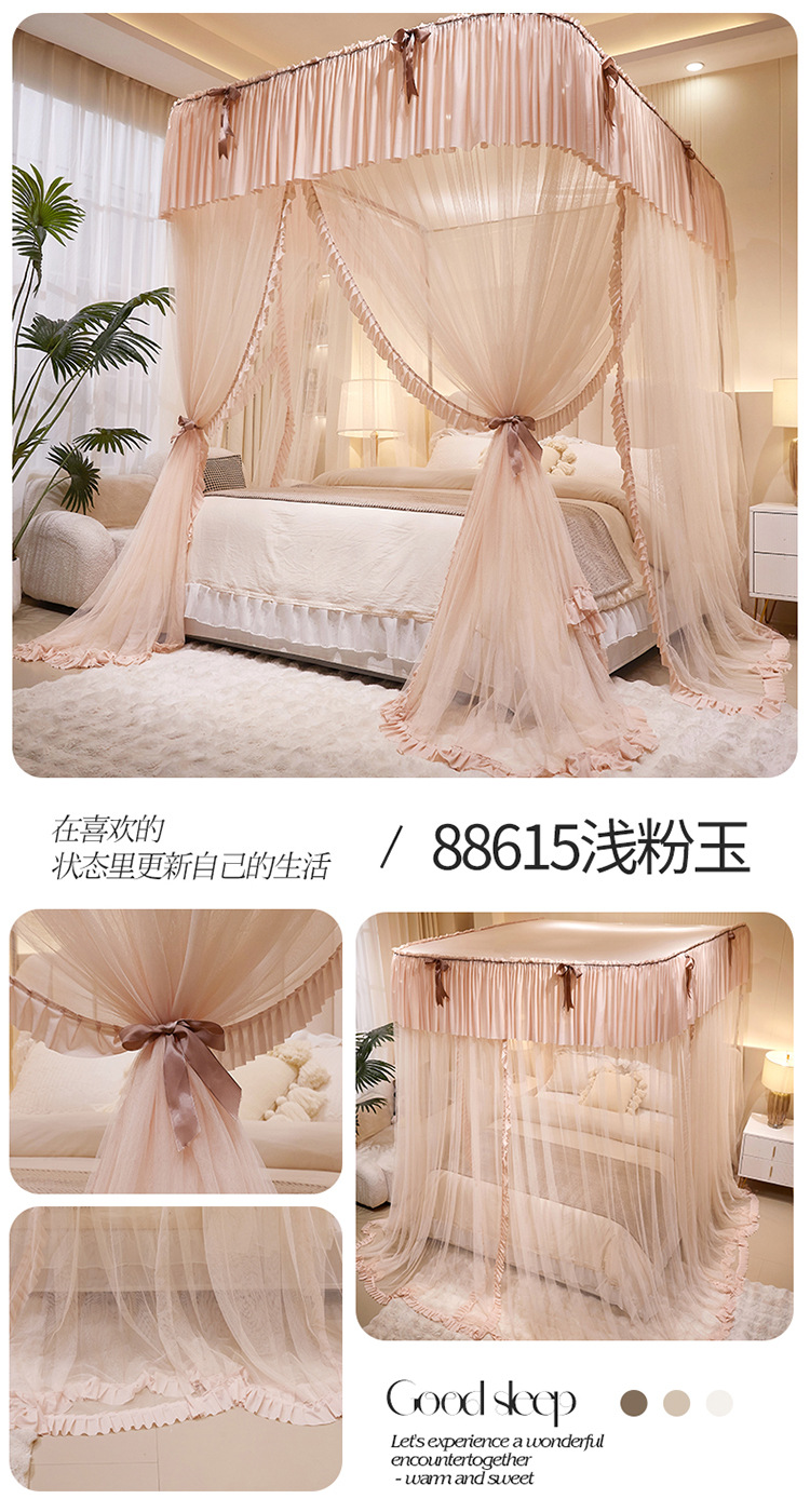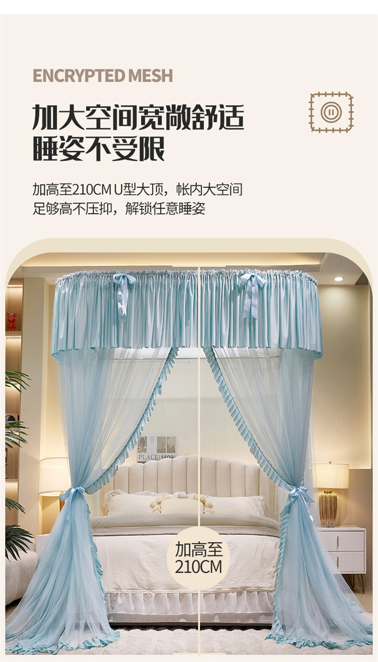 2025 새로운 리프팅 공주 스타일 모기장 U 자형 개폐식 가이드 트랙 3 도어 바닥 모기장 궁전 침대 커튼스토어 가기