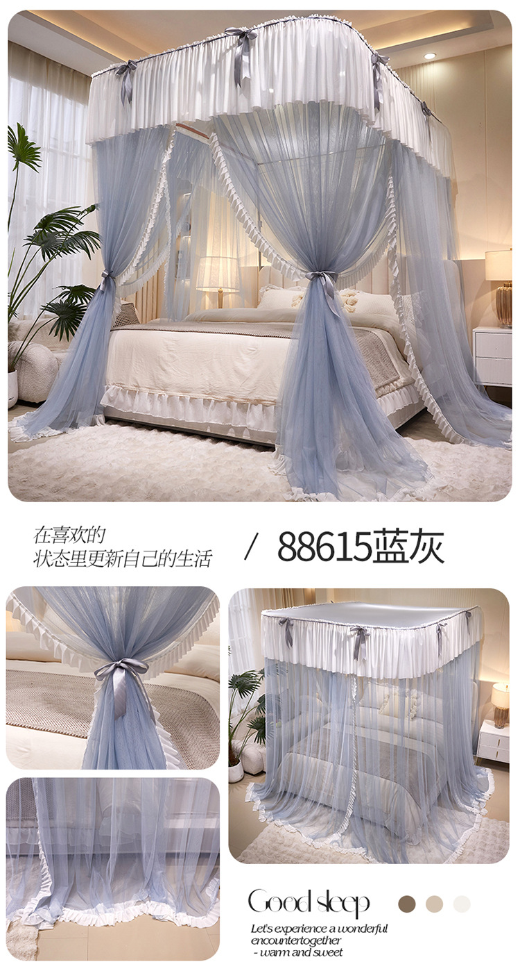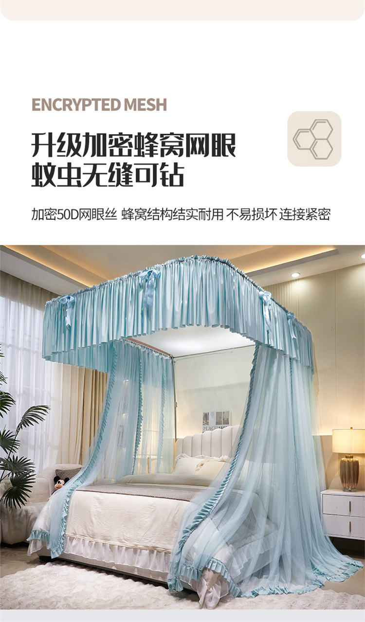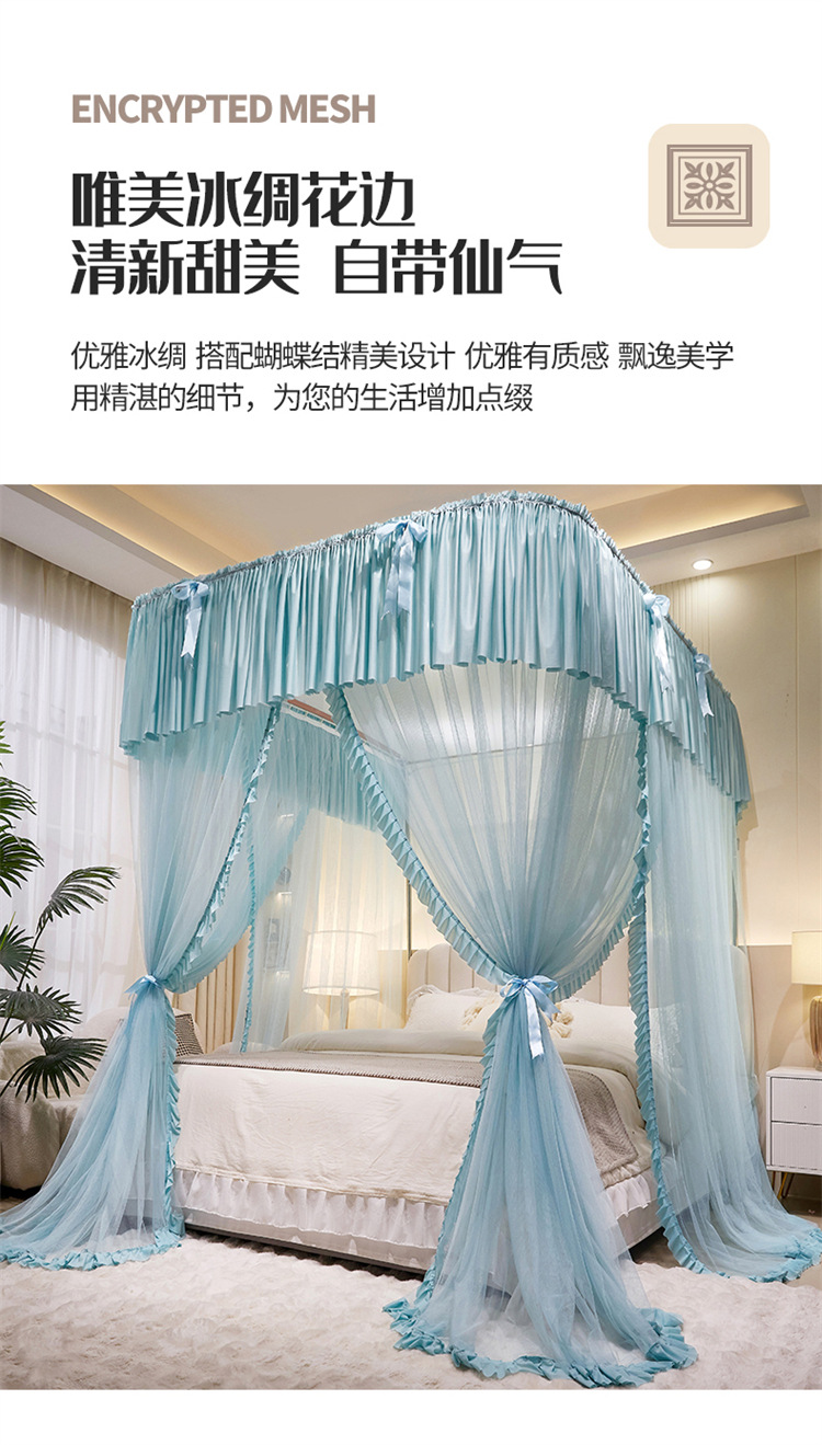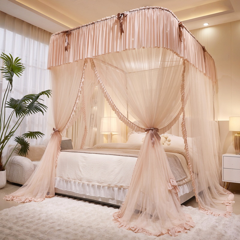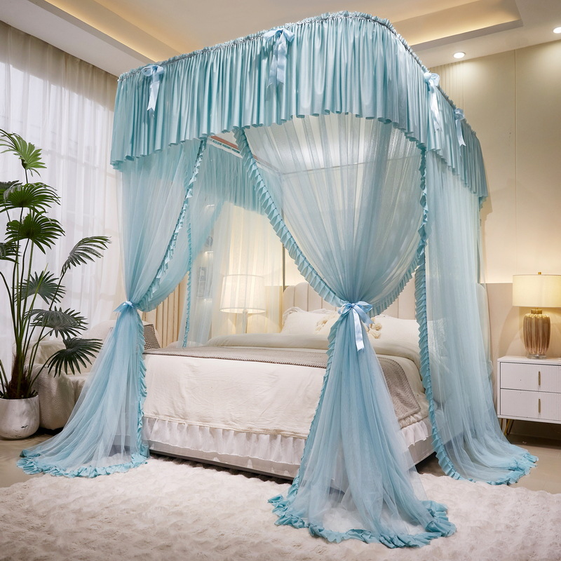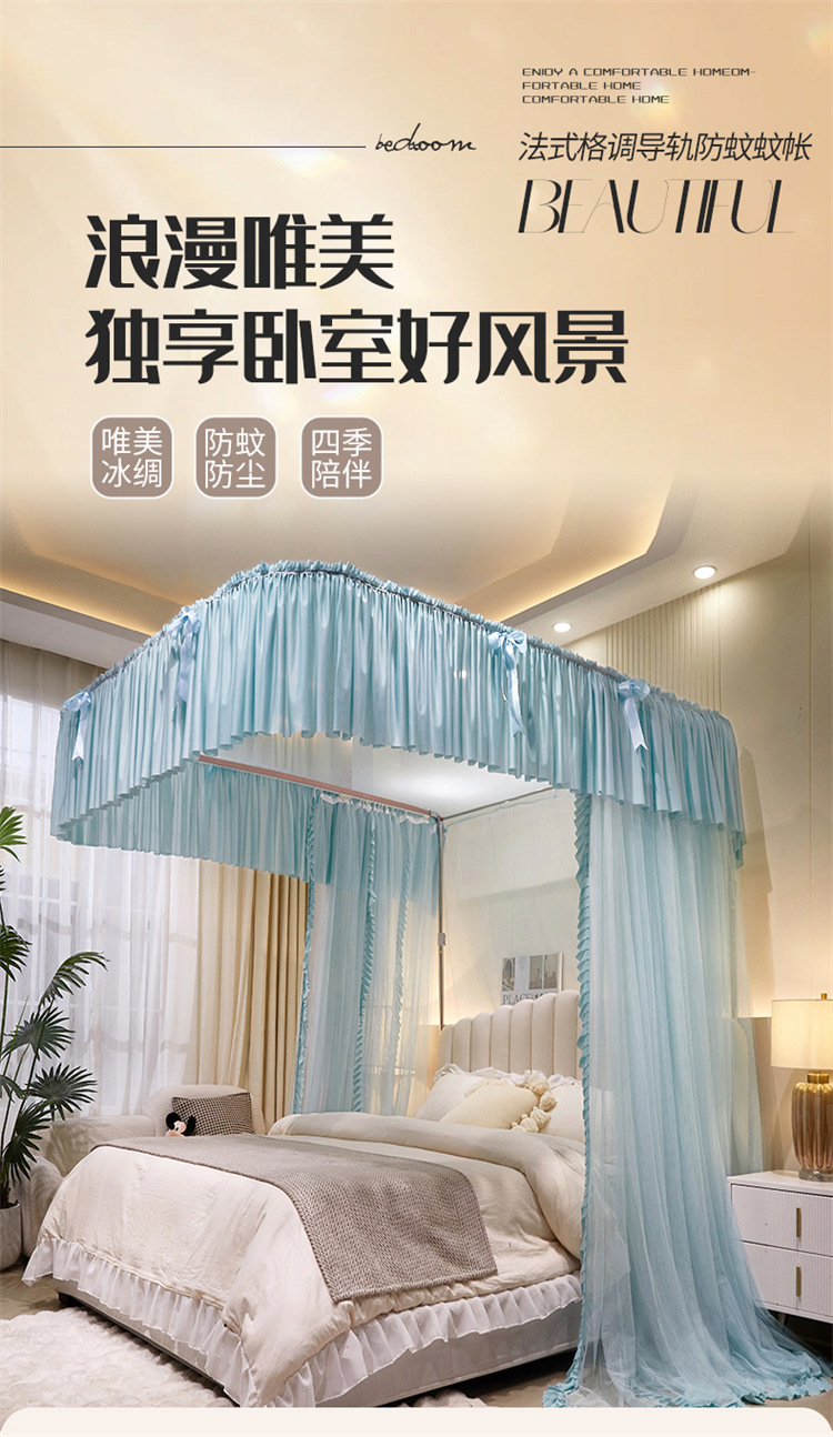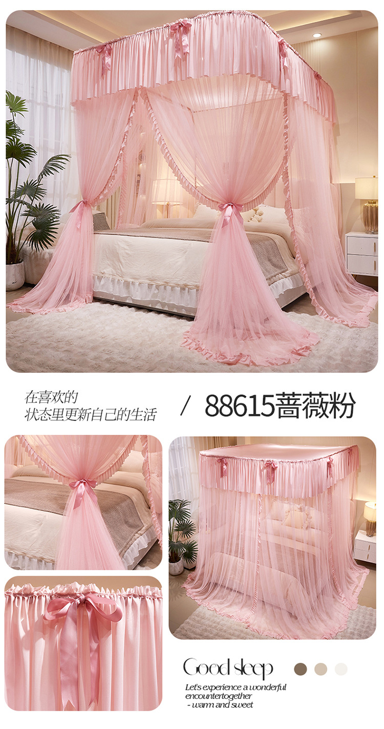 2025 새로운 리프팅 공주 스타일 모기장 U 자형 개폐식 가이드 트랙 3 도어 바닥 모기장 궁전 침대 커튼스토어 가기