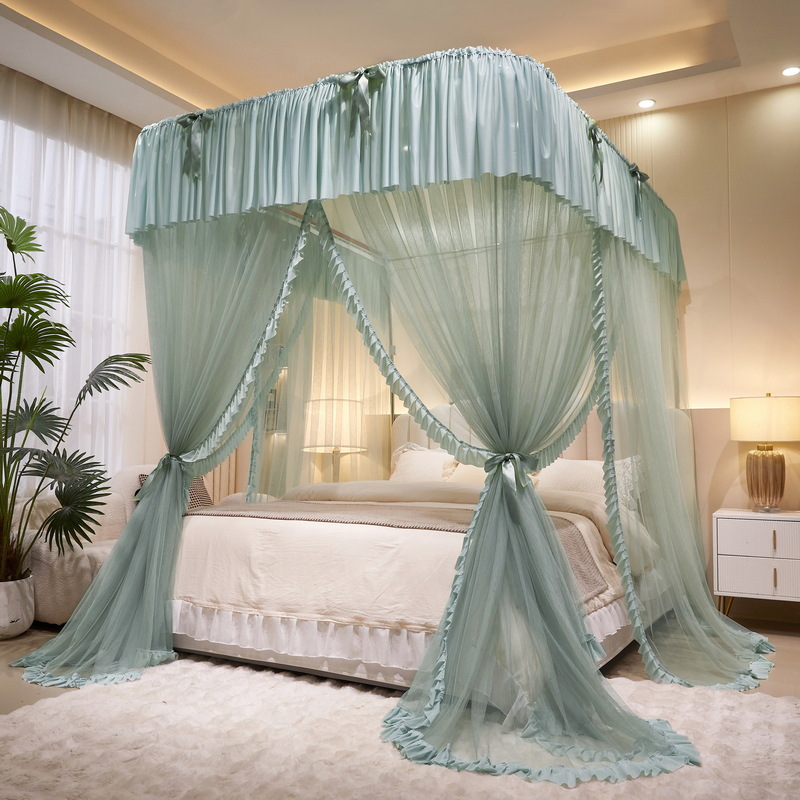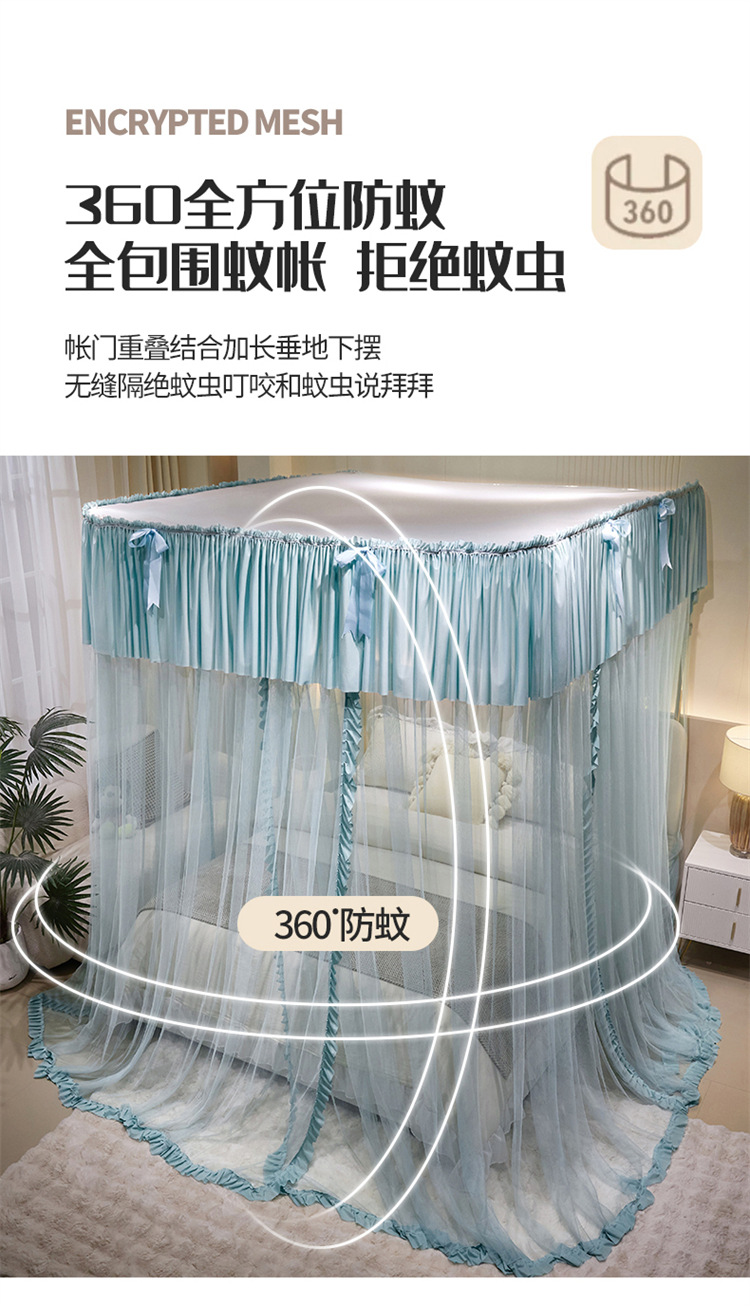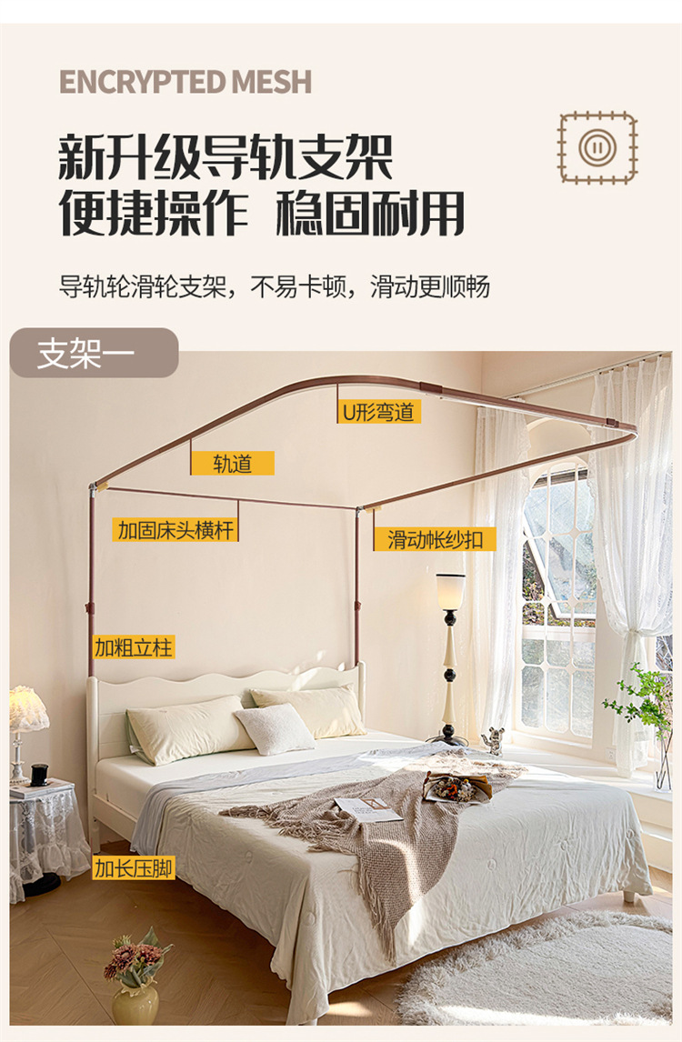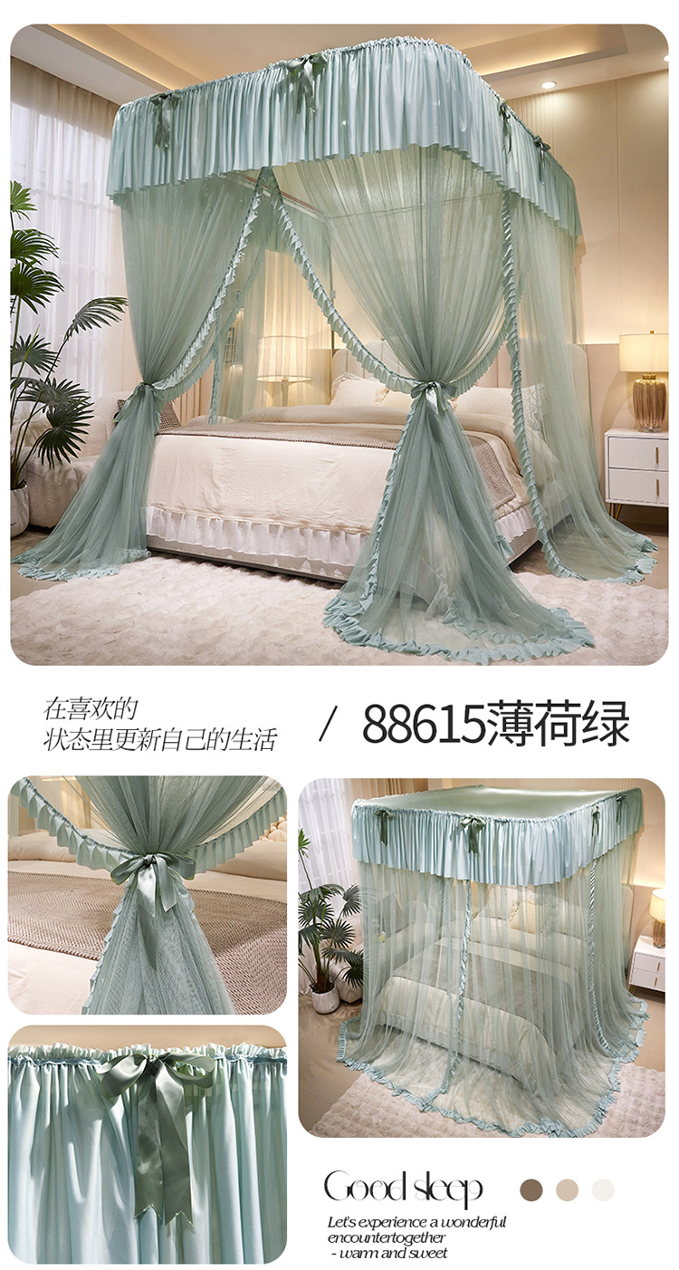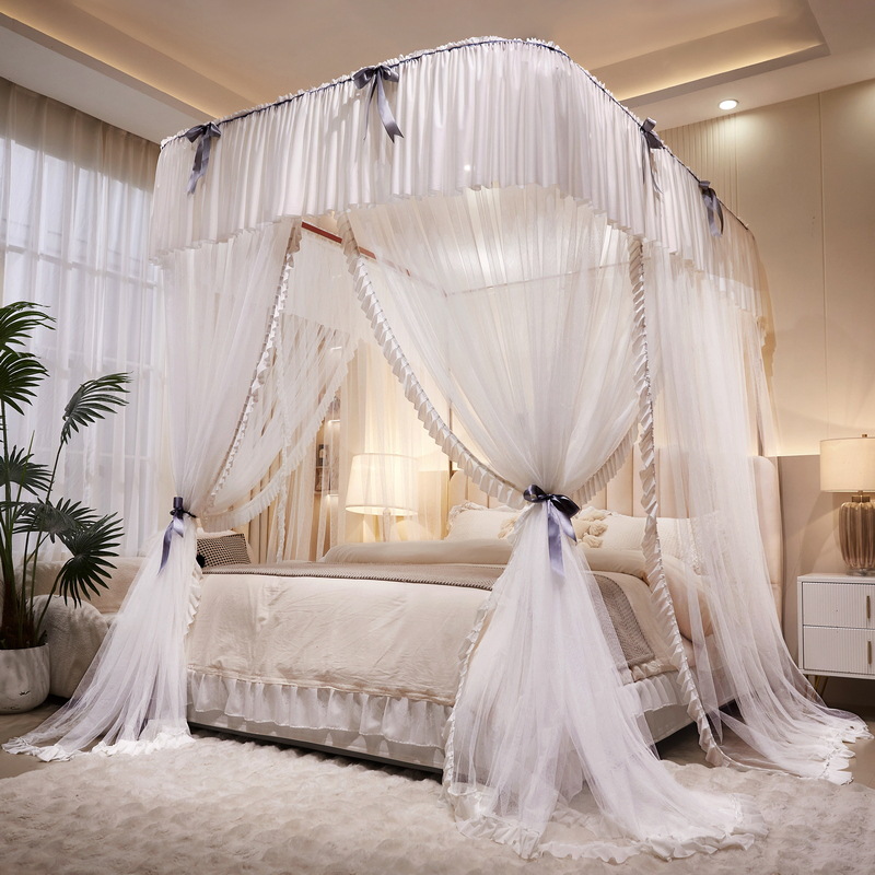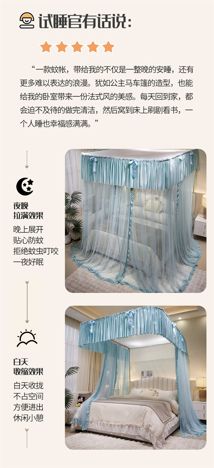 2025 새로운 리프팅 공주 스타일 모기장 U 자형 개폐식 가이드 트랙 3 도어 바닥 모기장 궁전 침대 커튼스토어 가기