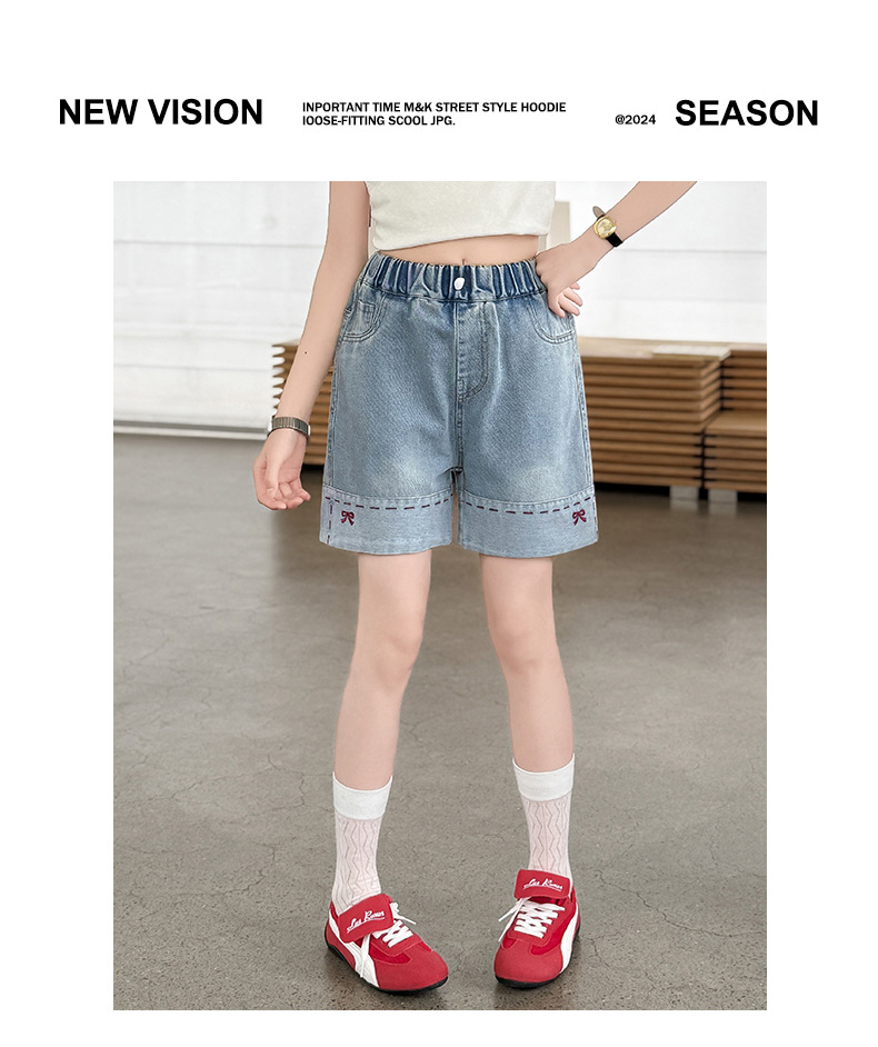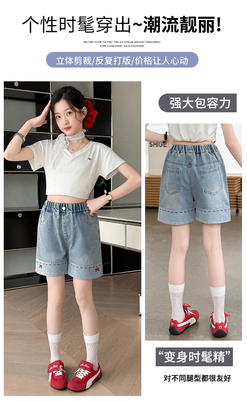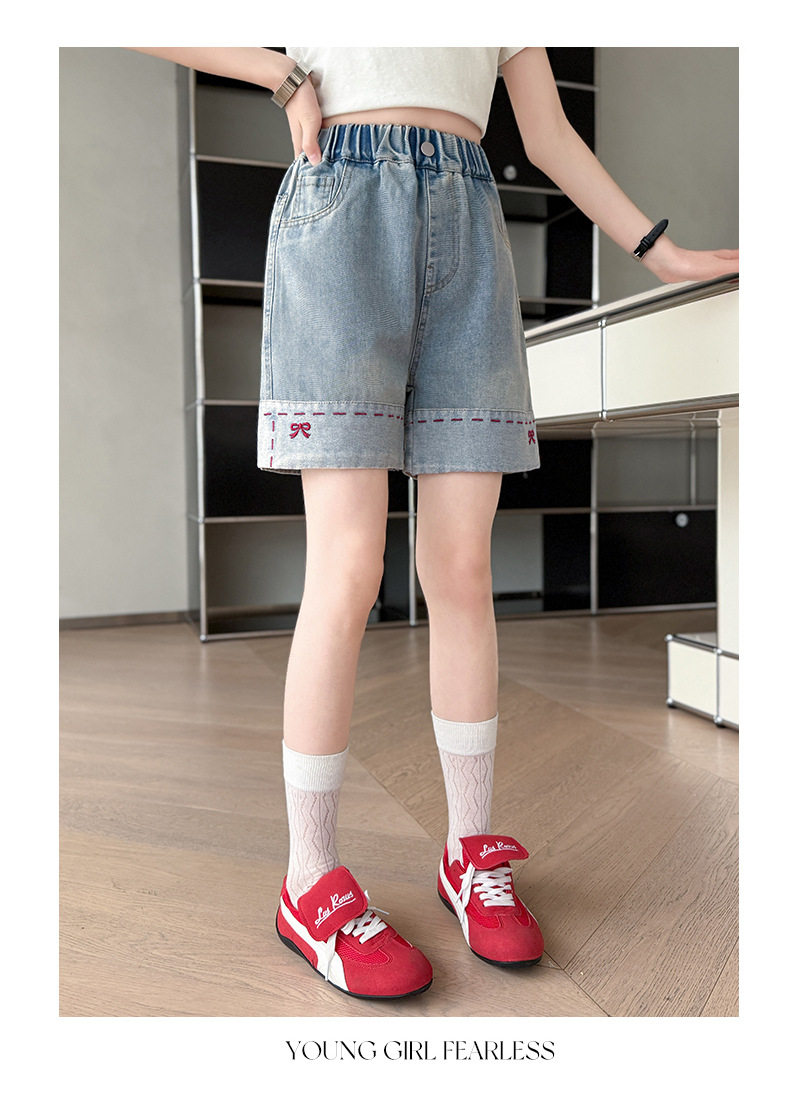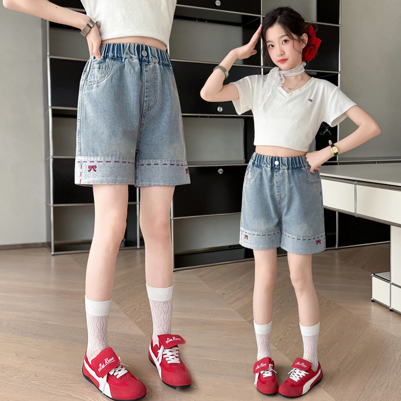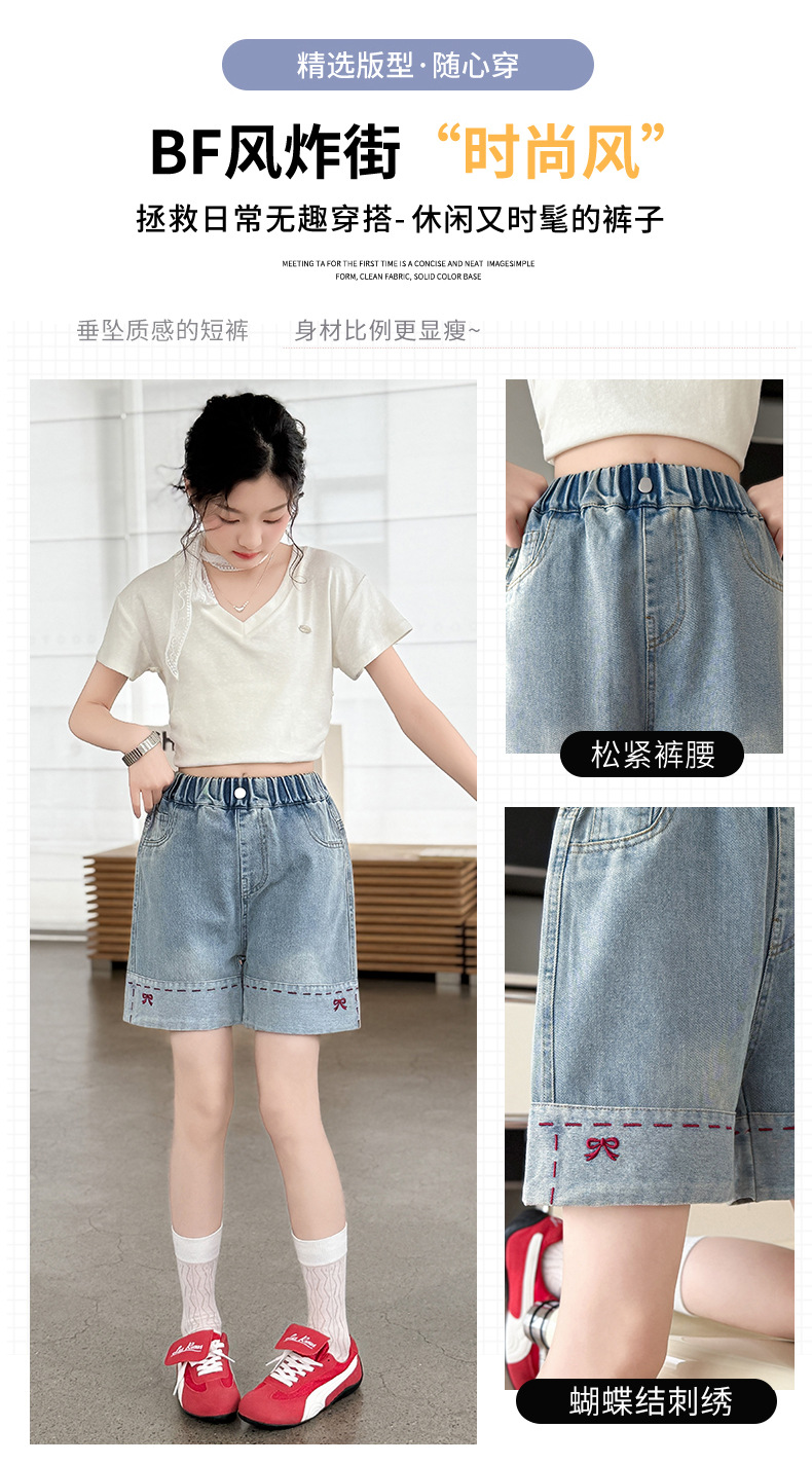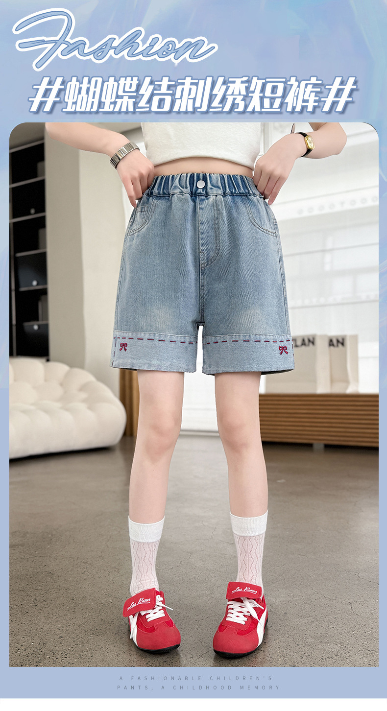여자 여름 데님 반바지 2025 새로운 패션 소녀 한국 스타일 세련된 나비 자수 반바지 유행