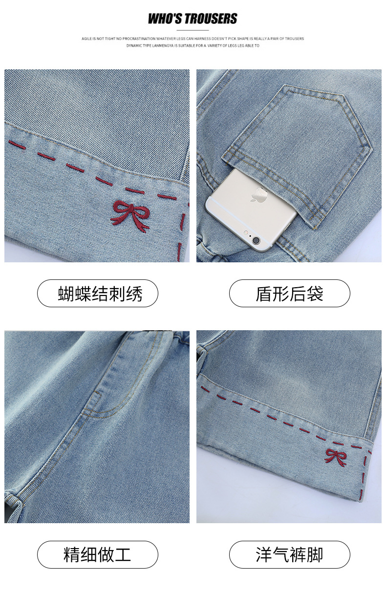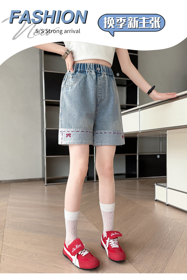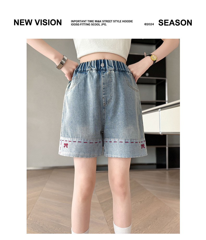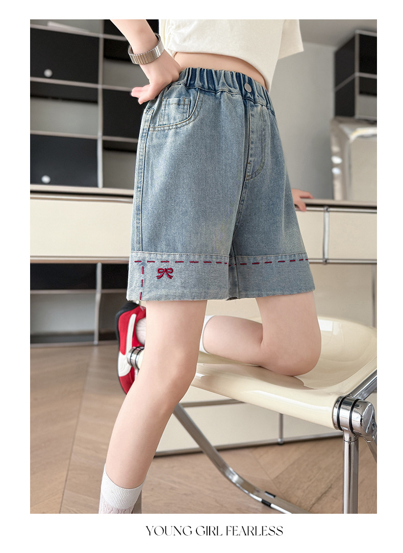 여자 여름 데님 반바지 2025 새로운 패션 소녀 한국 스타일 세련된 나비 자수 반바지 유행스토어 가기