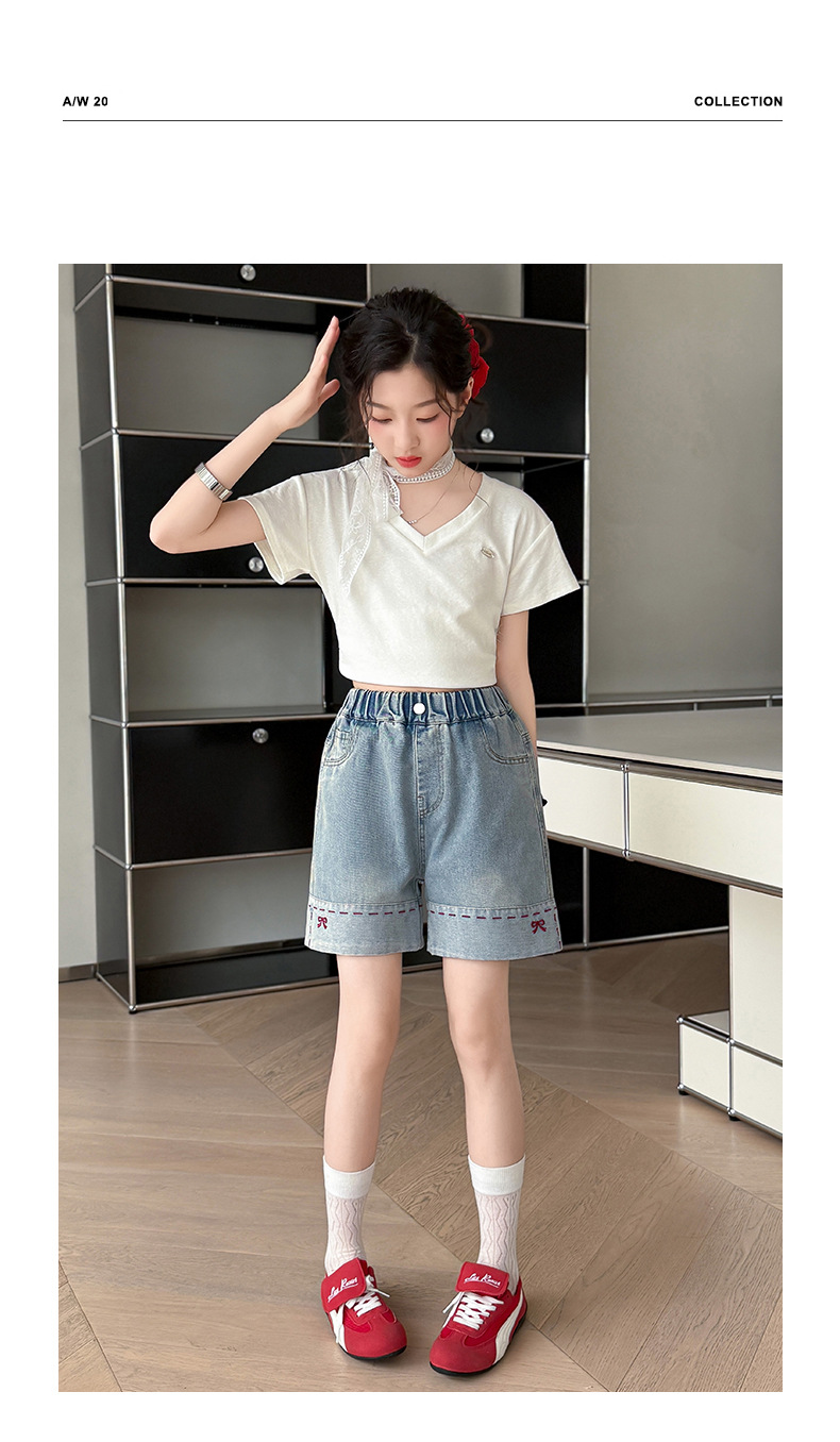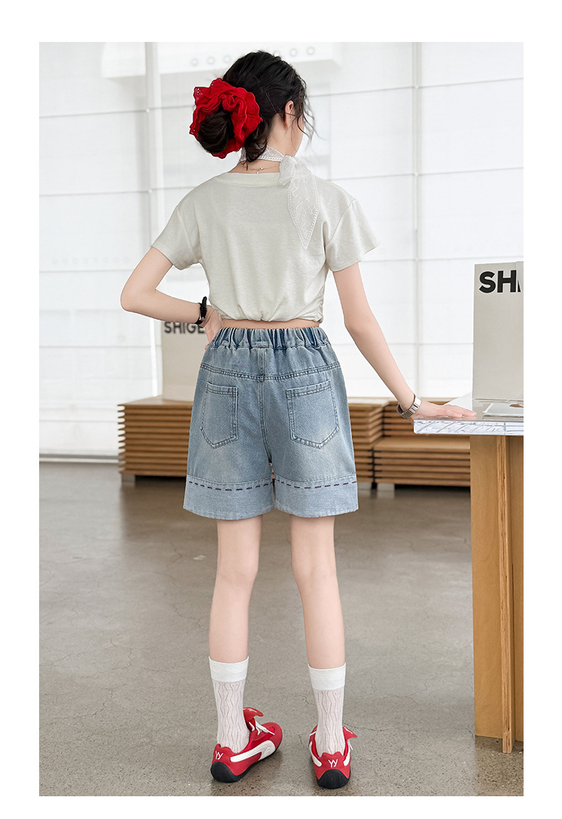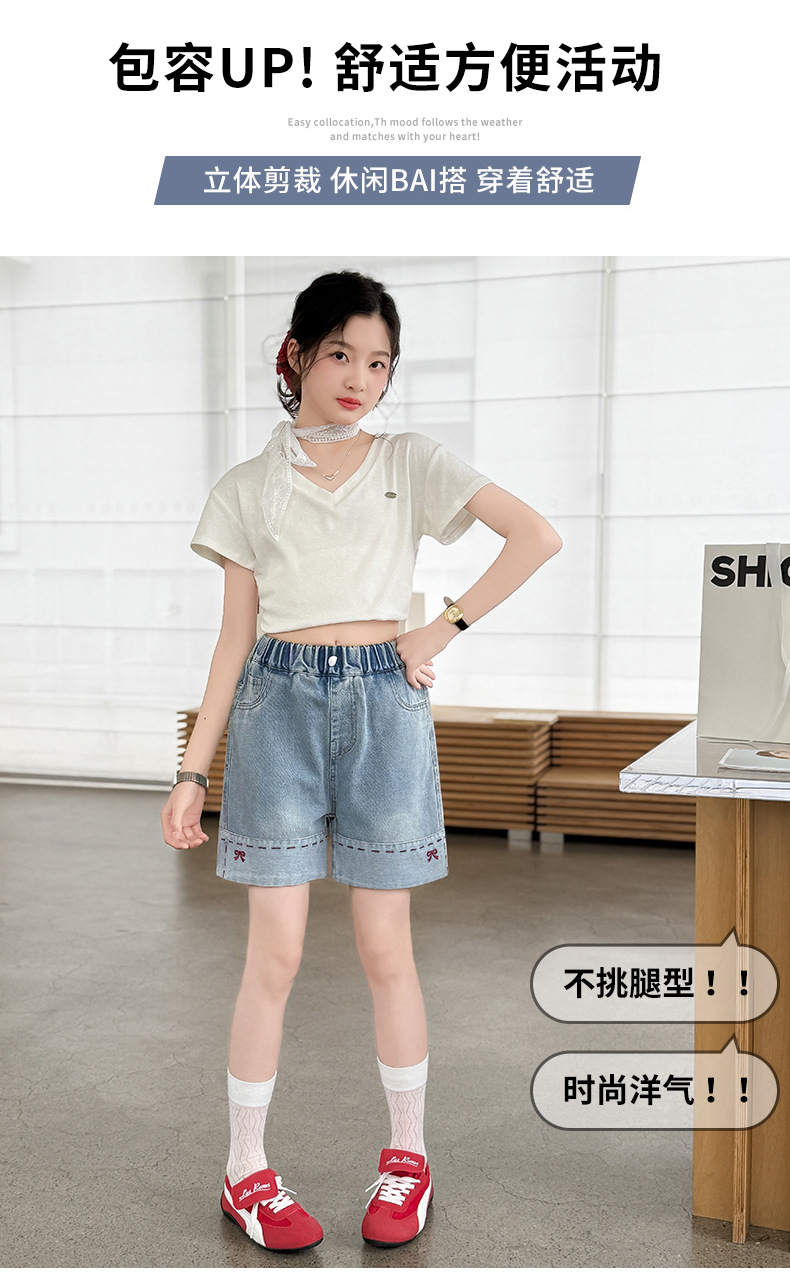 여자 여름 데님 반바지 2025 새로운 패션 소녀 한국 스타일 세련된 나비 자수 반바지 유행스토어 가기