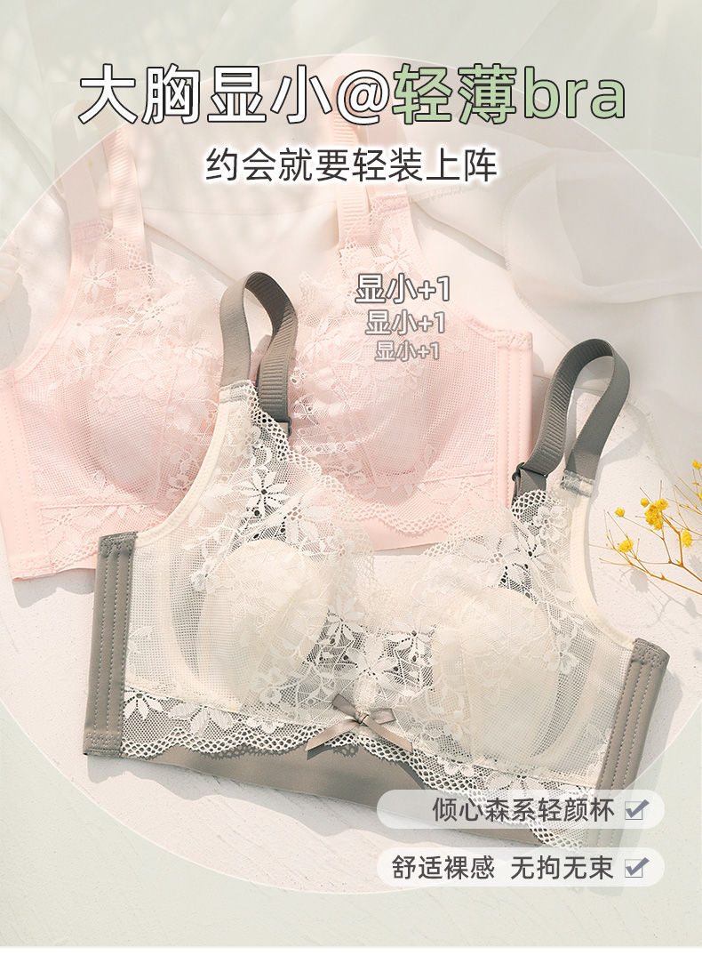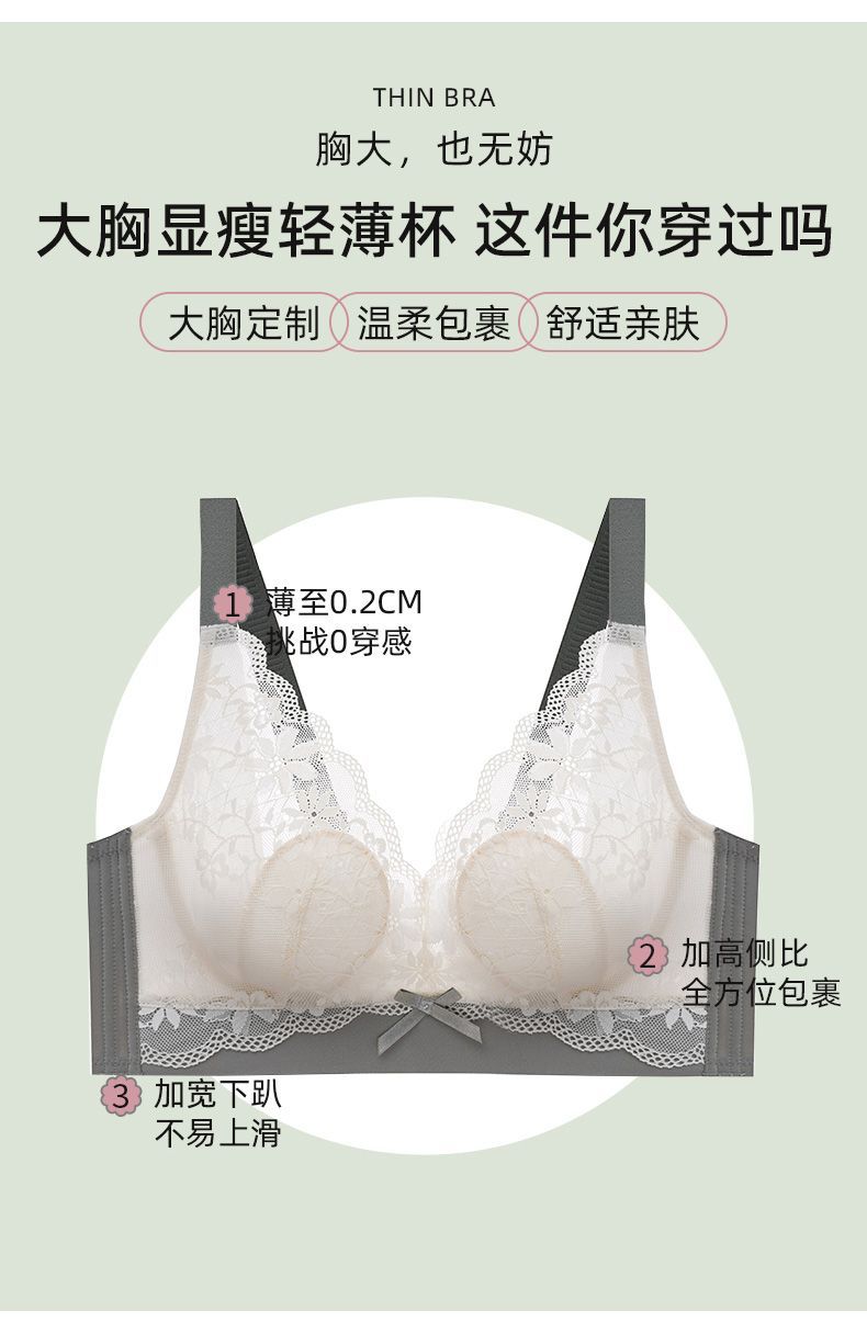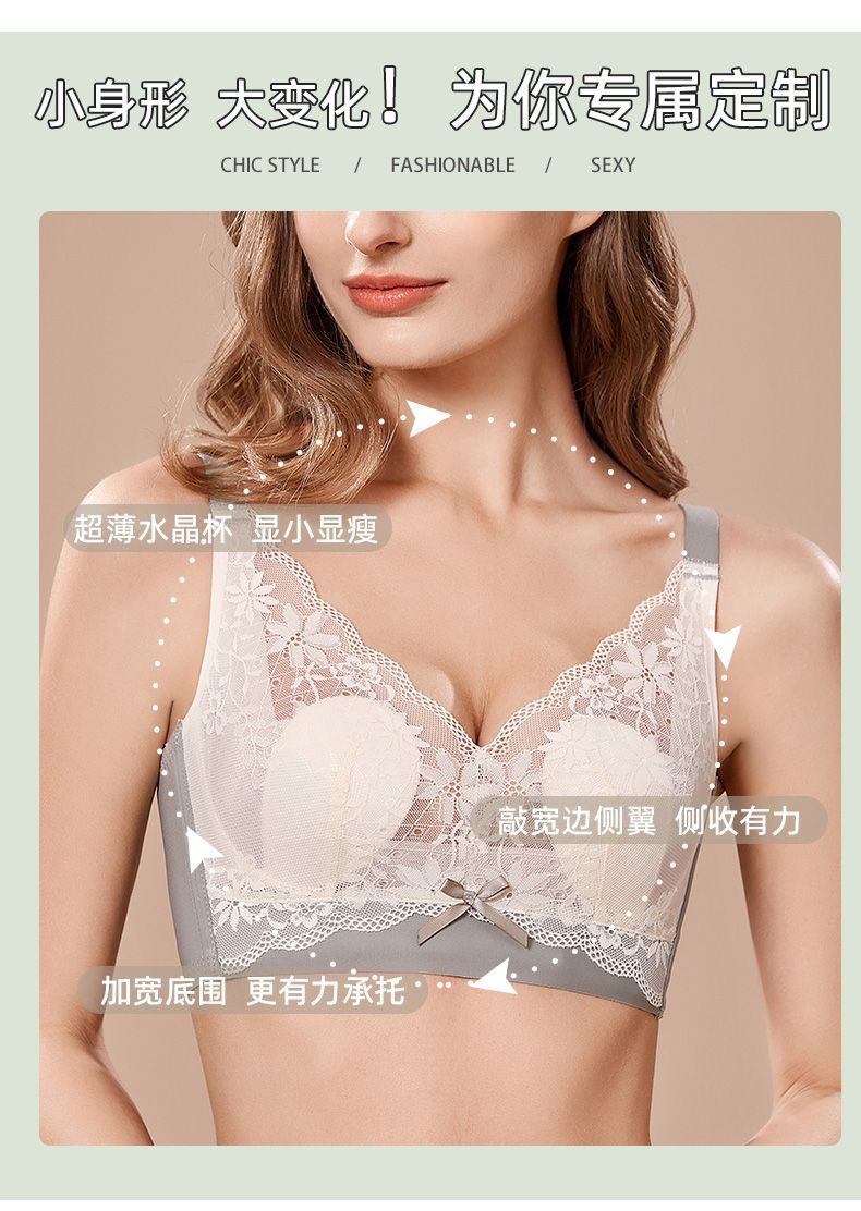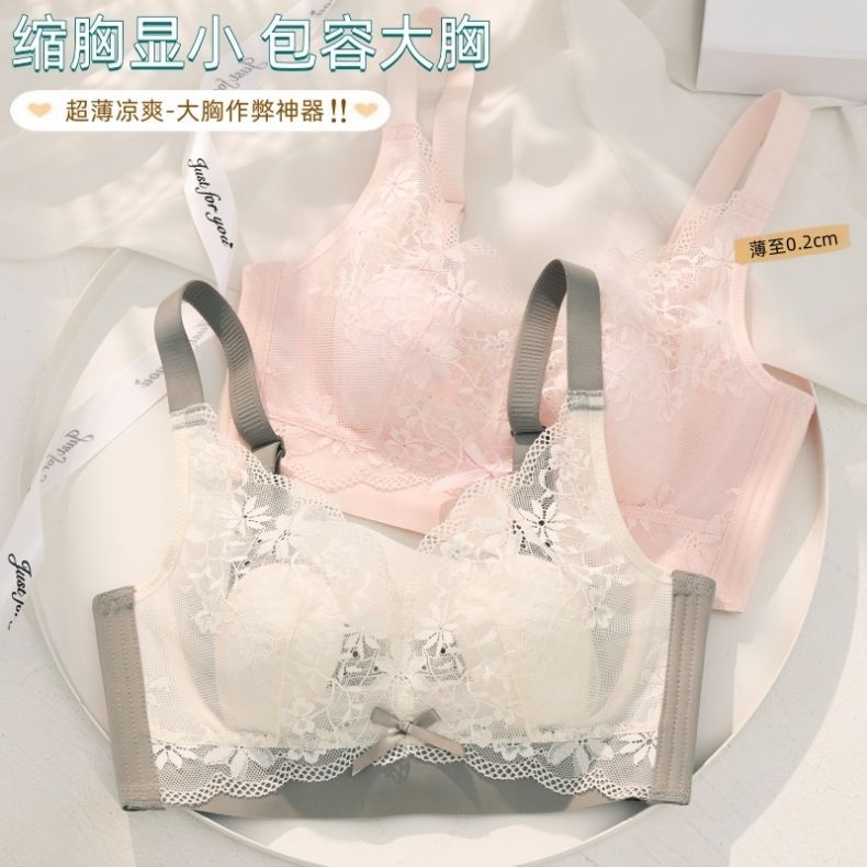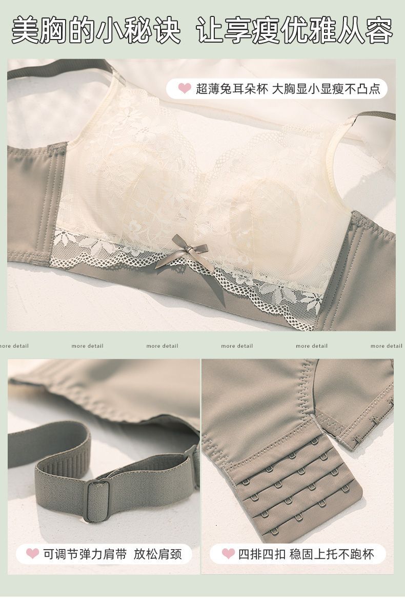 여성용 초박형 큰 가슴 속옷, 작은 가슴, 토끼 귀, 크리스탈 컵 레이스 브라, 처짐 방지, 통기성 여름스토어 가기