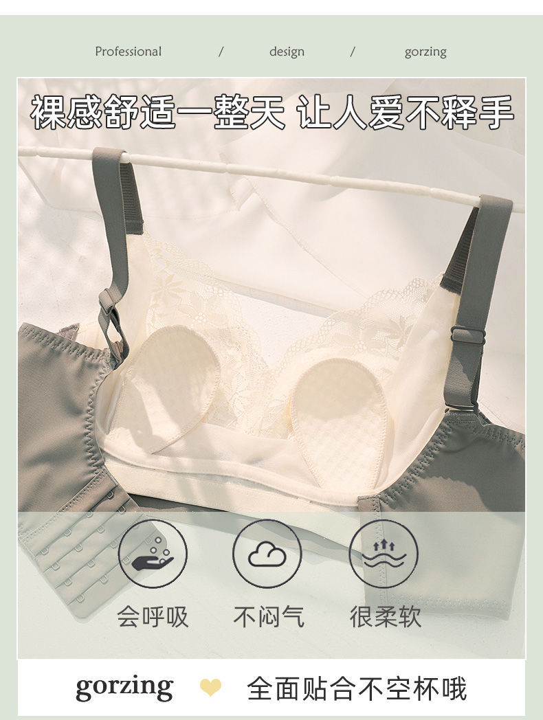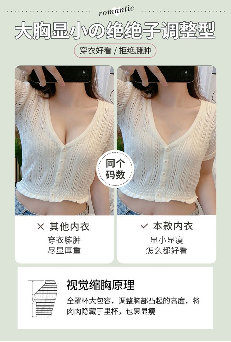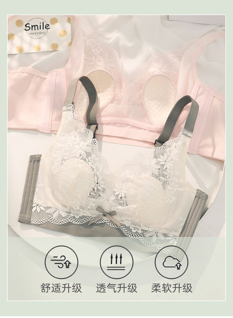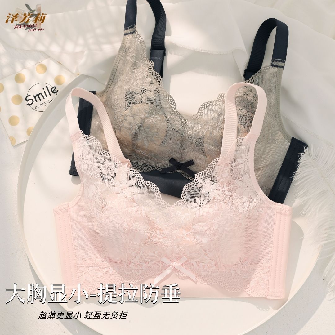 여성용 초박형 큰 가슴 속옷, 작은 가슴, 토끼 귀, 크리스탈 컵 레이스 브라, 처짐 방지, 통기성 여름스토어 가기