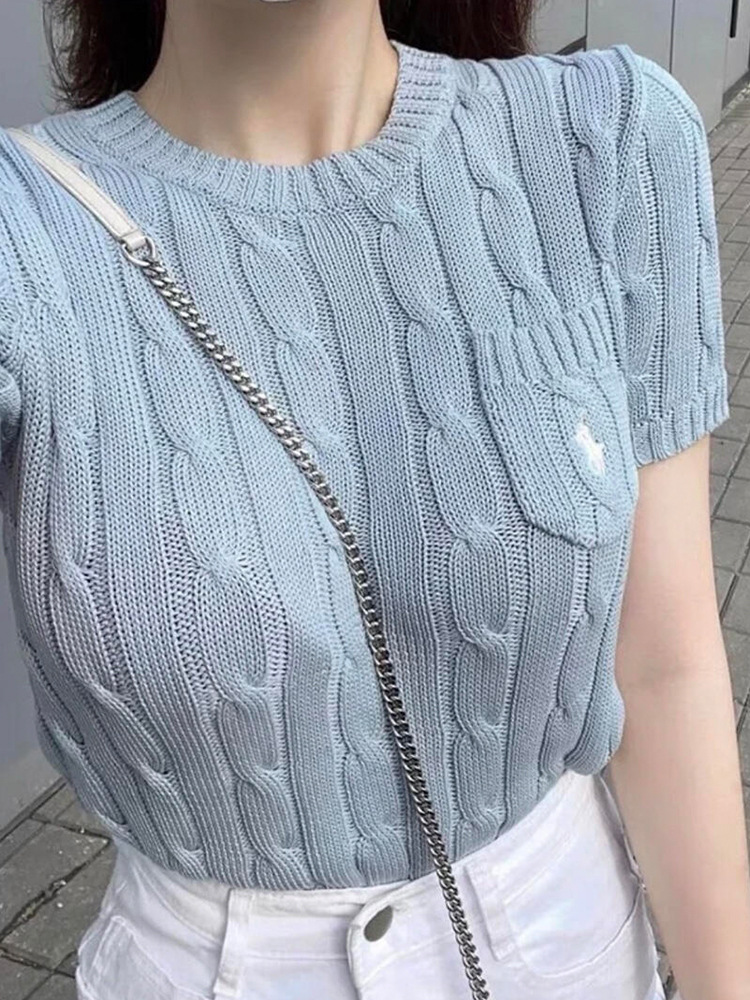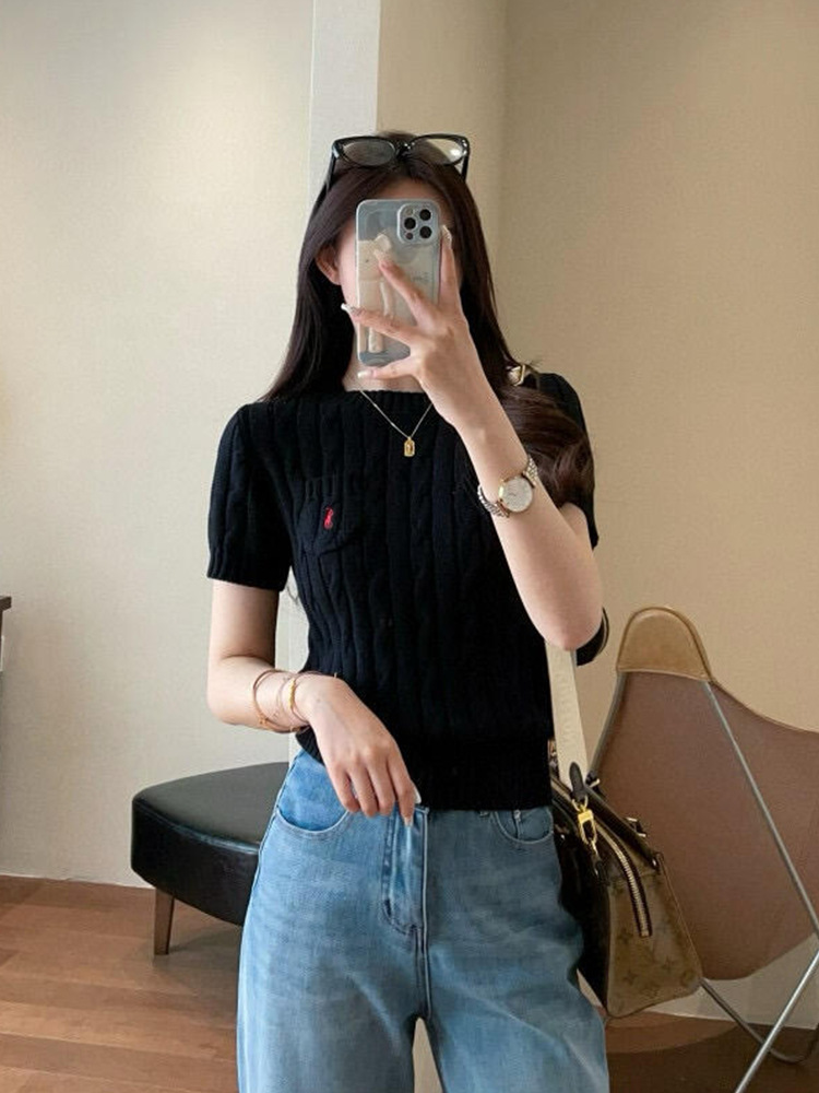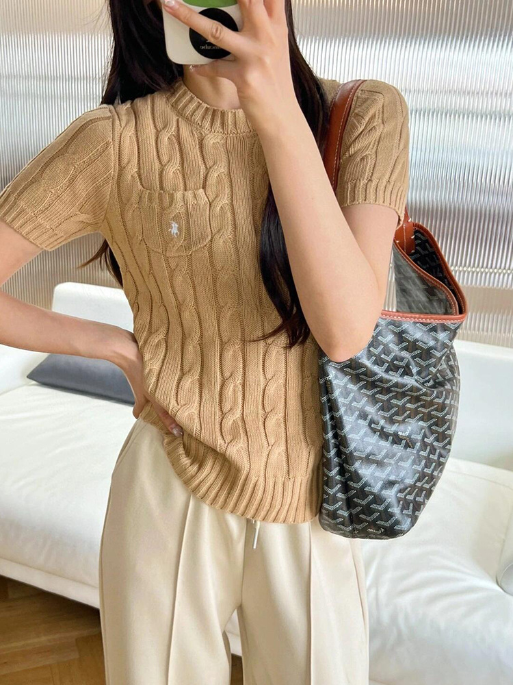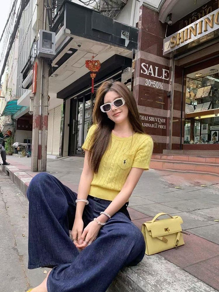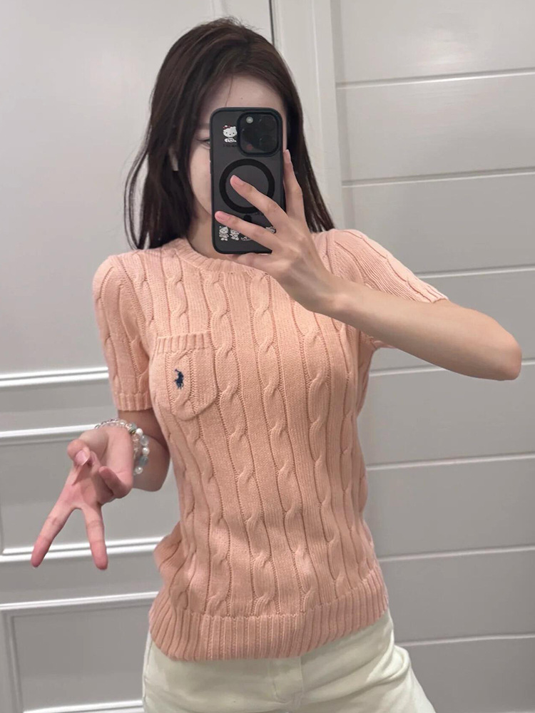 RL 라프 니트 반팔 여름 작은 포켓 포니 자수 트위스트 슬리밍 니트 셔츠 반소매 티셔츠 탑