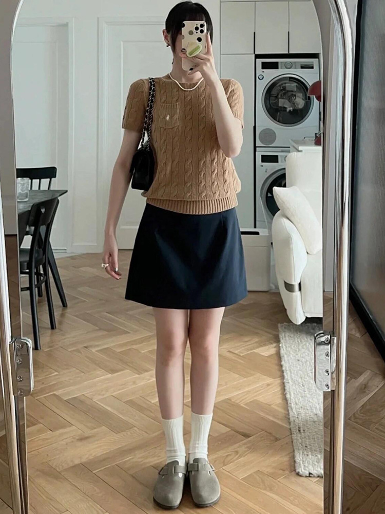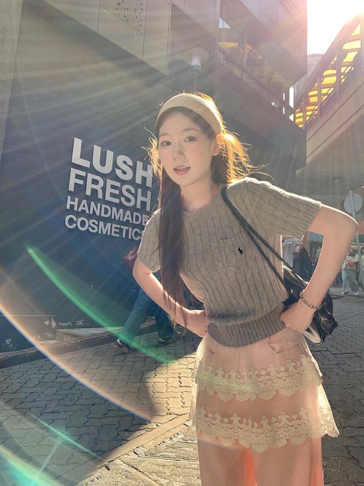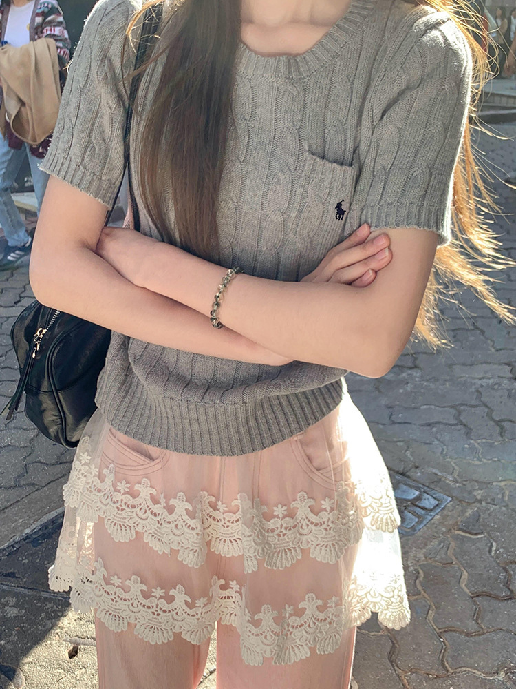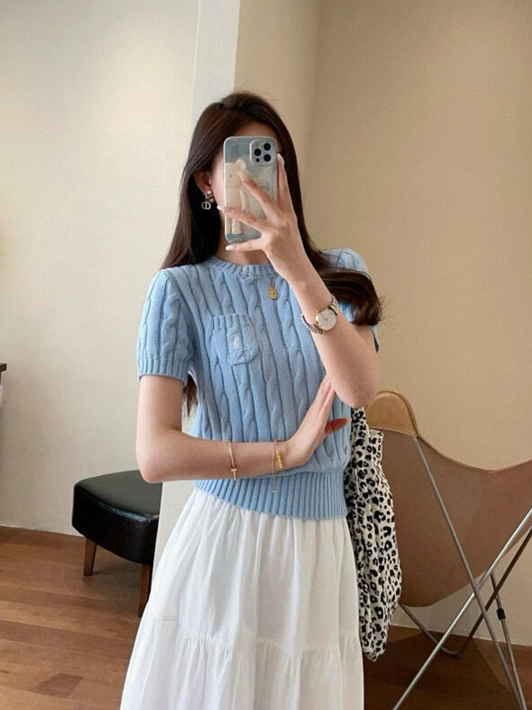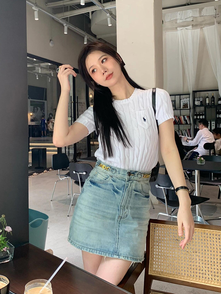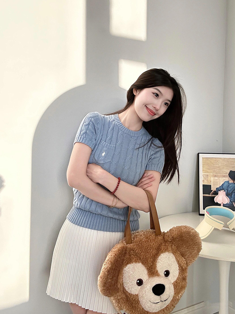 RL 라프 니트 반팔 여름 작은 포켓 포니 자수 트위스트 슬리밍 니트 셔츠 반소매 티셔츠 탑