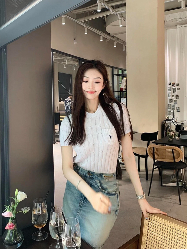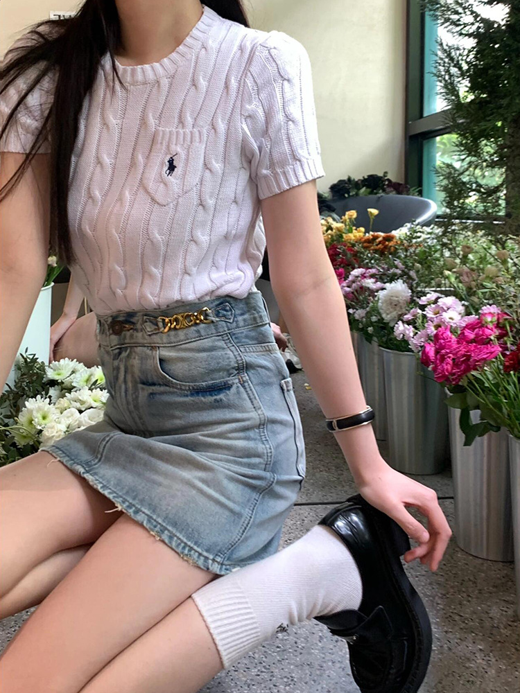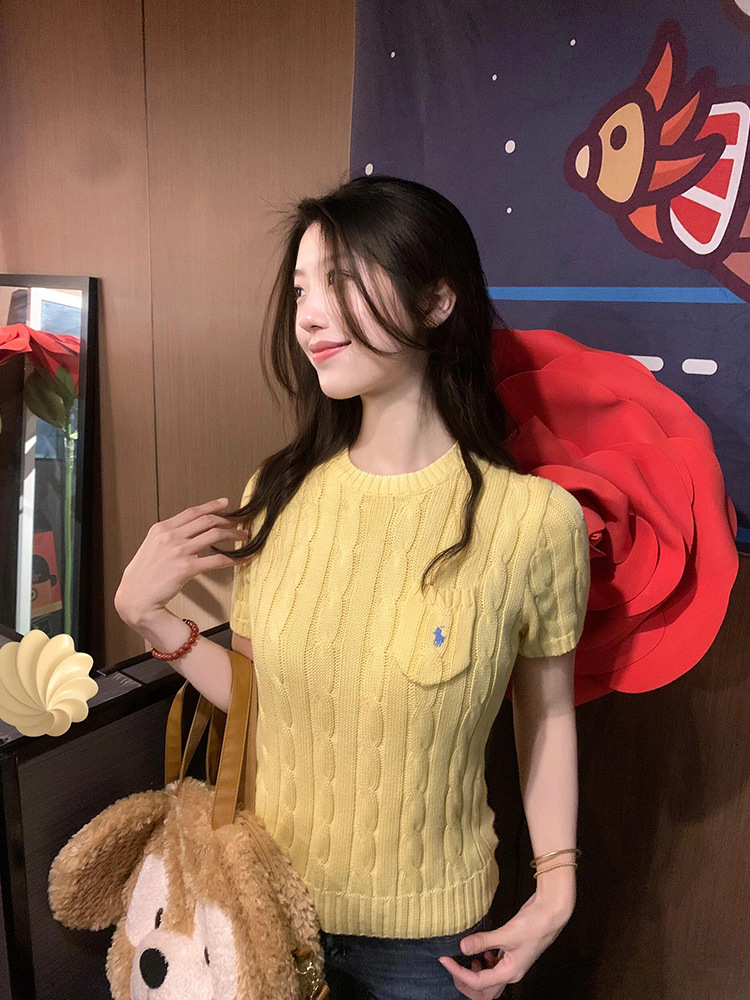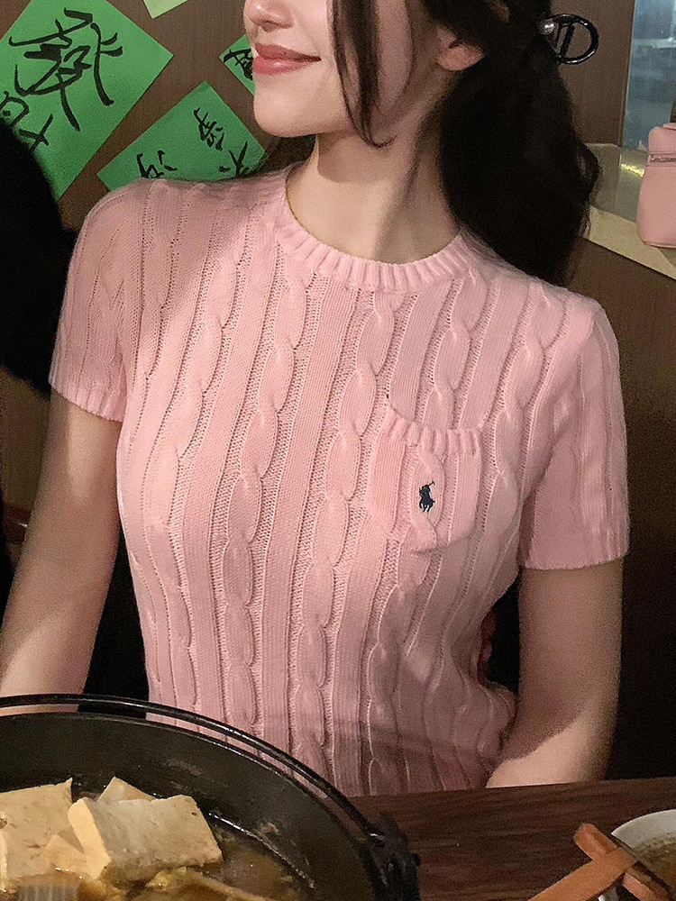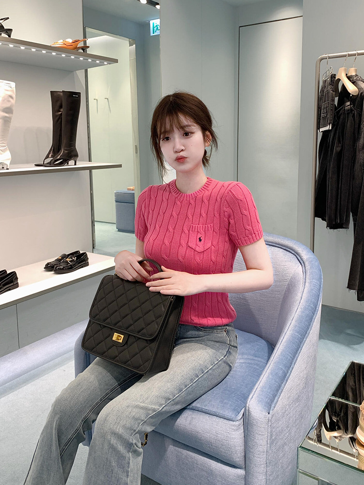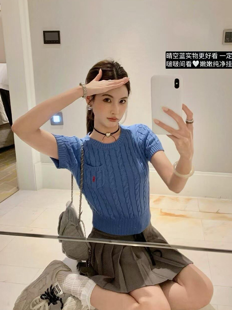 RL 라프 니트 반팔 여름 작은 포켓 포니 자수 트위스트 슬리밍 니트 셔츠 반소매 티셔츠 탑스토어 가기