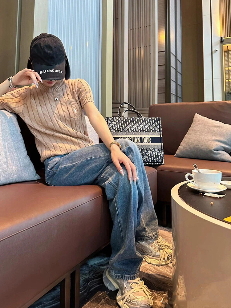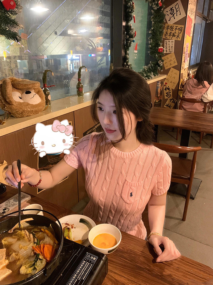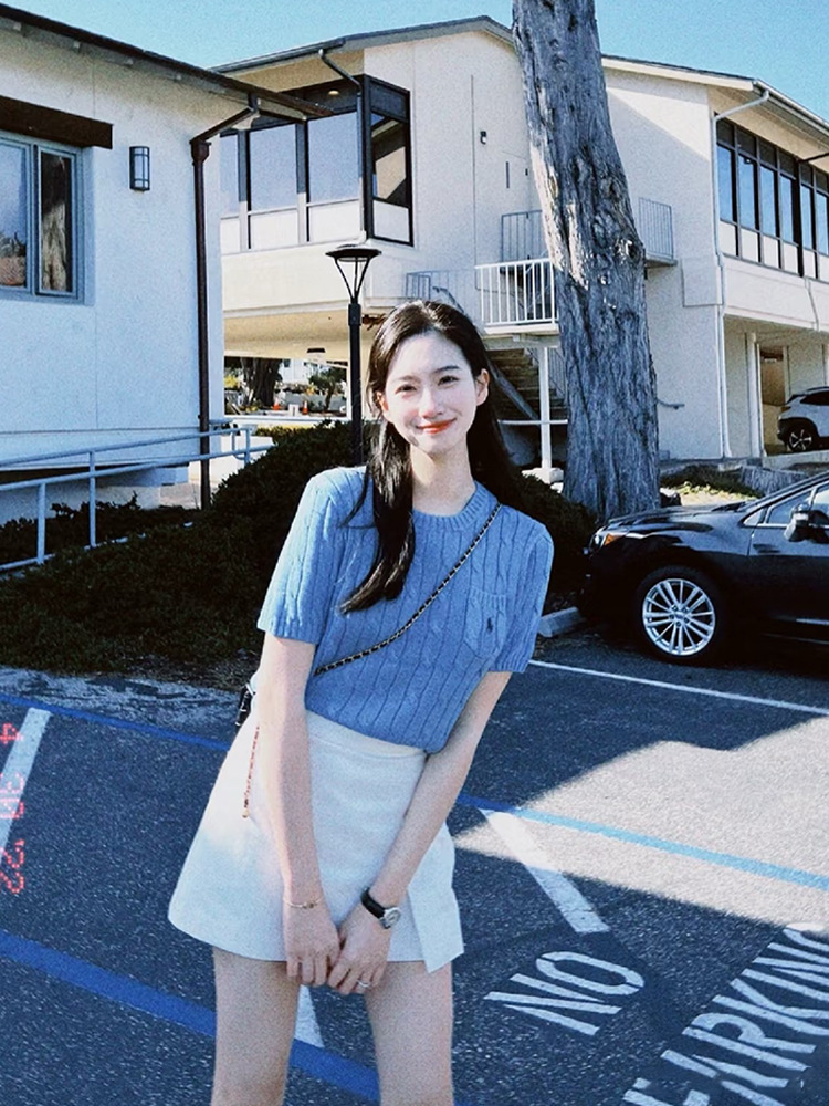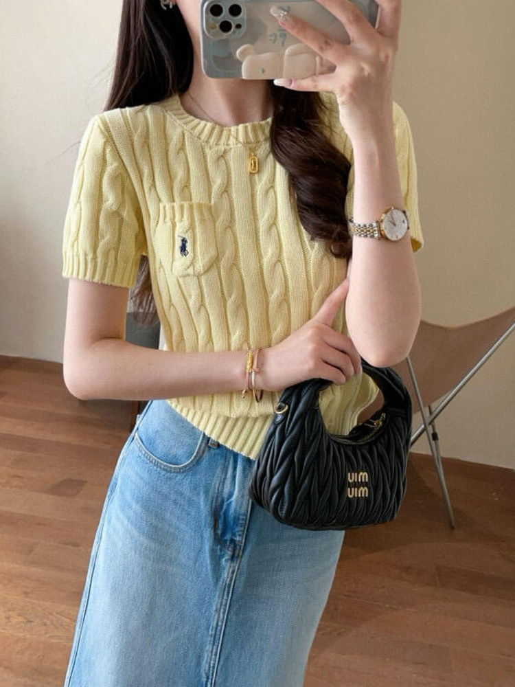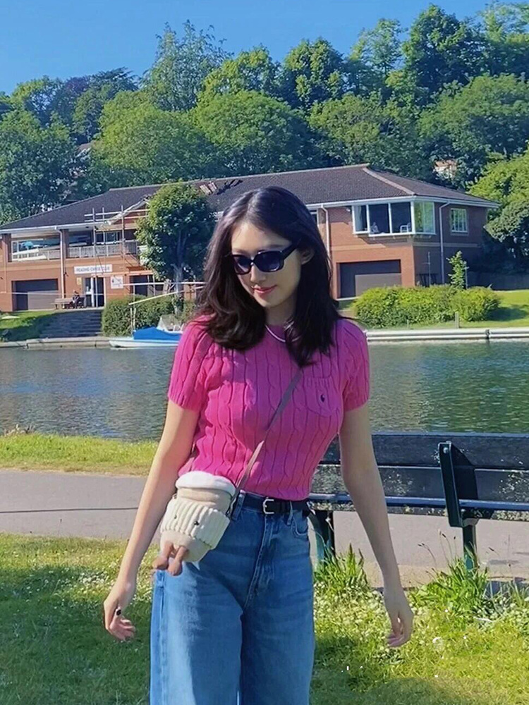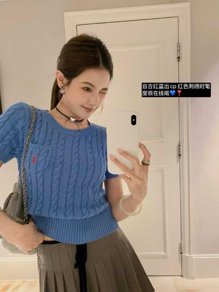RL 라프 니트 반팔 여름 작은 포켓 포니 자수 트위스트 슬리밍 니트 셔츠 반소매 티셔츠 탑스토어 가기