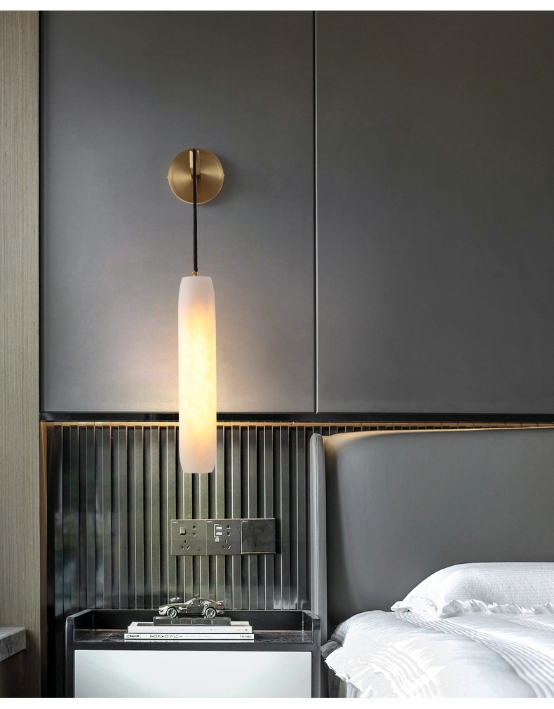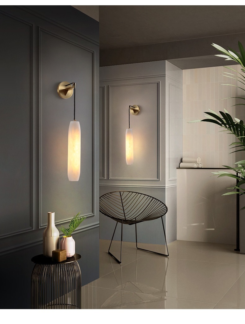 새로운 중국 스타일 대리석 전체 구리 대리석 벽 램프 침실 머리맡 북유럽 디자이너 호텔 B & B 거실 계단 램프스토어 가기