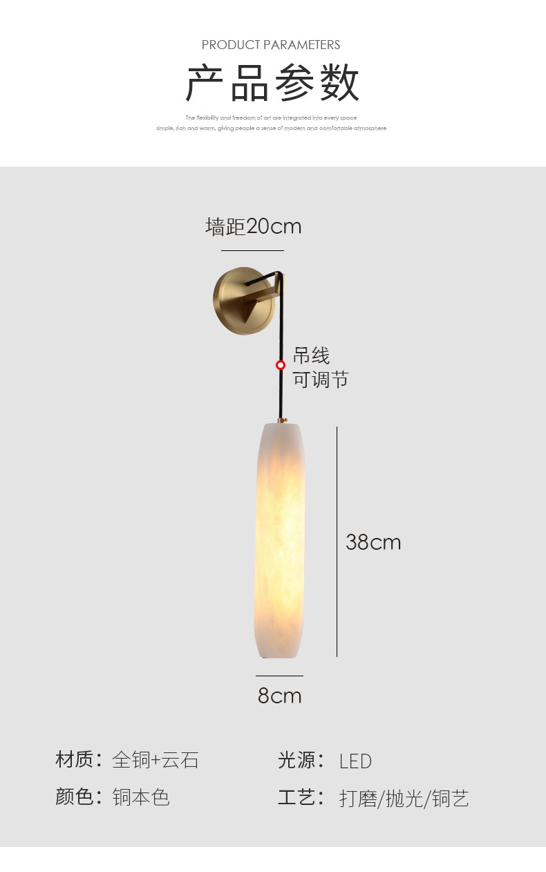 새로운 중국 스타일 대리석 전체 구리 대리석 벽 램프 침실 머리맡 북유럽 디자이너 호텔 B & B 거실 계단 램프