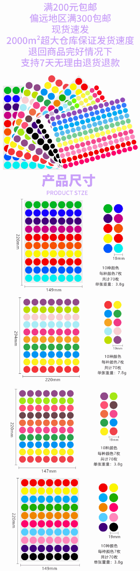 컬러 도트 라벨 19mm 라운드 빈 스티커 분류 마크 라벨 컬러 로고 스티커