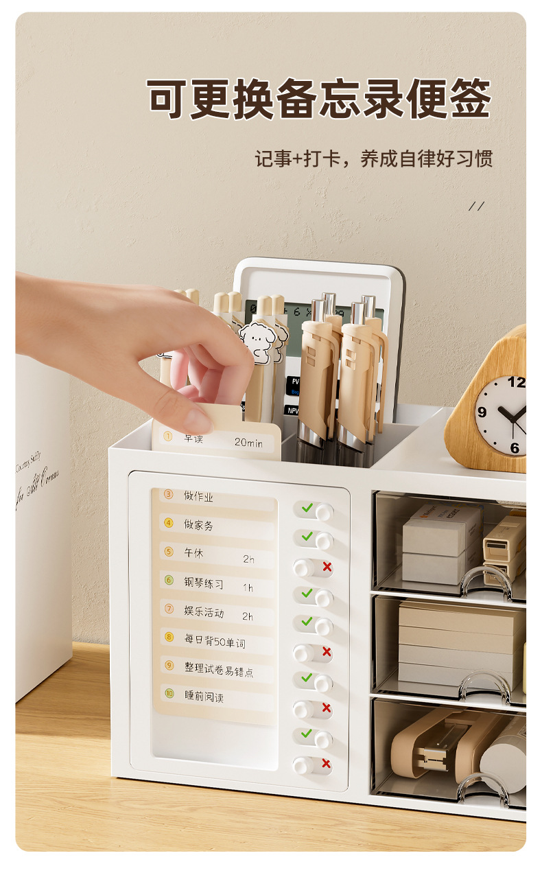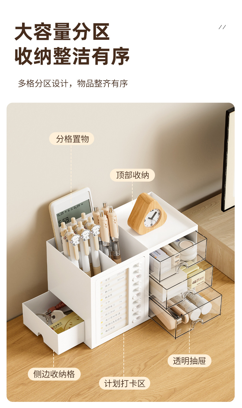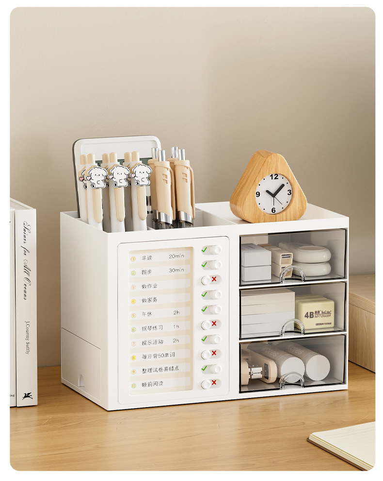 학생 시간 출석 데스크탑 펜 홀더 보관함 서랍형 다기능 학생 책상 사무실 정리 보관함스토어 가기
