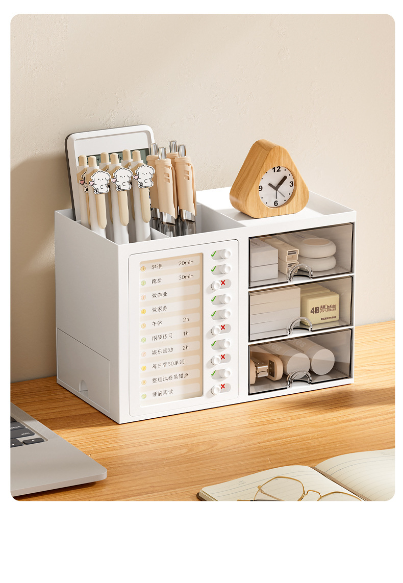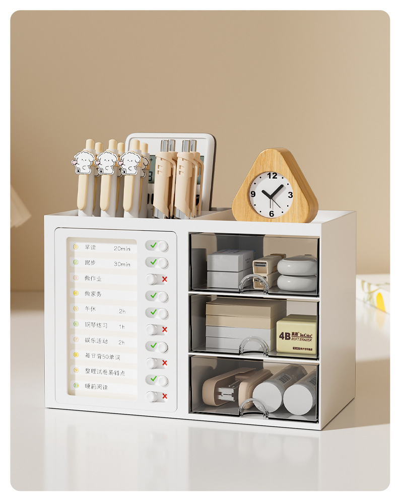 학생 시간 출석 데스크탑 펜 홀더 보관함 서랍형 다기능 학생 책상 사무실 정리 보관함