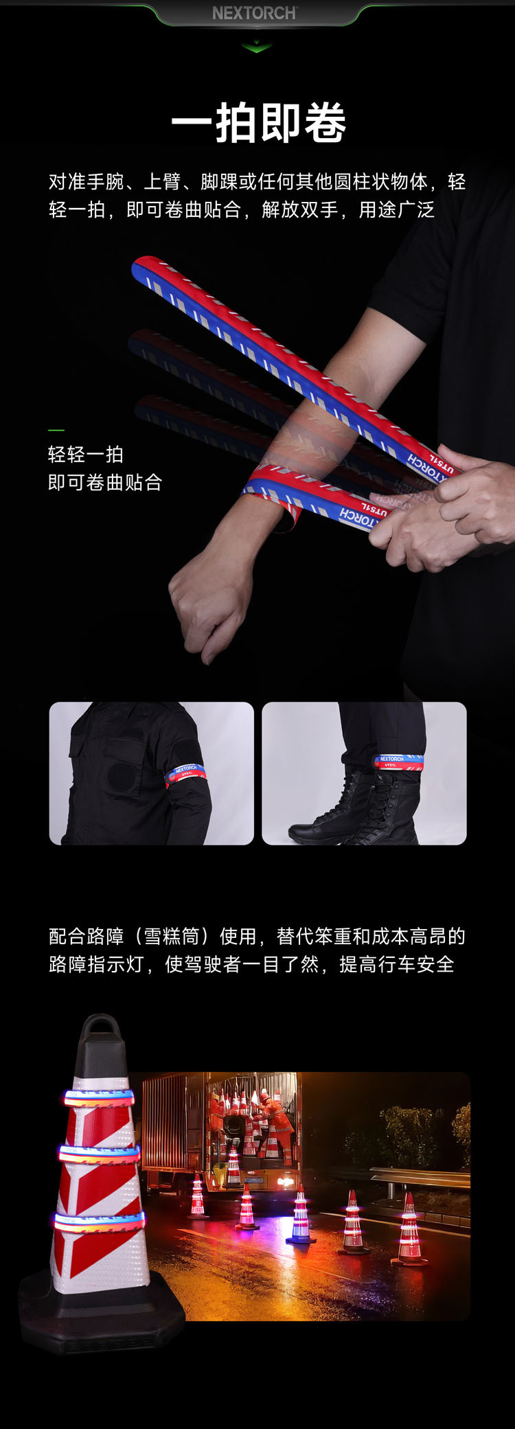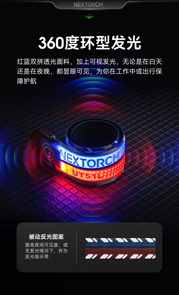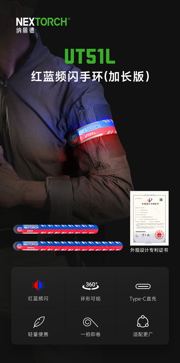 Naride UT51 빨간색과 파란색 플래시 의무 경고 플래시 팔찌 야외 야간 달리기 안전 신호등 휴대용 반사 테이프