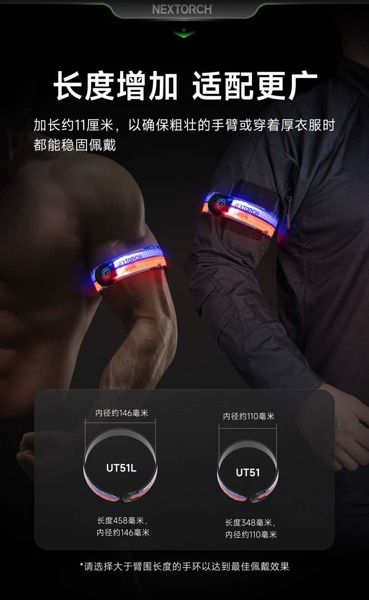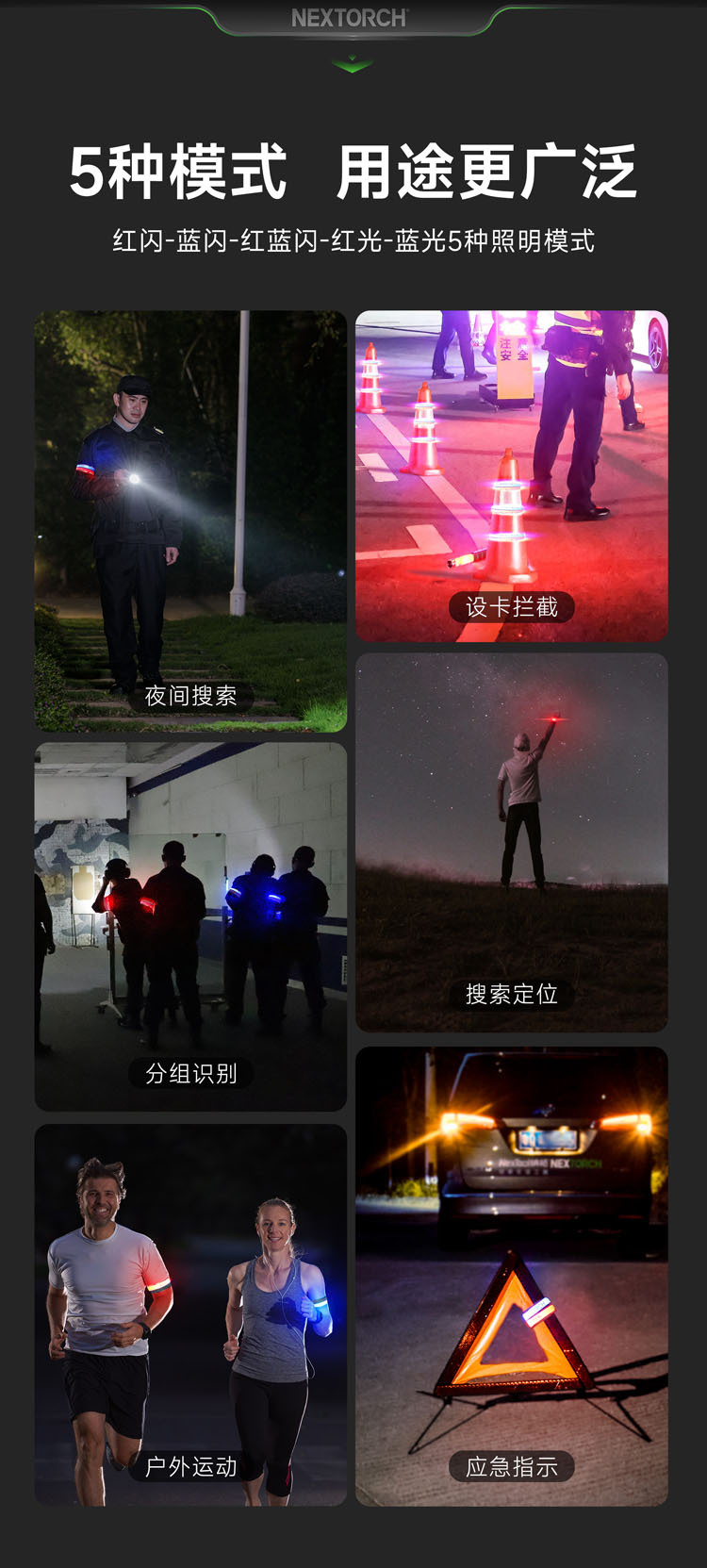 Naride UT51 빨간색과 파란색 플래시 의무 경고 플래시 팔찌 야외 야간 달리기 안전 신호등 휴대용 반사 테이프스토어 가기