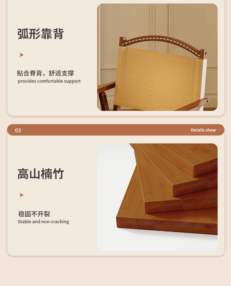 야외 편리한 접이식 의자 새로운 인기 스타일 홈 다이닝 의자 안뜰 편안한 의자 여름 캠핑 의자 등받이 대나무