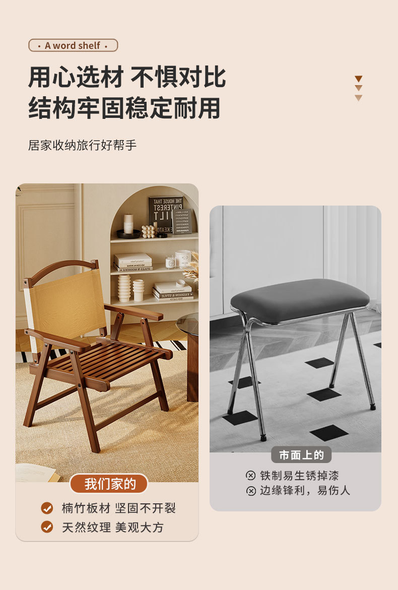 야외 편리한 접이식 의자 새로운 인기 스타일 홈 다이닝 의자 안뜰 편안한 의자 여름 캠핑 의자 등받이 대나무스토어 가기